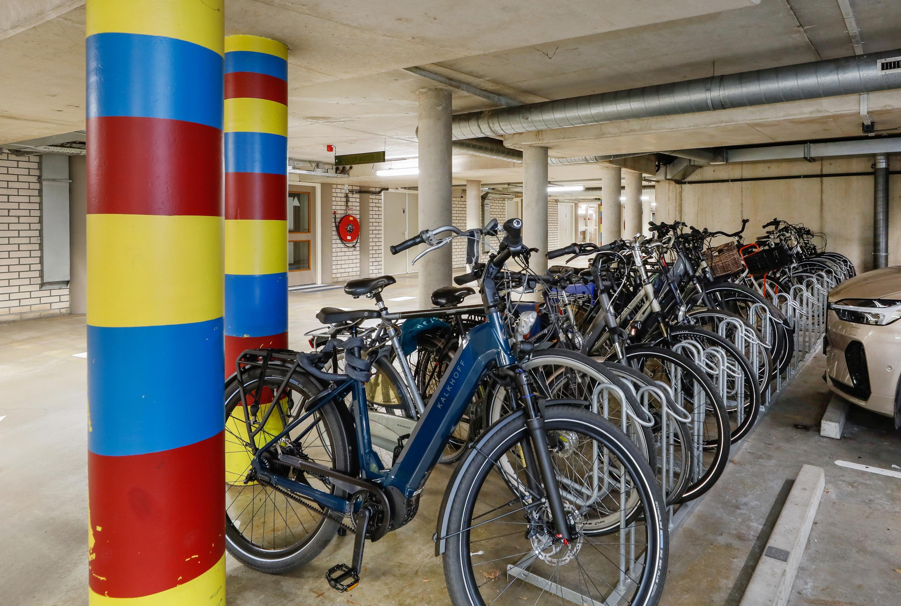 In the parking garage, you'll find your own marked parking space. Scraping windows is a thing of the past. Perhaps it's finally time for that convertible! It's possible to have a charging station for an electric car installed next to your parking space. The infrastructure is already in place. In the basement, next to the elevator, you'll find a storage room and the household waste disposal container. Sensor lighting keeps your hands free. The current owner stores his rechargeable electric bicycles here. Your bicycle may also be stored in the shared racks in the parking garage near the stairwell and elevator.