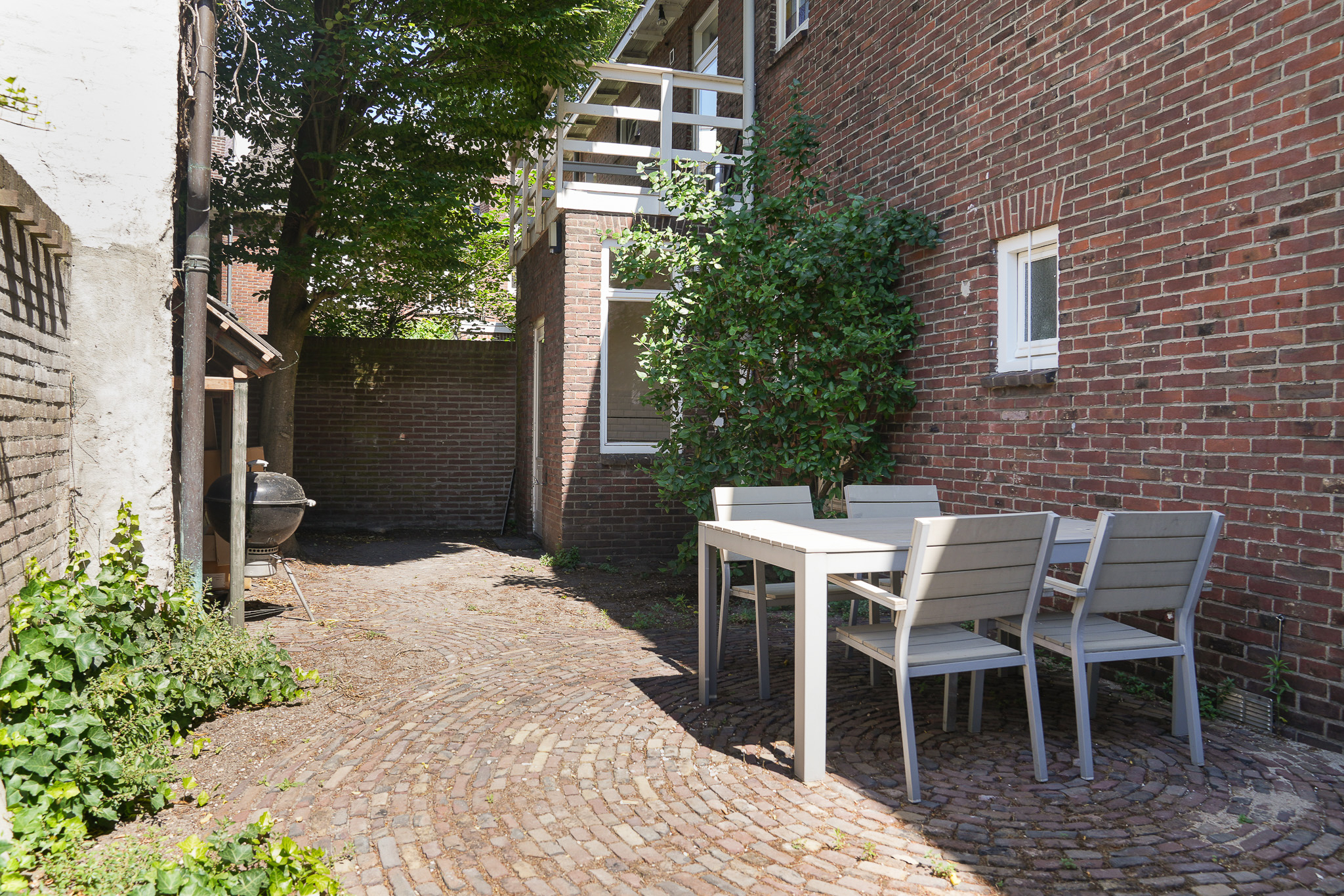 There is a back garden with afternoon and evening sun.