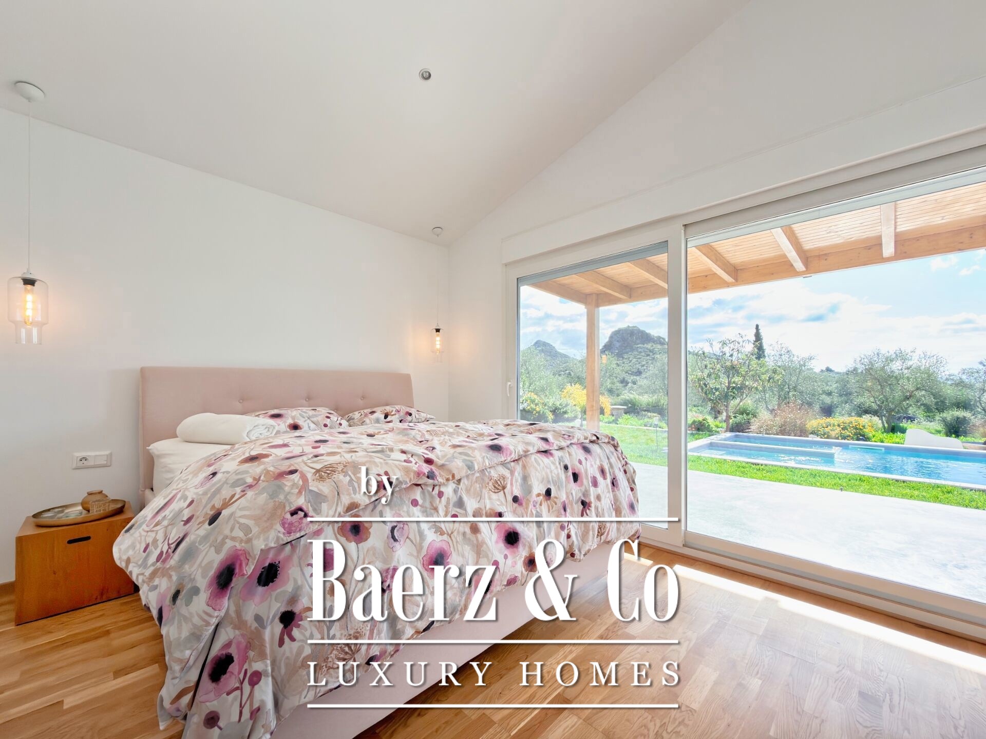 Detached house Agios Adrianos welcomes you a few kilometers from Nafplio, set quietly within a 6,900 m² garden. This 125 m² property, crafted by a renowned prefabrication builder in 2023, offers contemporary comfort just 10 kilometers from the coast. Spaces flow naturally from the open-plan living and dining area to a kitchen designed for ease, three bright bedrooms, and two refined bathrooms. An exterior staircase rises to a balcony giving panoramic mountain and nature views, while terraces connect seamlessly to a 4 by 13 meter pool, surrounded by uninterrupted vistas.