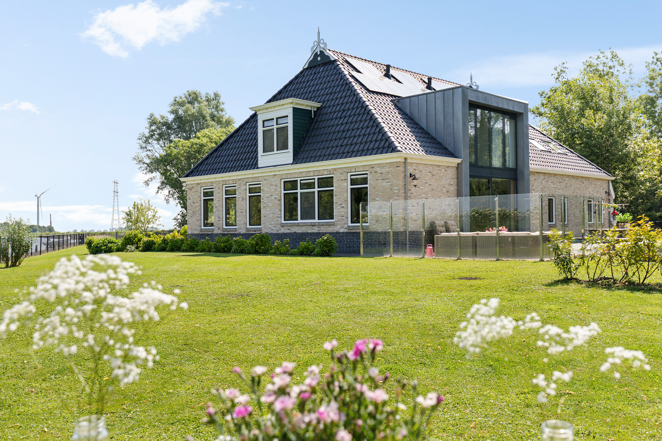 Designed in the style of a traditional Frisian farmstead but with a contemporary twist, this home blends rustic charm with modern efficiency. Its zinc-clad *risaliet* at the sun terrace hints at the refined architecture. Built to the highest energy standards, the property features full insulation, low-maintenance synthetic window frames, a geothermal heat pump with cooling module, heat recovery system (WTW), 38 solar panels and an A-level energy label. Inside, the ambience is open, light-filled and comfortable: a generous living area with a 107 m² kitchen-lounge, five bedrooms, four en-suite bathrooms, a spacious office, utility room and a spectacular fully insulated 75 m² barn with double stable doors.