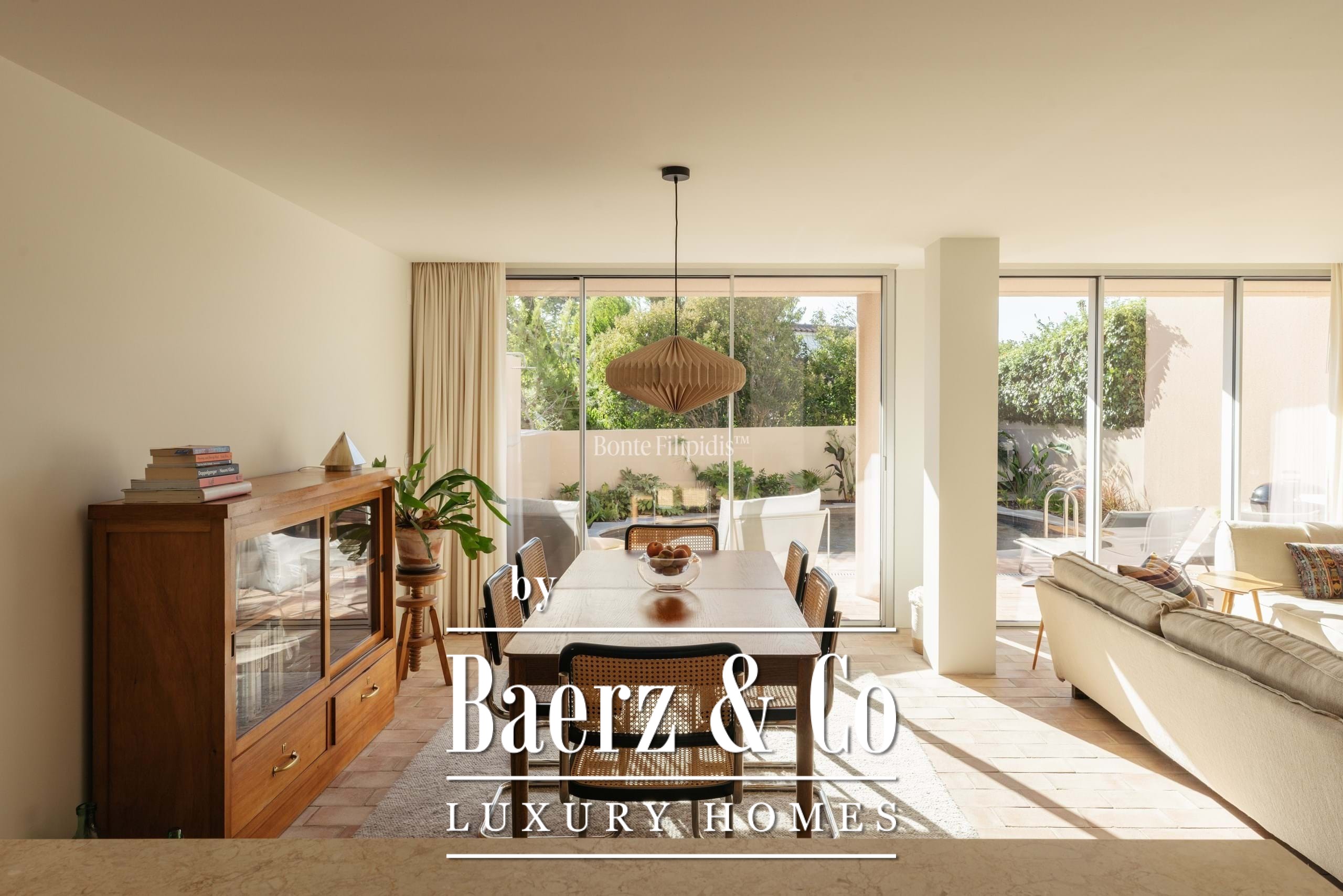 This contemporary villa Alcabideche embodies an understated union of luxury and environmental responsibility. Occupying a private 234 m² plot at the edge of the CascaisSintra National Park, the home is meticulously renovated with an emphasis on both design and sustainability. Inside, radiant floor heating, air conditioning in every room, and a cozy fireplace create a gentle sense of comfort throughout the changing seasons. The open, light-filled plan transitions smoothly between interior and outdoor living, with front and rear gardens that each receive optimal sun exposure.