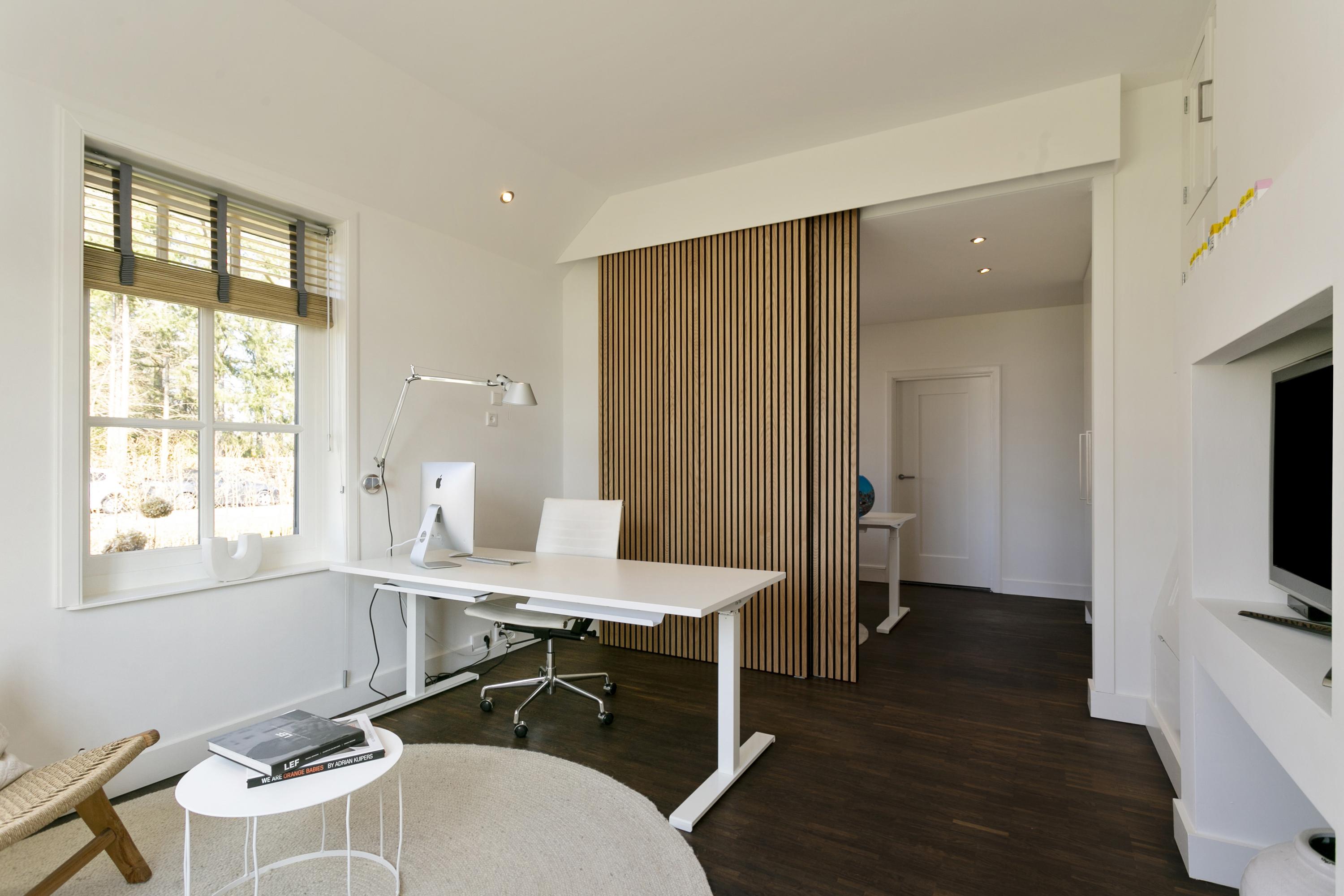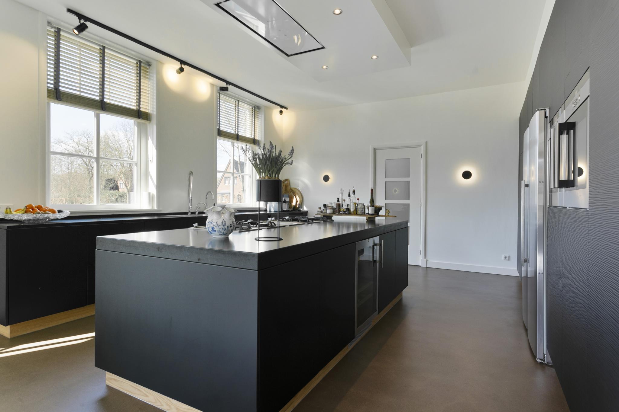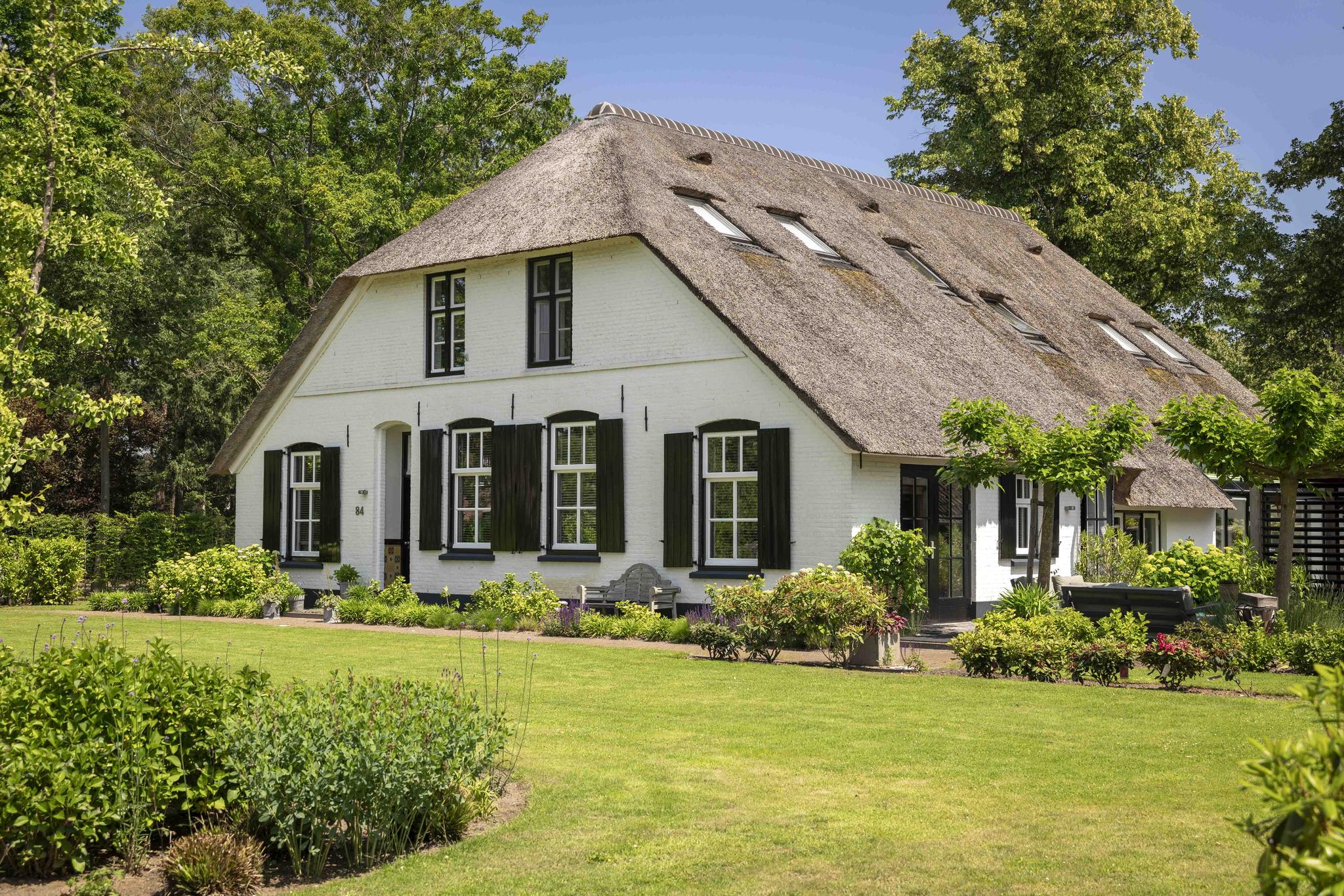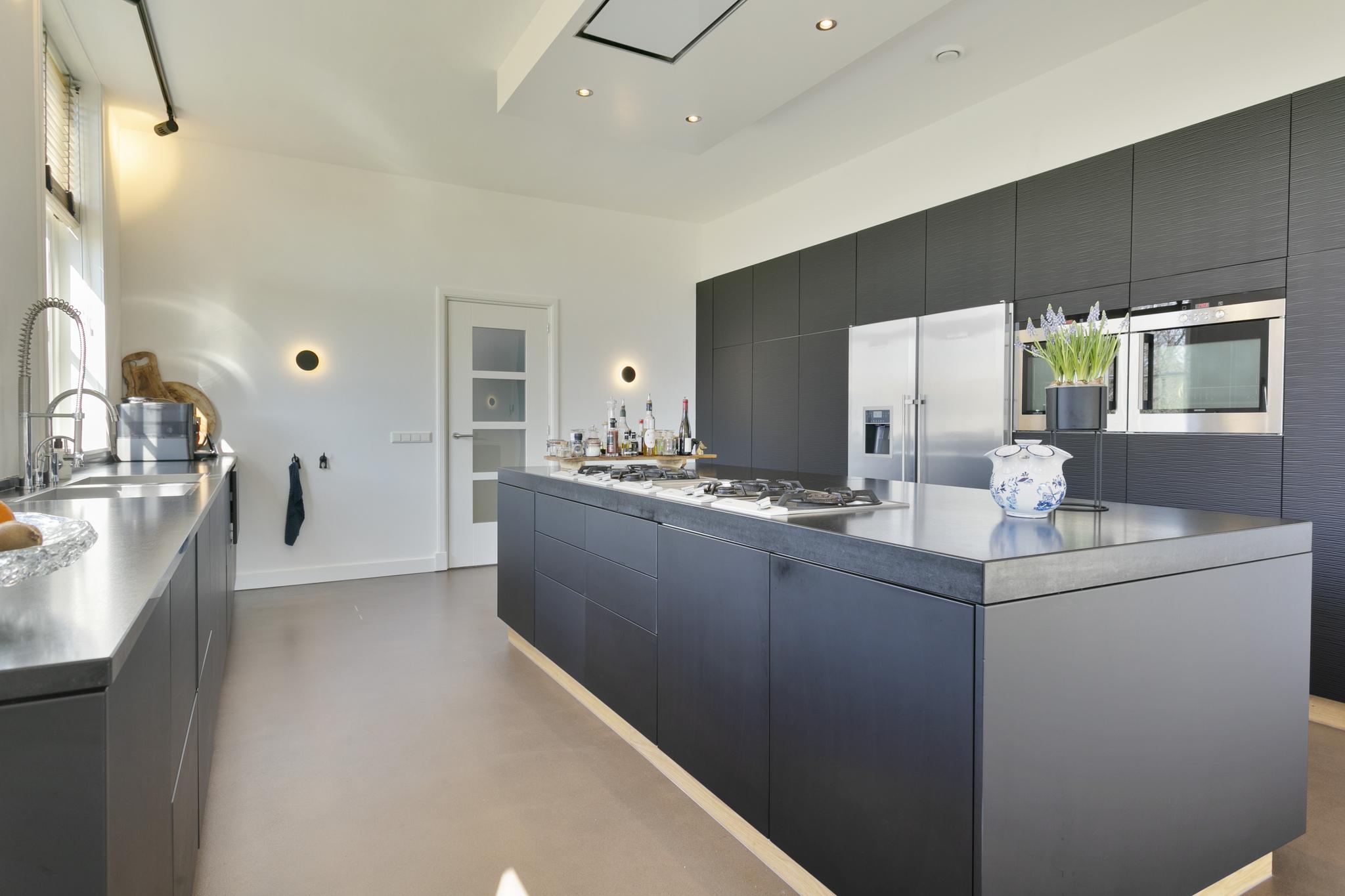 The white facades and the large thatched roof are the first things one sees when driving in from the Laren side. A classic beauty it is, number 84, located just about at the head of the dike. The gate opens automatically and under the tires the gravel path crunches as you drive up the generous driveway here. A place that captures the imagination, that inspires. This is reflected in the phenomenal interior, because inside the home surprises with contemporary and innovative design.