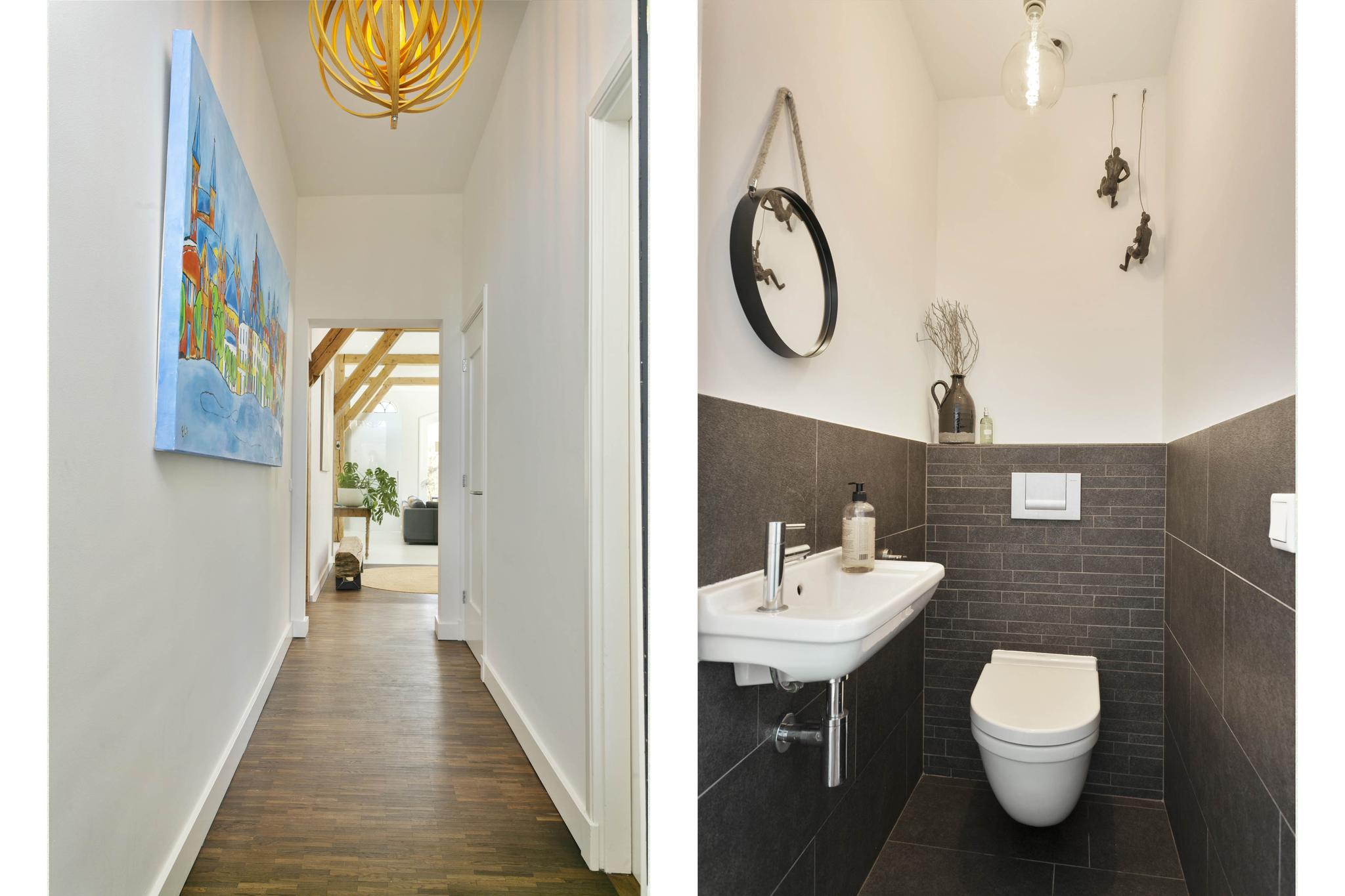 The farmhouse was transformed in 2009 and 2013 by the current residents into a delightful family home: state-of-the-art design in a picturesque setting. Everything is in balance and through the color palette, the distinct design and the particularly high-quality use of materials, a serene but simultaneously homely ambiance has been created. In terms of sustainability, the house also underwent a major upgrade, so that it now has an energy label C.