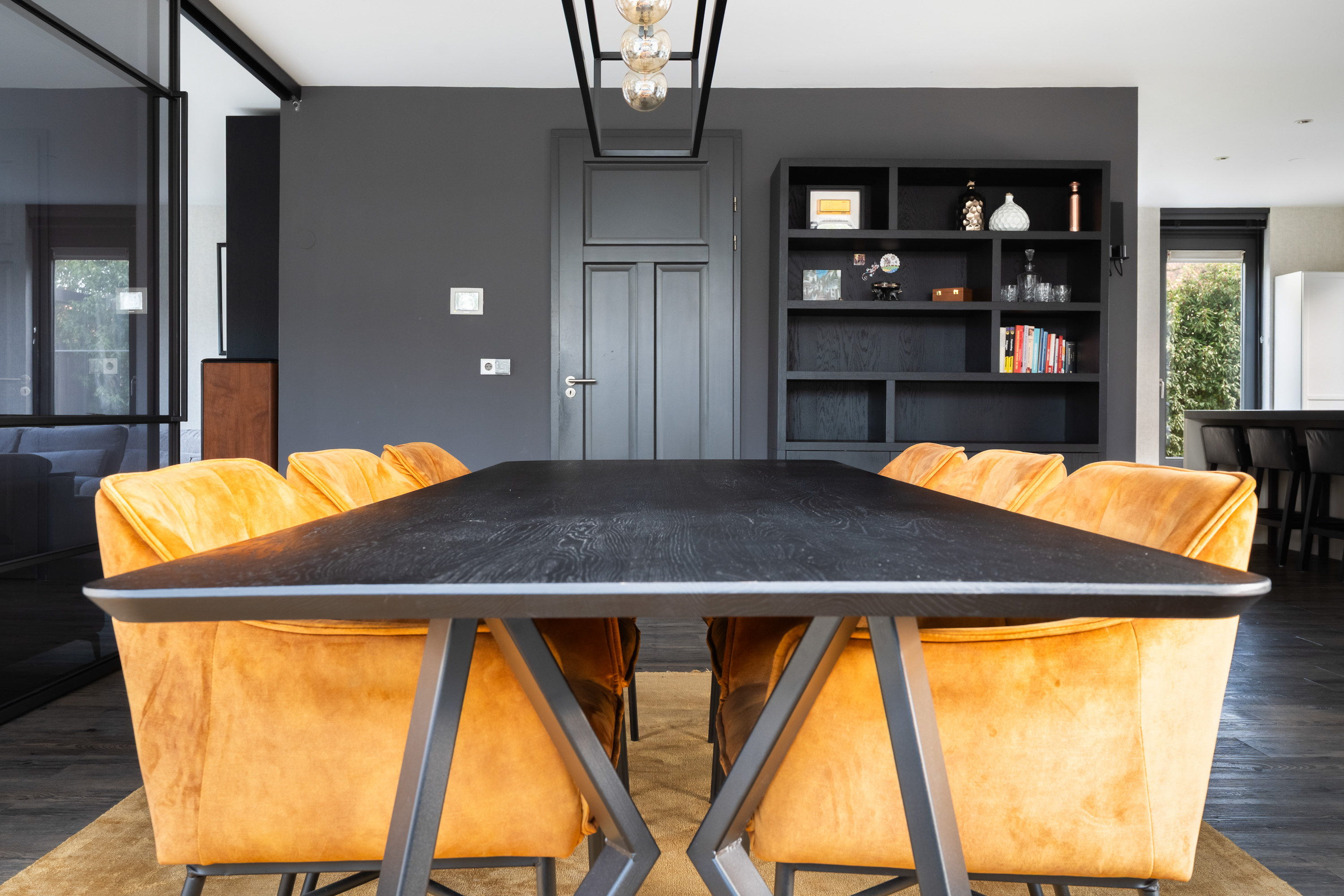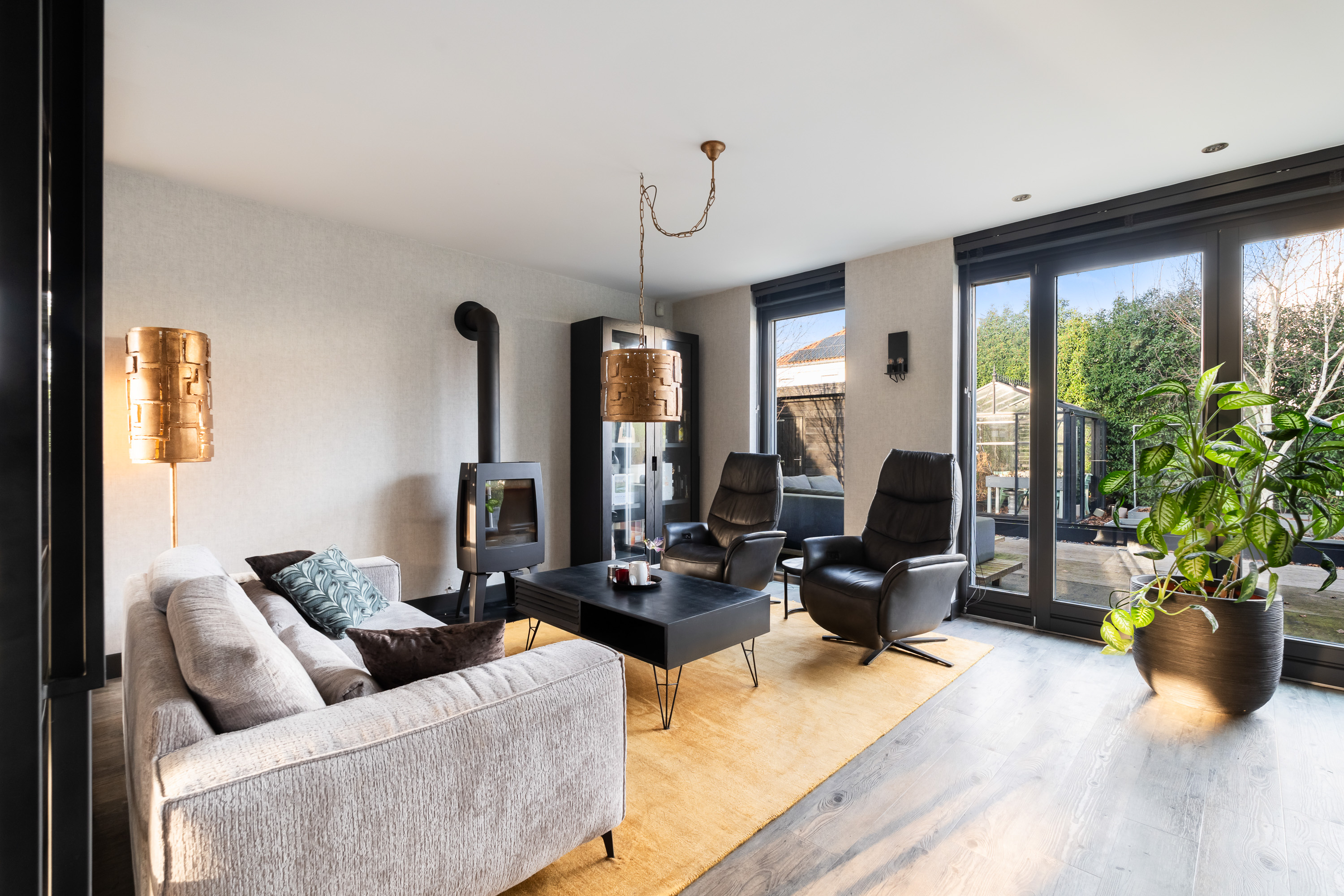 The generous driveway leads you to the entrance of this detached villa. Upon entering the hall, you immediately experience the sense of space, natural light and high-quality finish that characterise the property. The staircase to the first floor is also located here. From the hall, you have access to the various living areas on the ground floor.