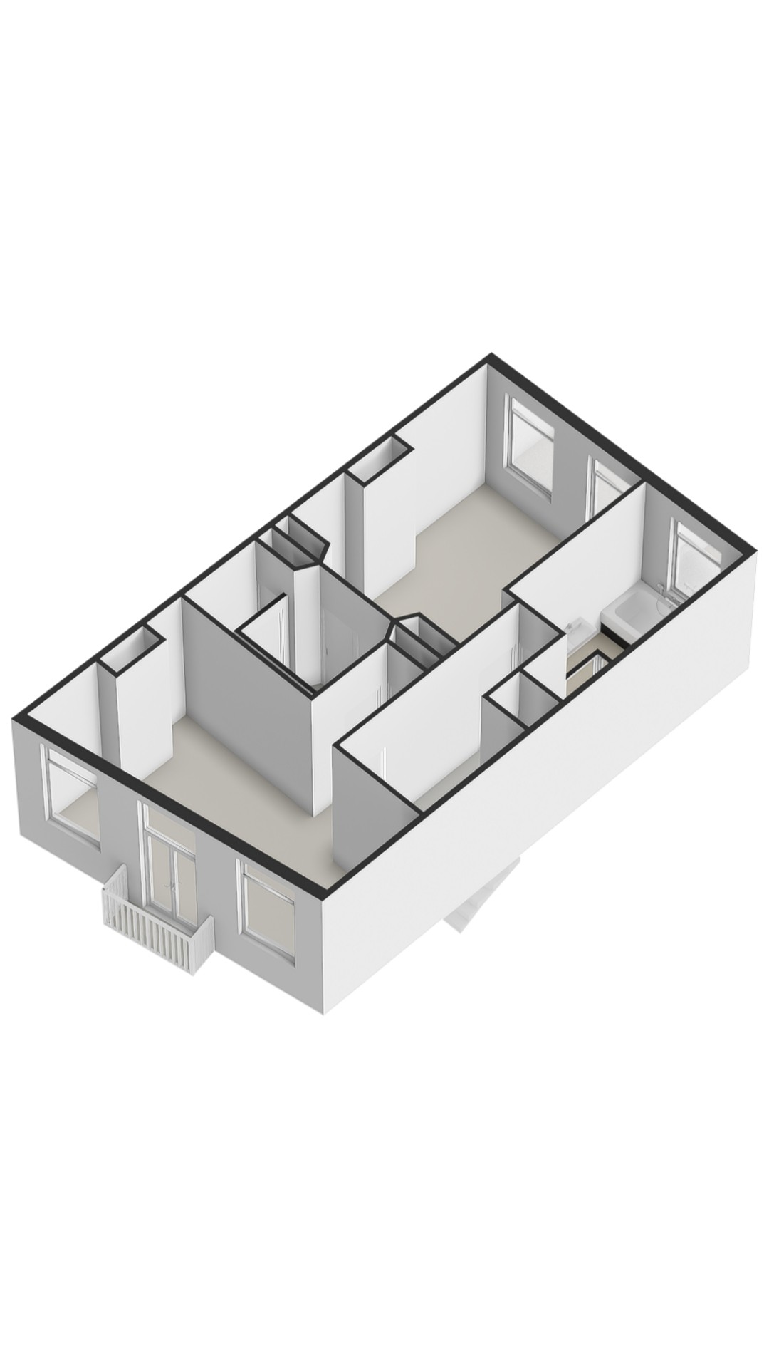 - Five bedrooms and two bathrooms;