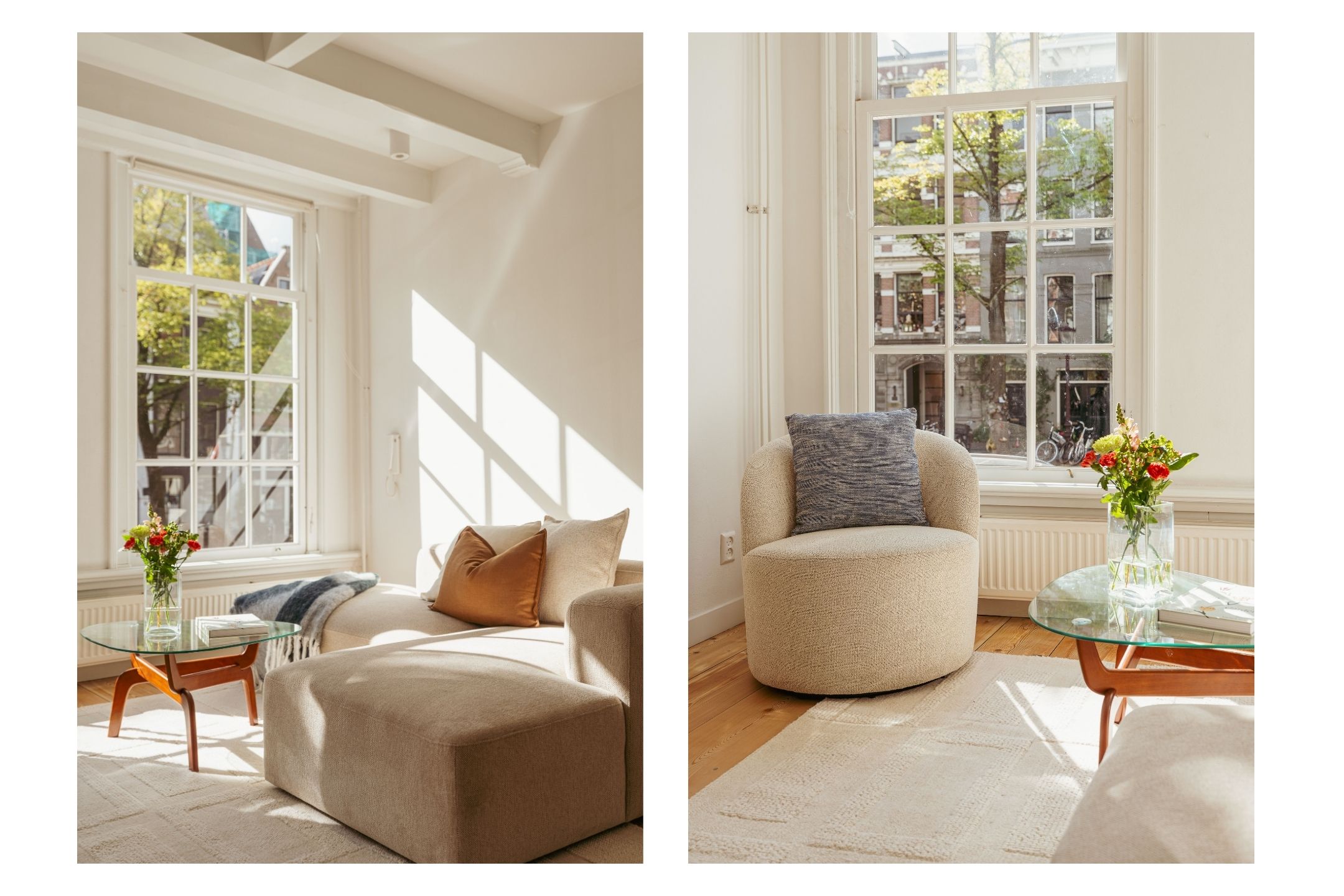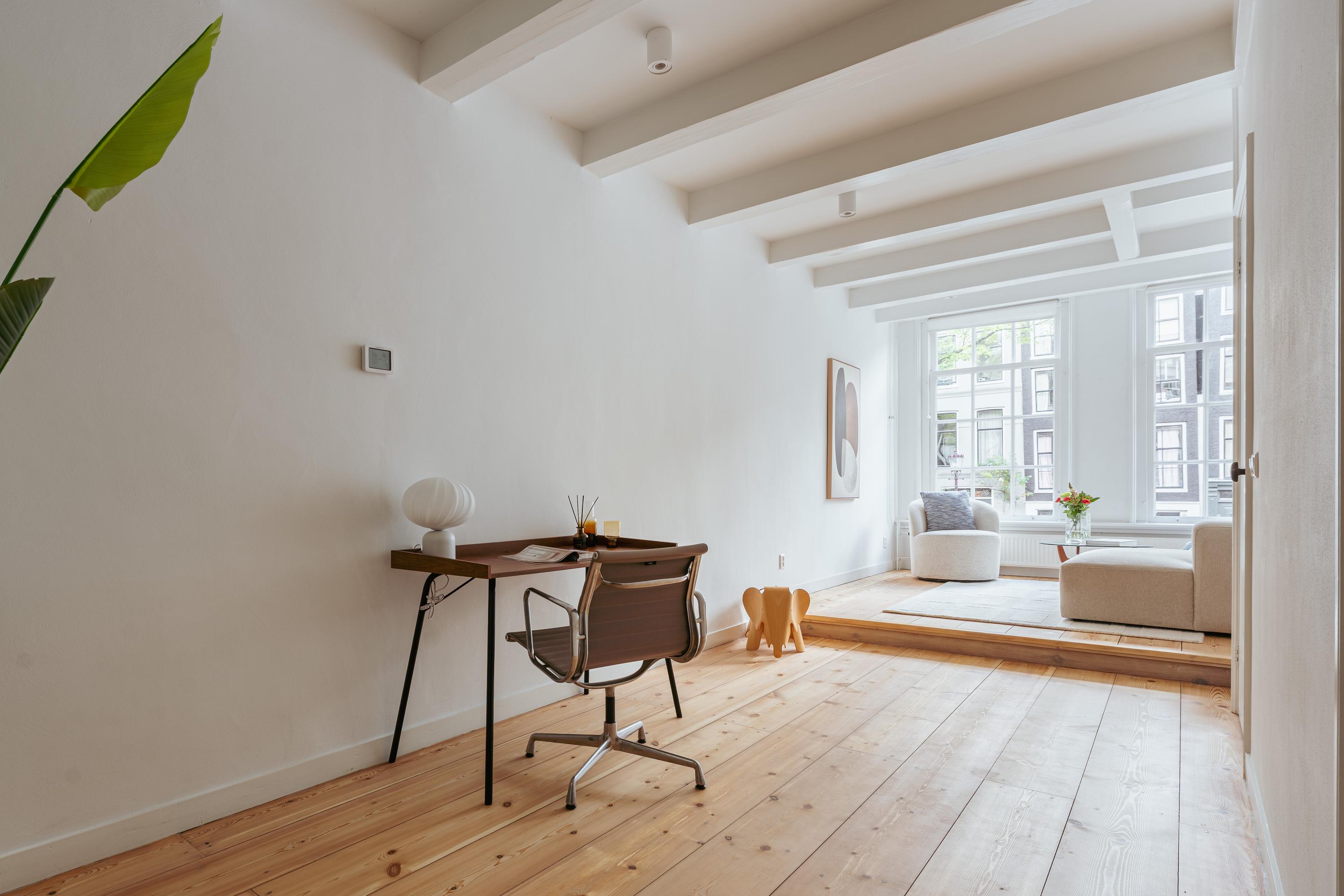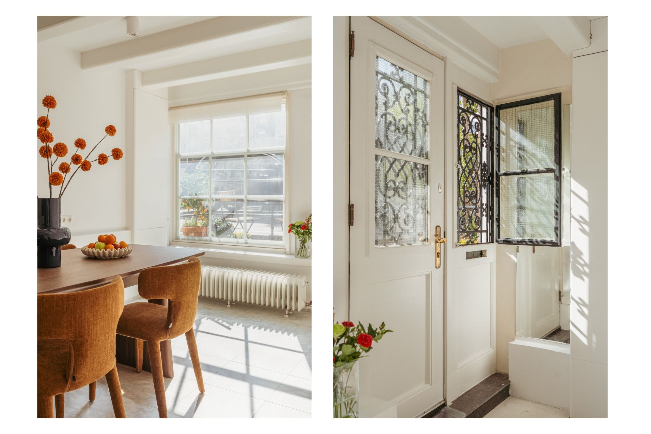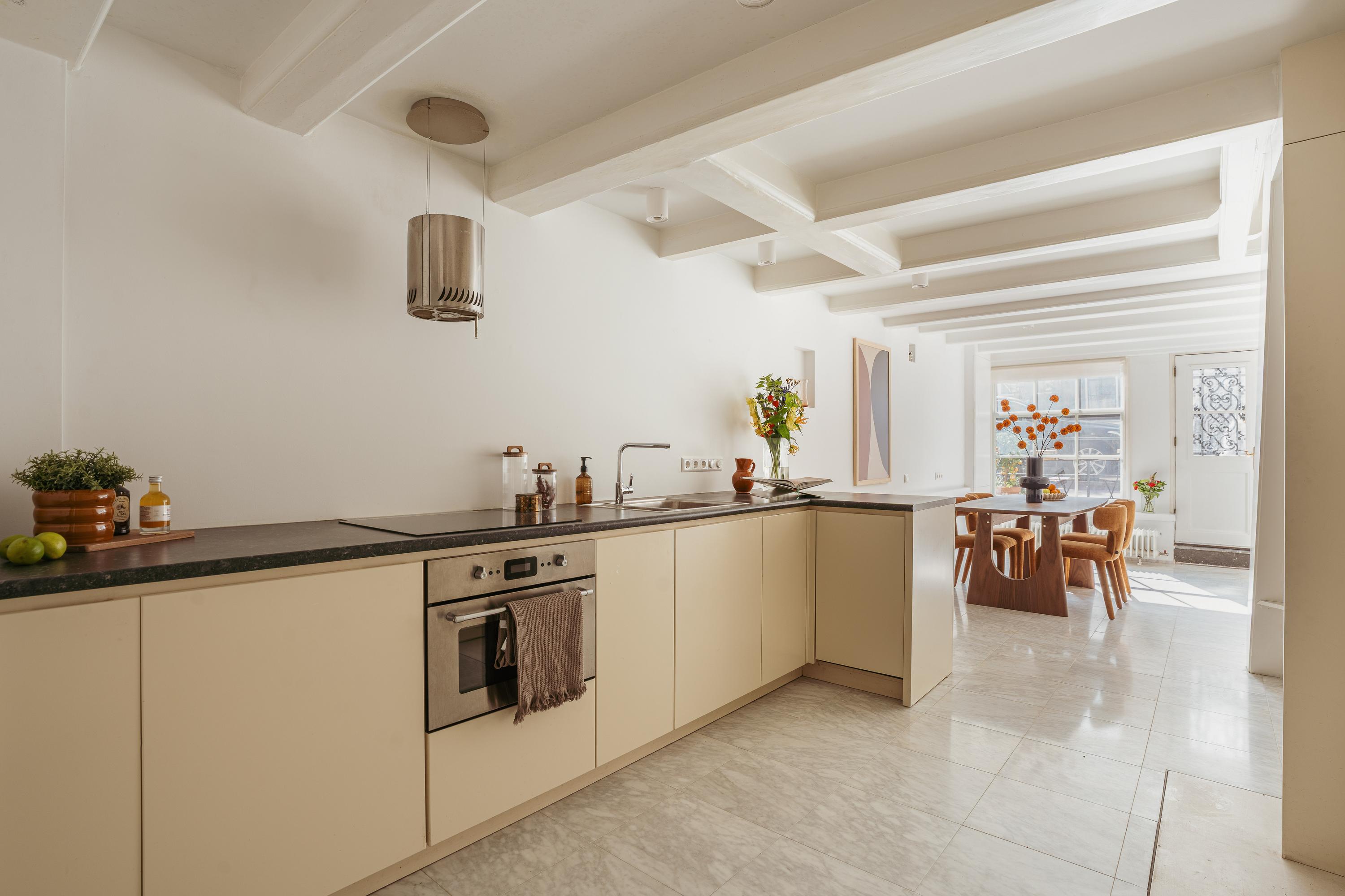 This canal house Amsterdam offers an understated sense of arrival. Located on the tranquil Bloemgracht in the heart of the Jordaan, this listed monument spans 118 m² across four residential levels and presents a fluid interplay of light, texture and water views—a rare combination in the city. The property introduces itself with a private entrance, leading into a kitchen-diner anchored by original features and ample cupboard space, with a welcoming seating area at the front capturing the vibrancy of the canal and sunlight throughout the day.