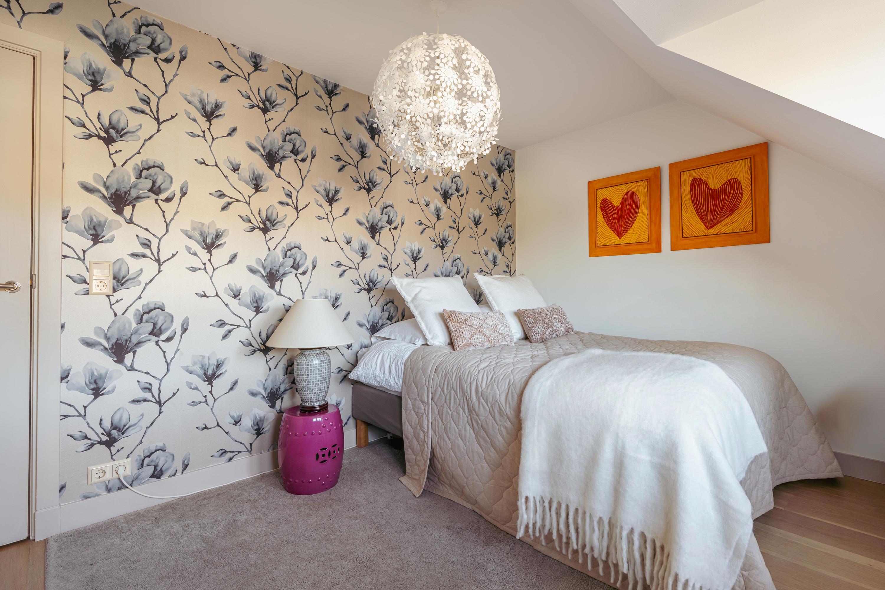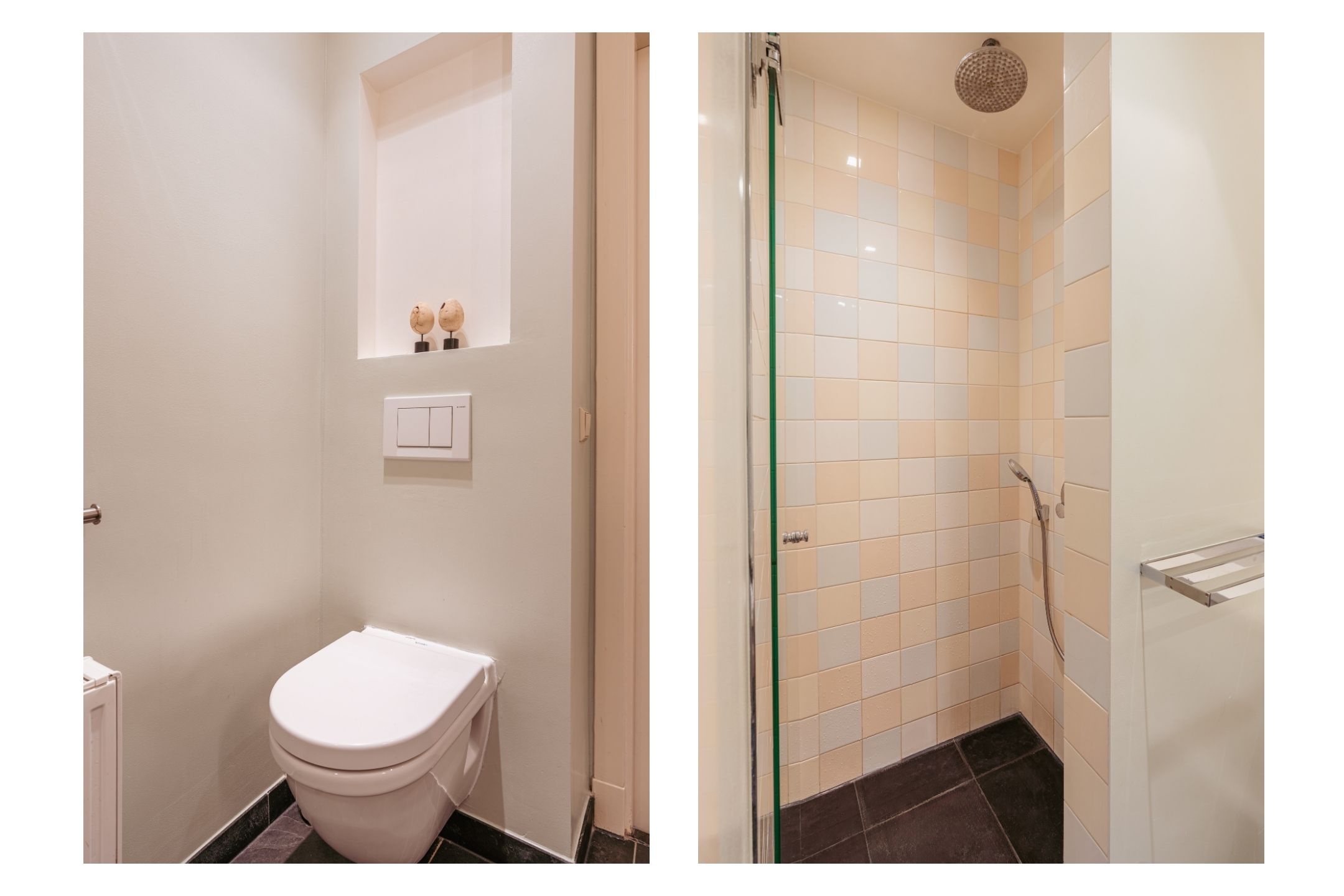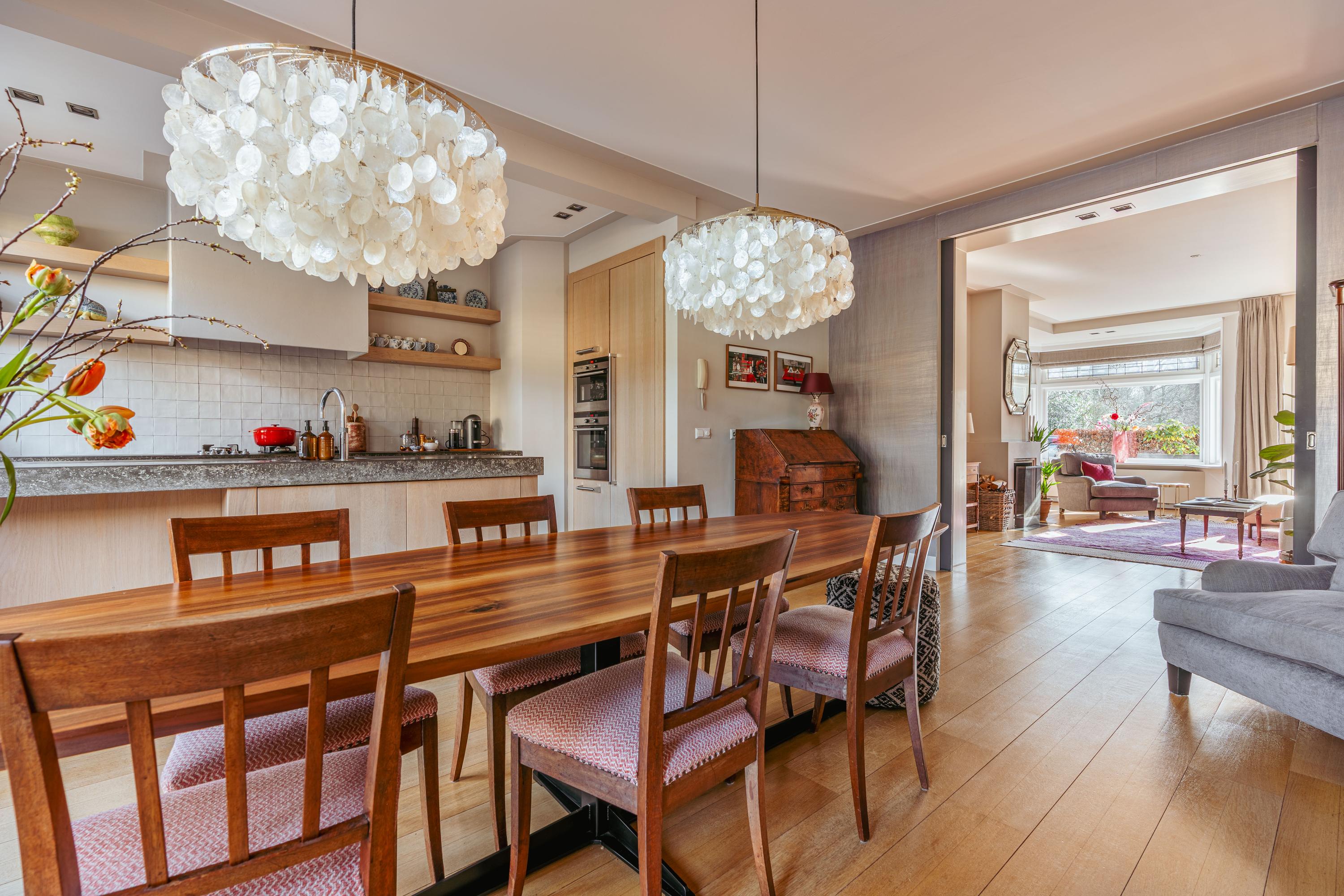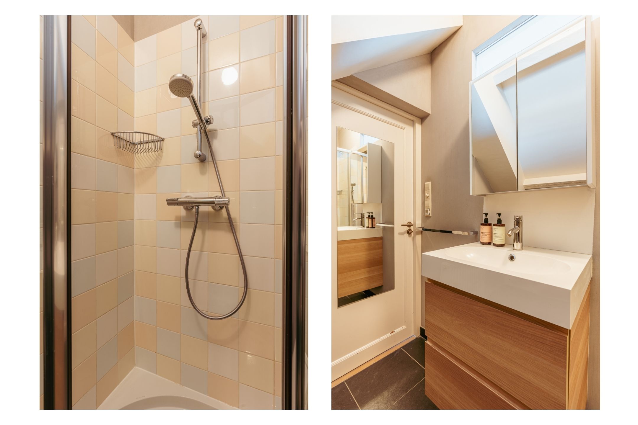 The upper levels host generous bedrooms, including a master suite with custom wardrobes and a secluded balcony. Multiple bathrooms ensure comfort and privacy. The top floor features ample natural light with impressive ceiling height, suitable for working or relaxing. High-quality finishes, dakraam for additional illumination, and insulation measures such as dakisolatie and double glazing contribute to its comfort.