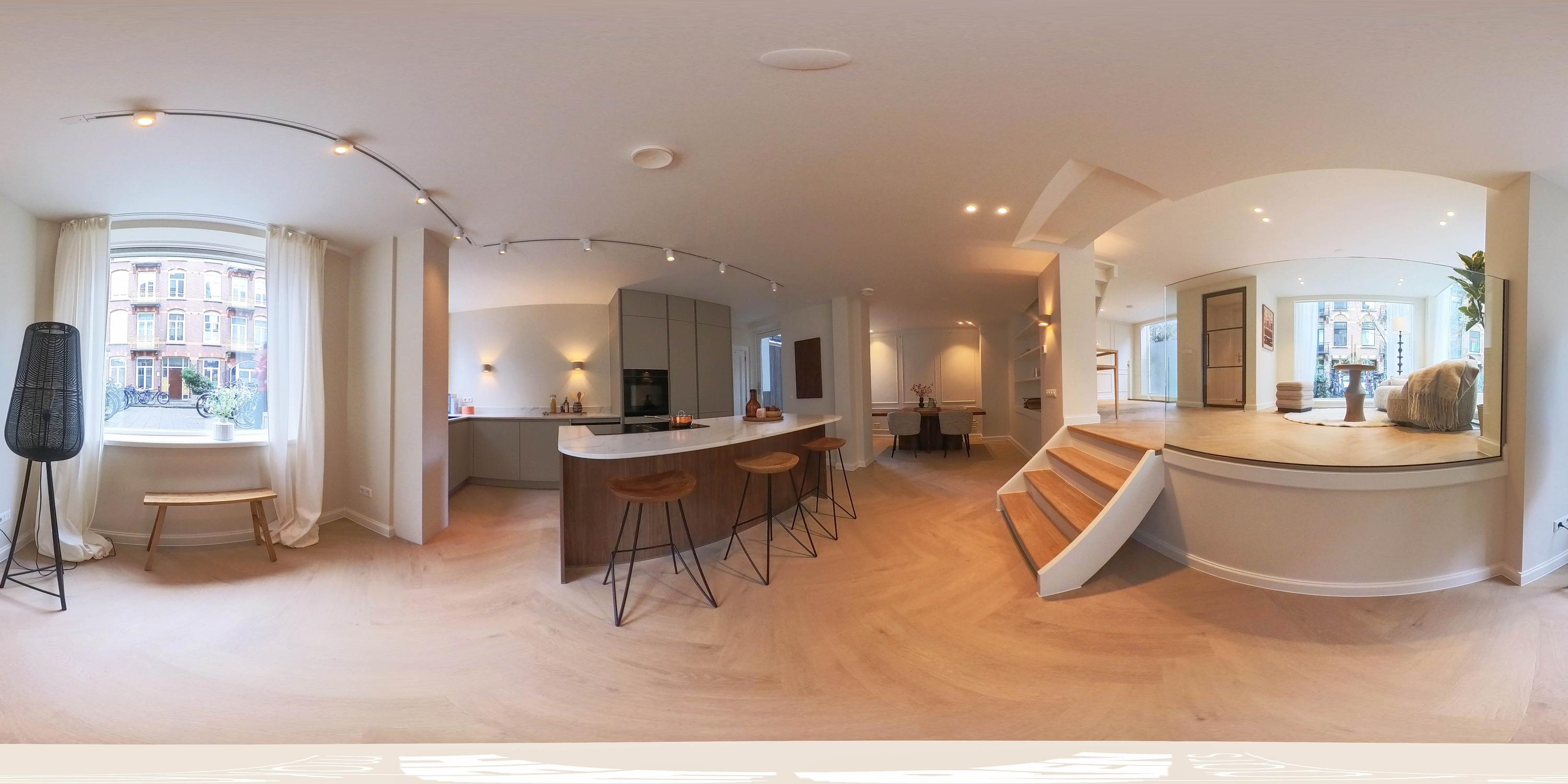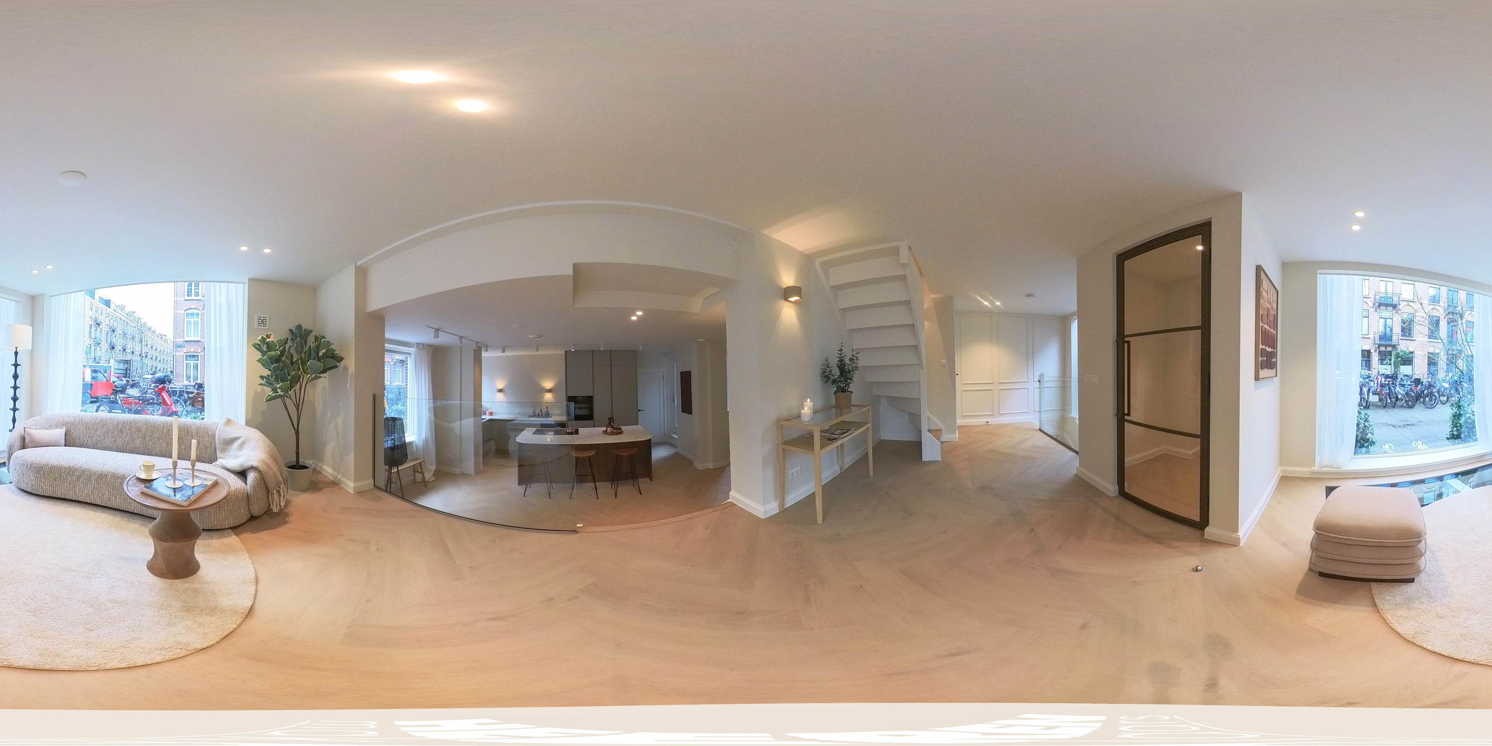 The house is centrally located in the popular Helmersbuurt neighborhood, between Nassaukade and Eerste Constantijn Huygenstraat. The neighborhood has everything you need: in addition to nice local shops and supermarkets, there are various delicatessens and specialty shops within walking distance. There is also no shortage of restaurants and cafes: cozy cafes, terraces, and coffee bars, including Café Helmers, Zouk, and De Ebeling, are just a stone's throw away from the house. The Foodhallen, the Japanner, and RIJKS are also among the many advantages of living in this neighborhood. The Museum Quarter, Leidseplein, Jordaan, and Vondelpark are a short distance from the house. Everything else that vibrant Amsterdam has to offer is within easy reach, and other parts of the city can be reached within a few minutes by bike. There is ample public transportation in the vicinity, and the property is also easily accessible by car.
