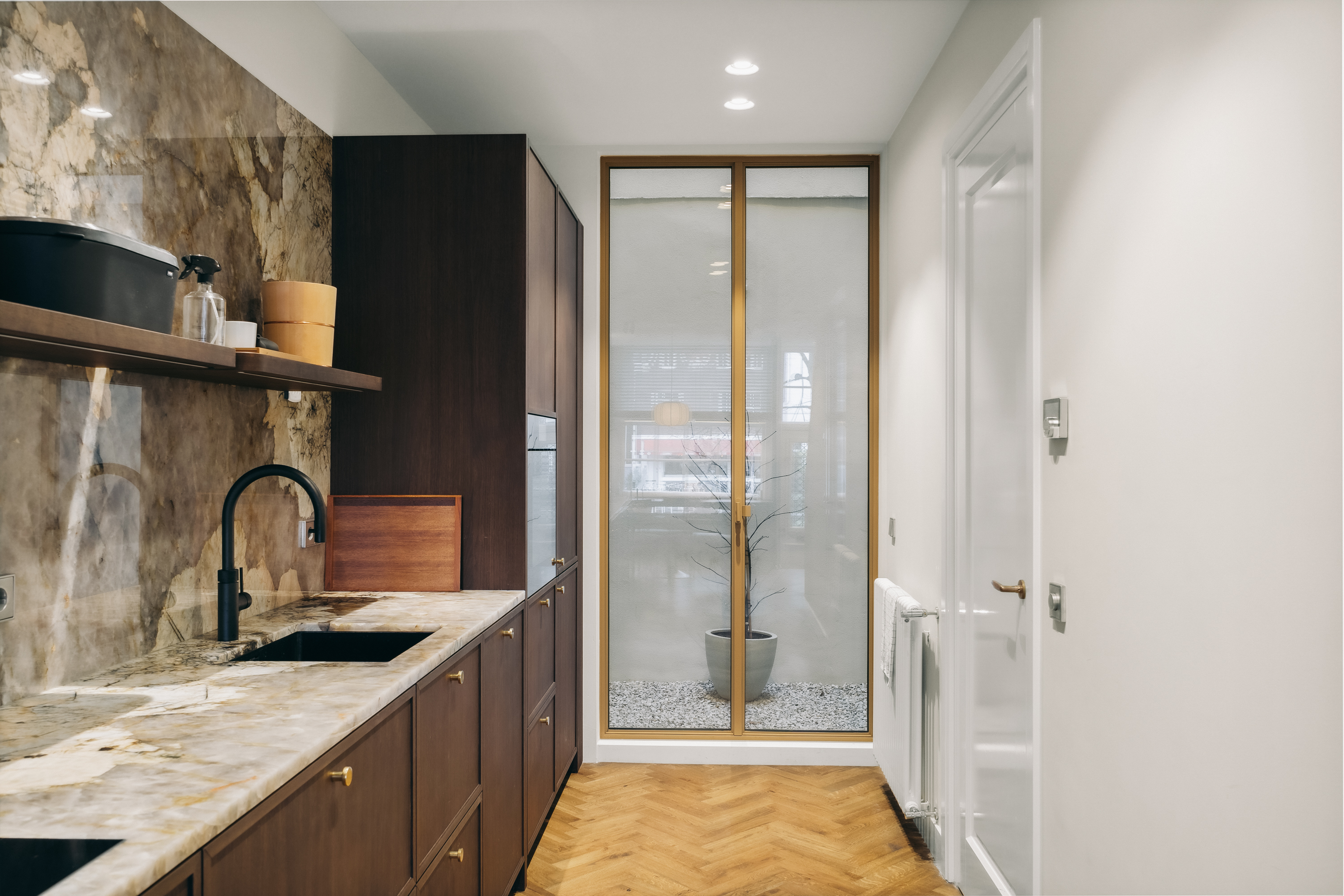 Canal House Amsterdam stands as a testament to timeless architecture, combining 17th-century heritage with a refined, architect-led renovation. The residence offers 134 m² of living space with a distinctive layout and a secluded mini-courtyard, all set along the illustrious Herengracht. Entering through the classic façade, one is welcomed into warmly lit interiors featuring high ceilings, oak herringbone parquet floors, and bespoke cabinetry. The living-dining kitchen is custom designed, seamlessly connecting to an intimate patio through double doors. A thoughtfully placed workspace enjoys views over the canal.