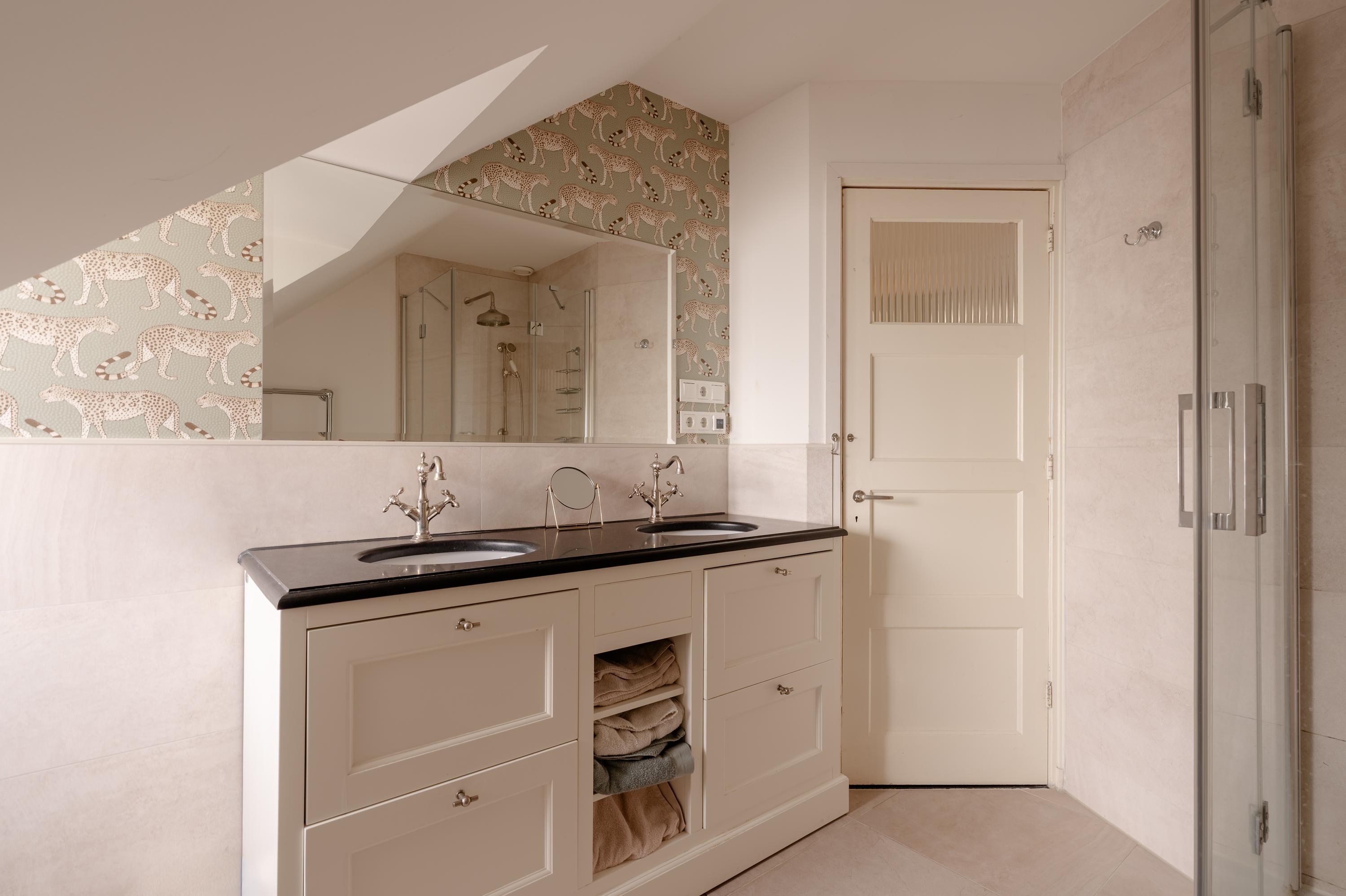 At the front of the house there is a third bedroom. The bathroom on this floor is equipped with a double washbasin with vanity, a spacious walk-in shower and a towel radiator.