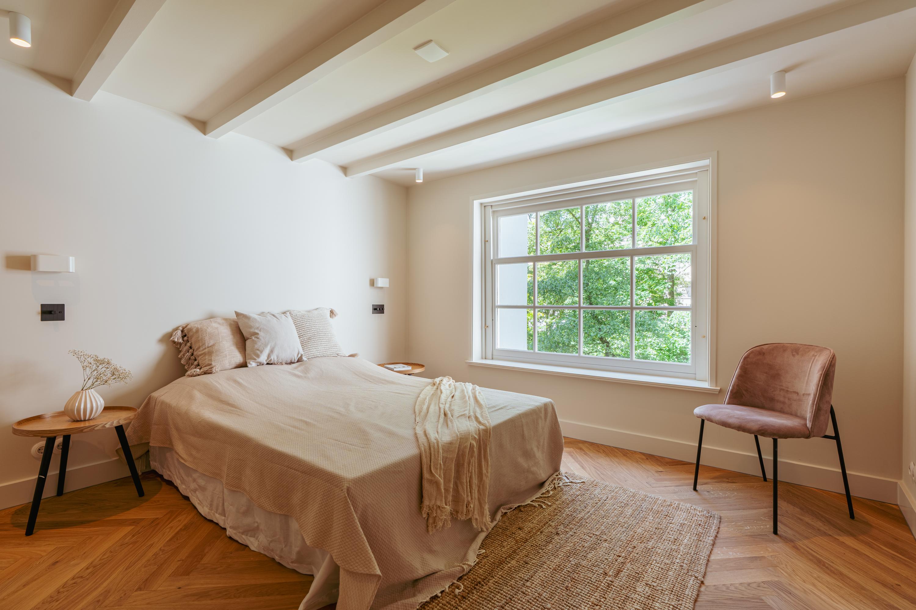 Apartment Keizersgracht Amsterdam invites you into a 104 m² residence, set within a distinguished listed building on one of the city’s storied canals. This apartment’s design reveals understated sophistication, from the oak herringbone flooring with underfloor heating to the three soaring windows framing timeless Keizersgracht views.