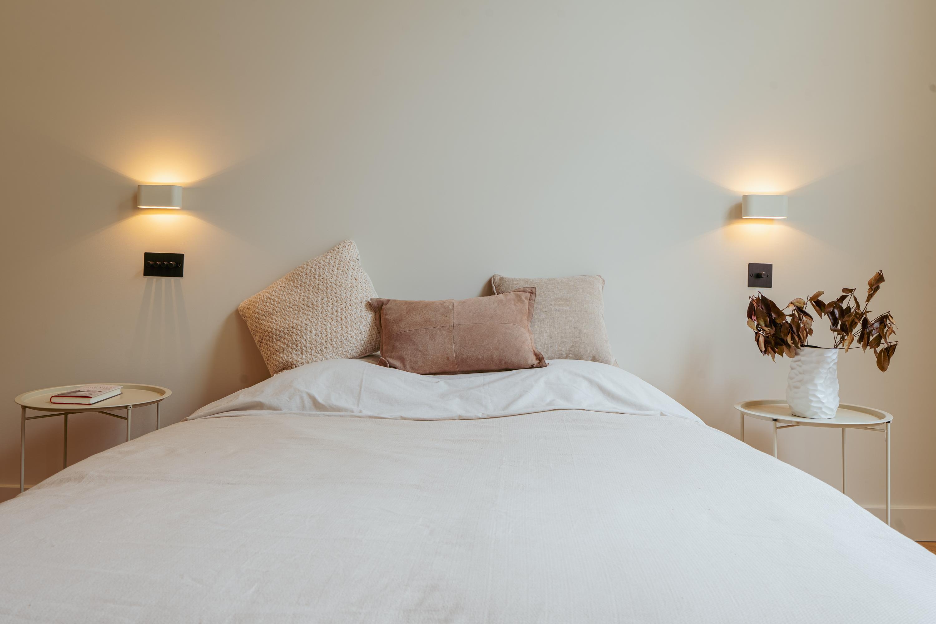 The primary bedroom features custom cabinetry and an en-suite bath detailed in marble, enhanced by characterful wooden archways and French doors opening to a rain shower. A second generous bedroom looks onto tranquil gardens, complemented by a dedicated bathroom. Mechanised ventilation, double glazing in select areas, and energy class B ensure a discreet, efficient environment.