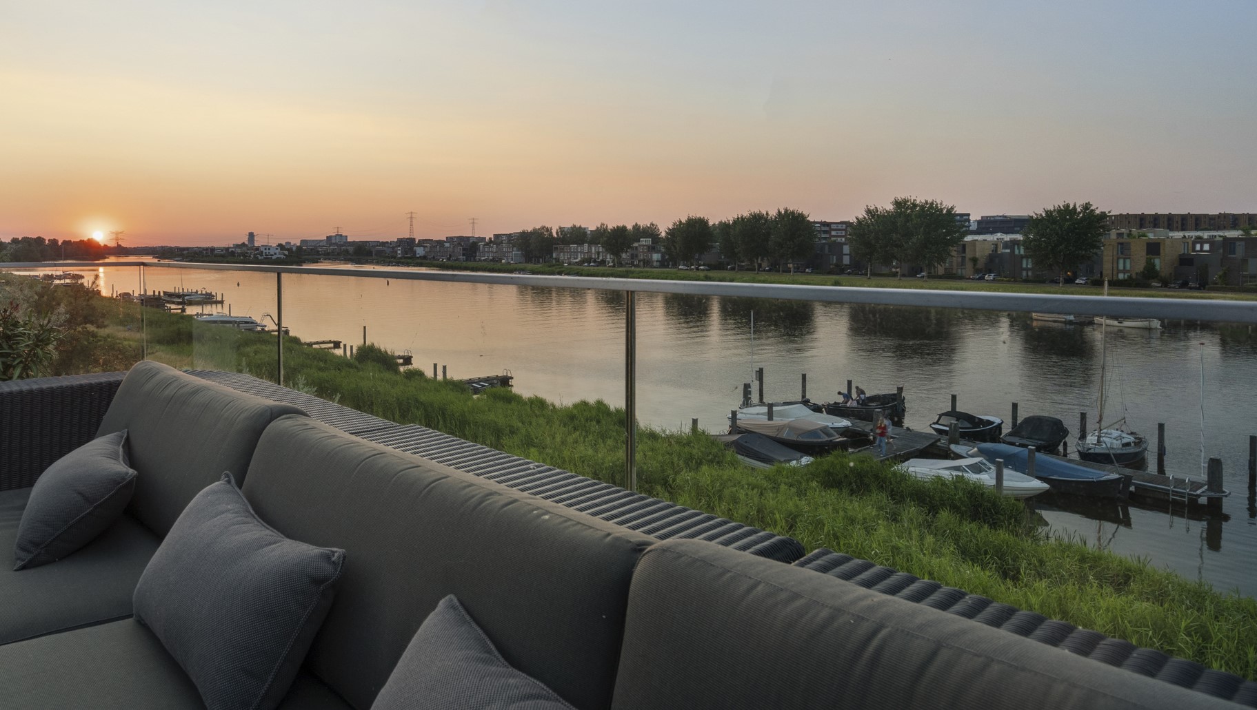 This dream villa exceeds all expectations with panoramic views from every floor over the water, a sensational rooftop terrace, 7 (bed)rooms, 3 luxurious bathrooms, an integrated garage and parking space for 4 or 5 cars on private grounds.