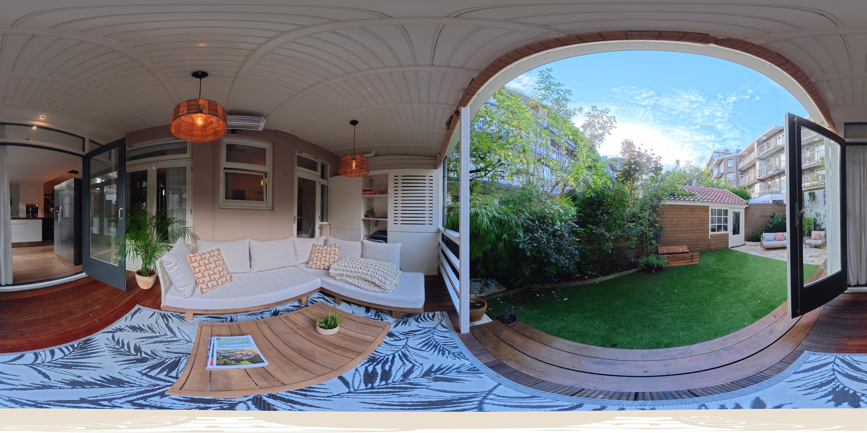 The sunny southwest-facing garden offers a high degree of privacy and features, in addition to the veranda, a detached garden house, ideal for extra storage or bicycle parking.
