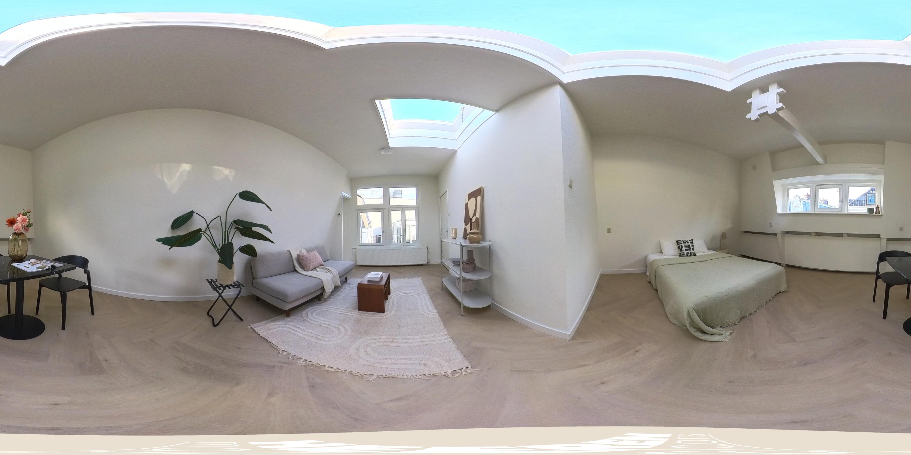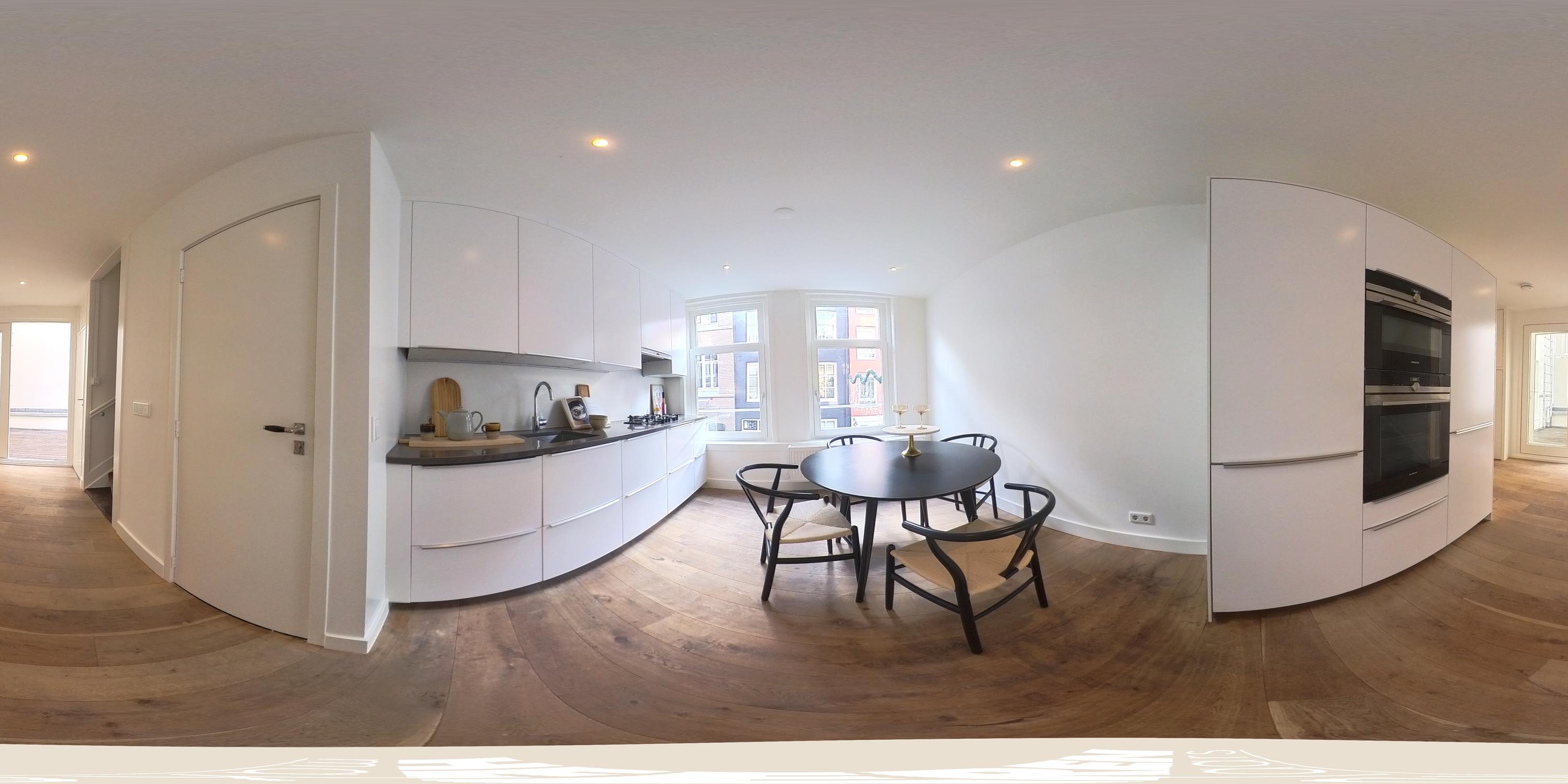 The spacious living room overlooks Nieuwe Spiegelstraat and receives abundant natural light. The bay window offers a beautiful view of the Rijksmuseum. From the kitchen, you can access the large south-facing roof terrace (approx. 44 m²) — a true rarity in this area. Authentic wooden flooring extends throughout this level.