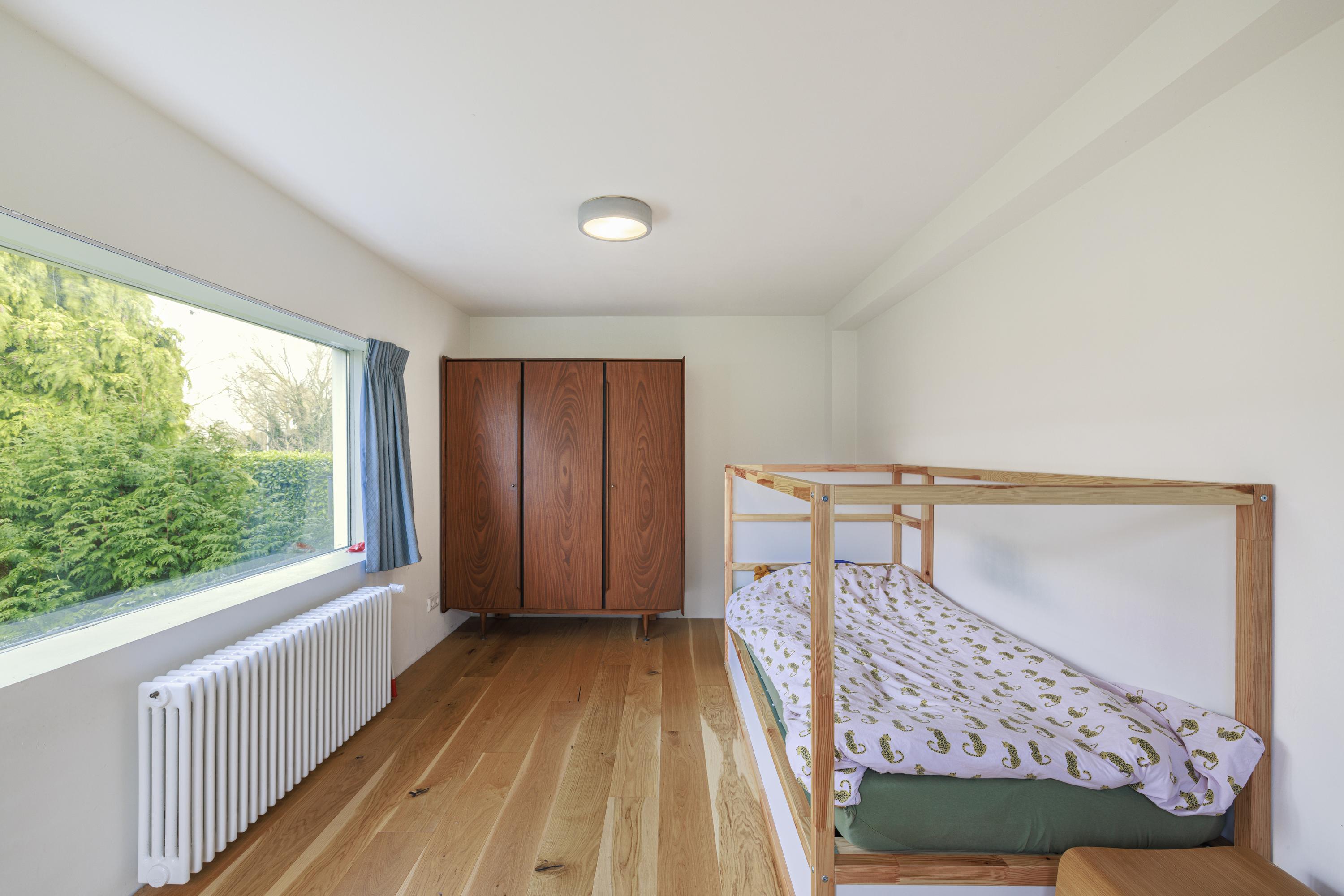 The Oostzanerdijk is a picturesque, village-style dike in a popular part of Amsterdam North. Situated along the dike, this unique detached home stands on an exceptionally wide plot. The property is a distinctive “fusion” design in which two architectural styles blend together beautifully. On the dike side, you’ll see a fresh green Zaan-style new-build house constructed alongside (and connected to) the original, renovated brick dike house. From the garden, it becomes clear that this is one spacious detached residence, with both sections connected at garden level across almost the full width of the plot.