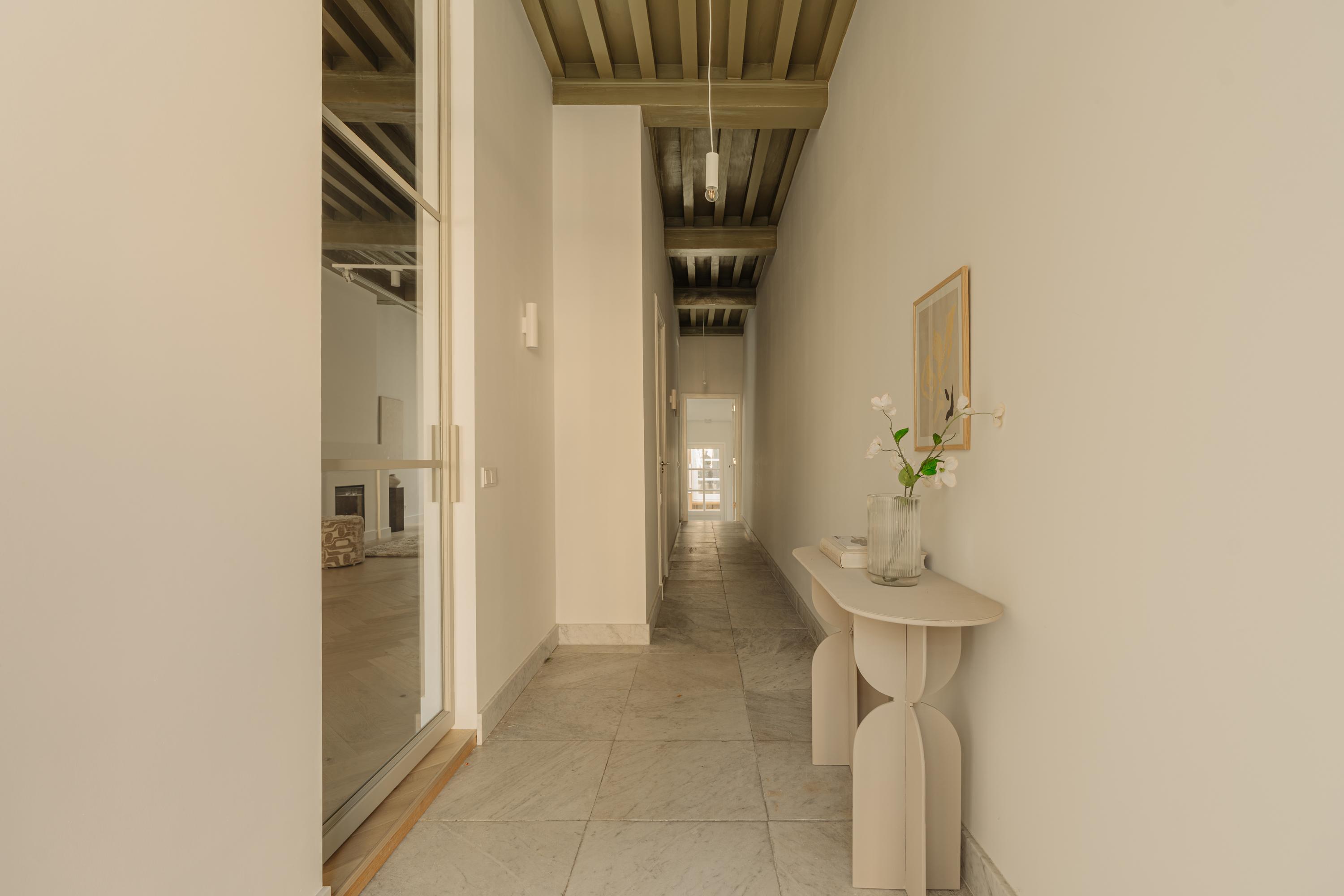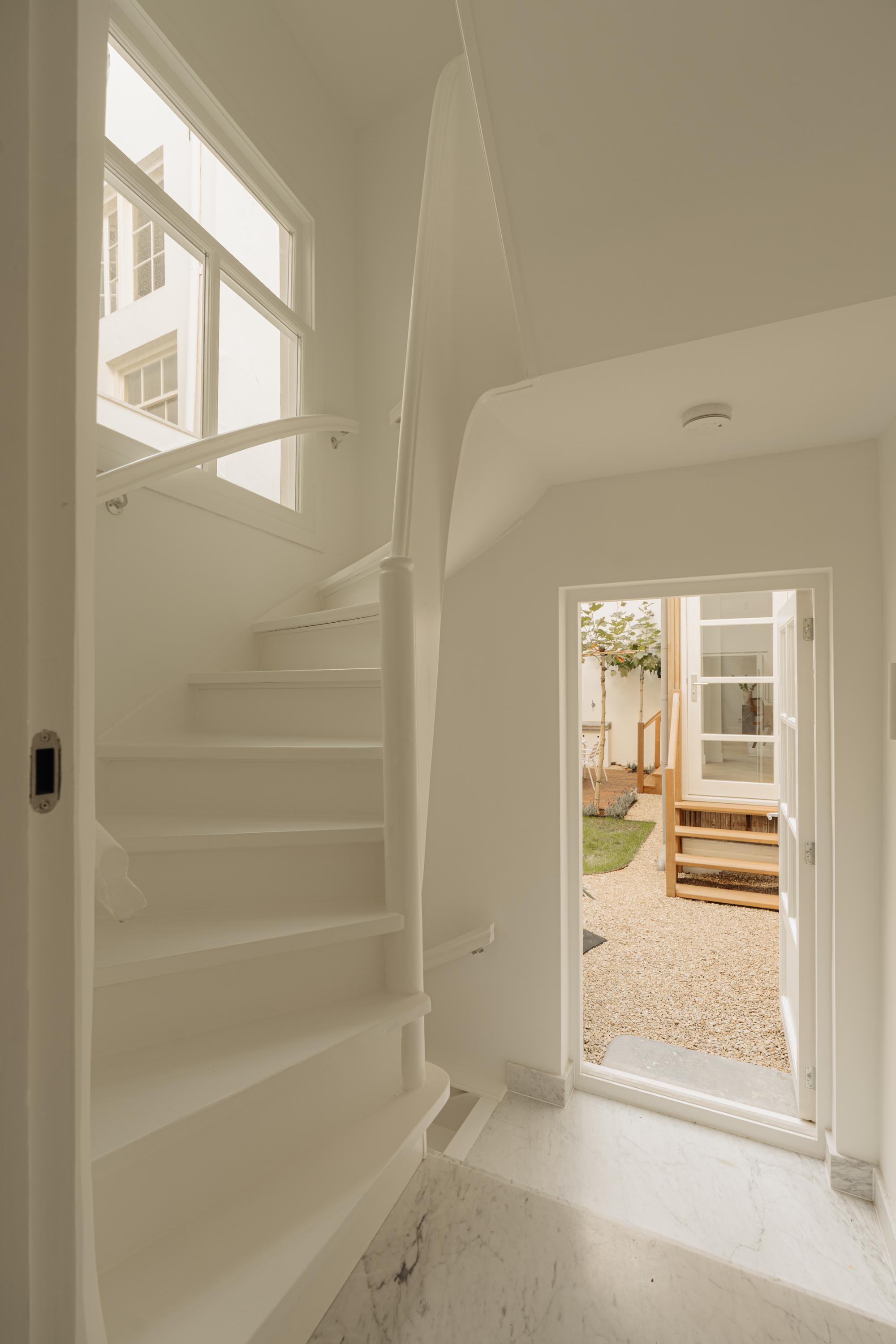 The raised ground floor exudes the classical elegance of Amsterdam’s canal belt, combined with a contemporary, tranquil atmosphere. A wide marble hallway, running the full length of the house, leads directly to the garden.