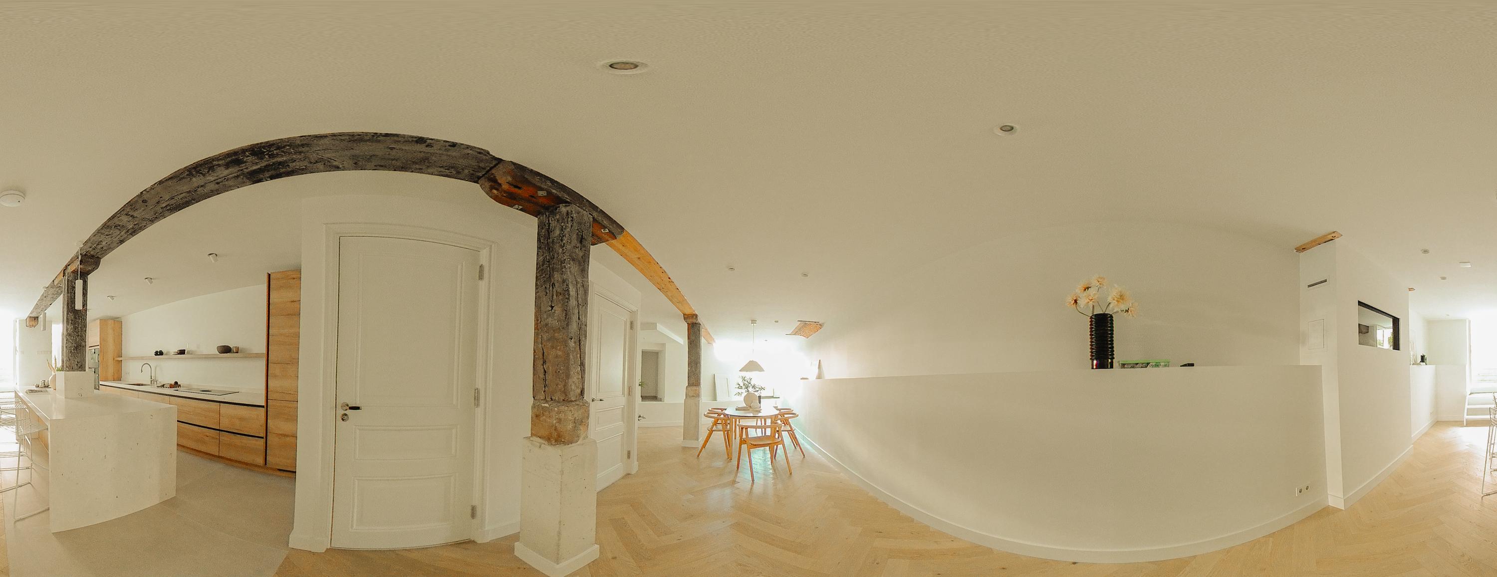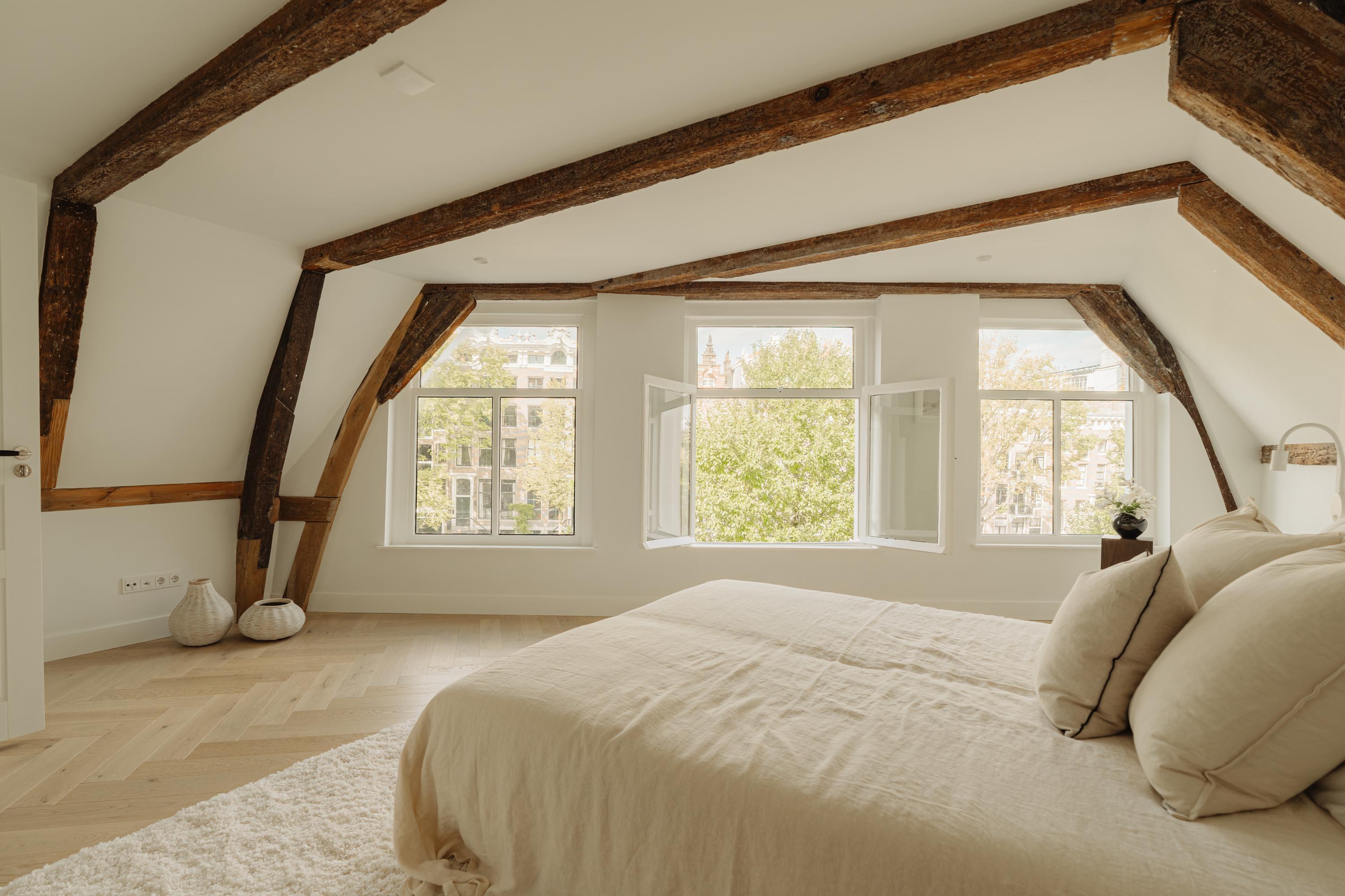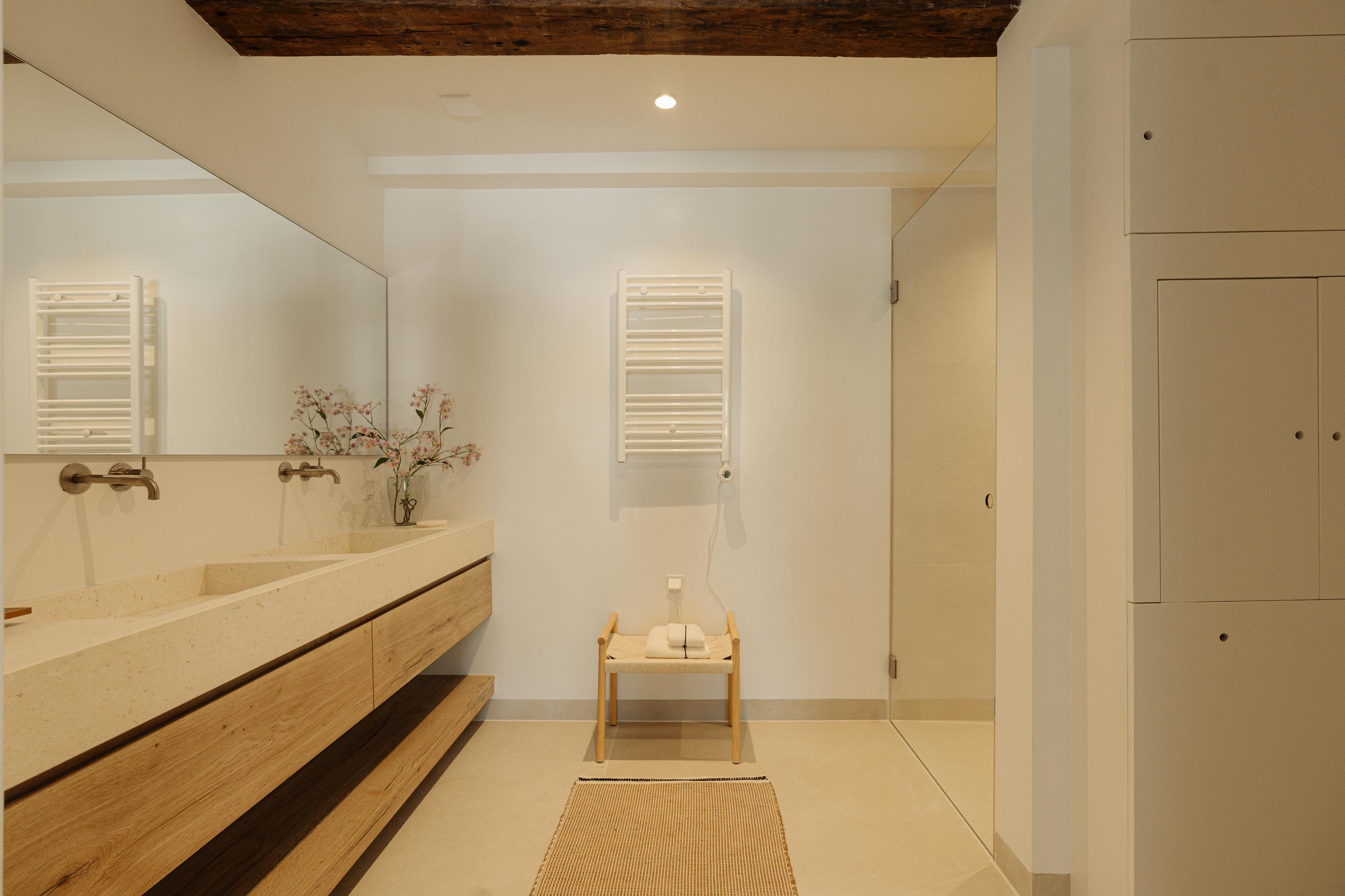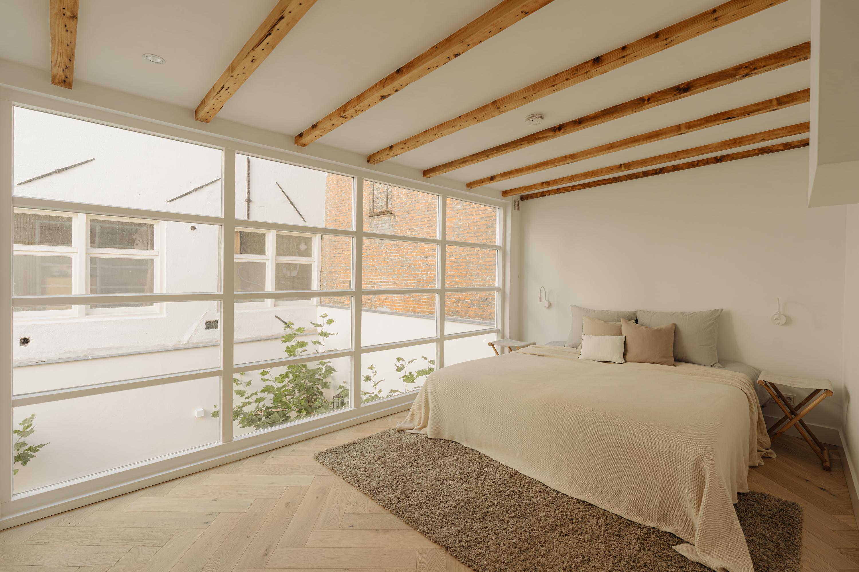 The property has been meticulously renovated with great attention to detail and respect for its original architecture. Exposed beams, high ceilings, and large windows recall the building’s historic character, while bespoke craftsmanship, natural materials, and serene finishes create an atmosphere of modern luxury.