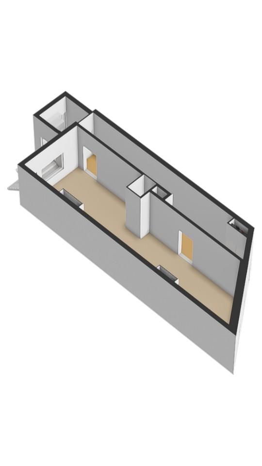 - On the ground floor, an open space with high windows and a warm wooden floor — ideal as a workspace, guest suite, or creative studio.