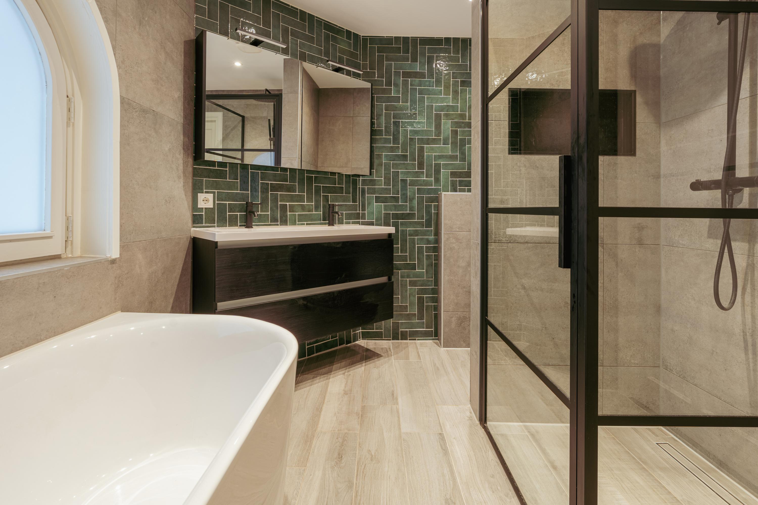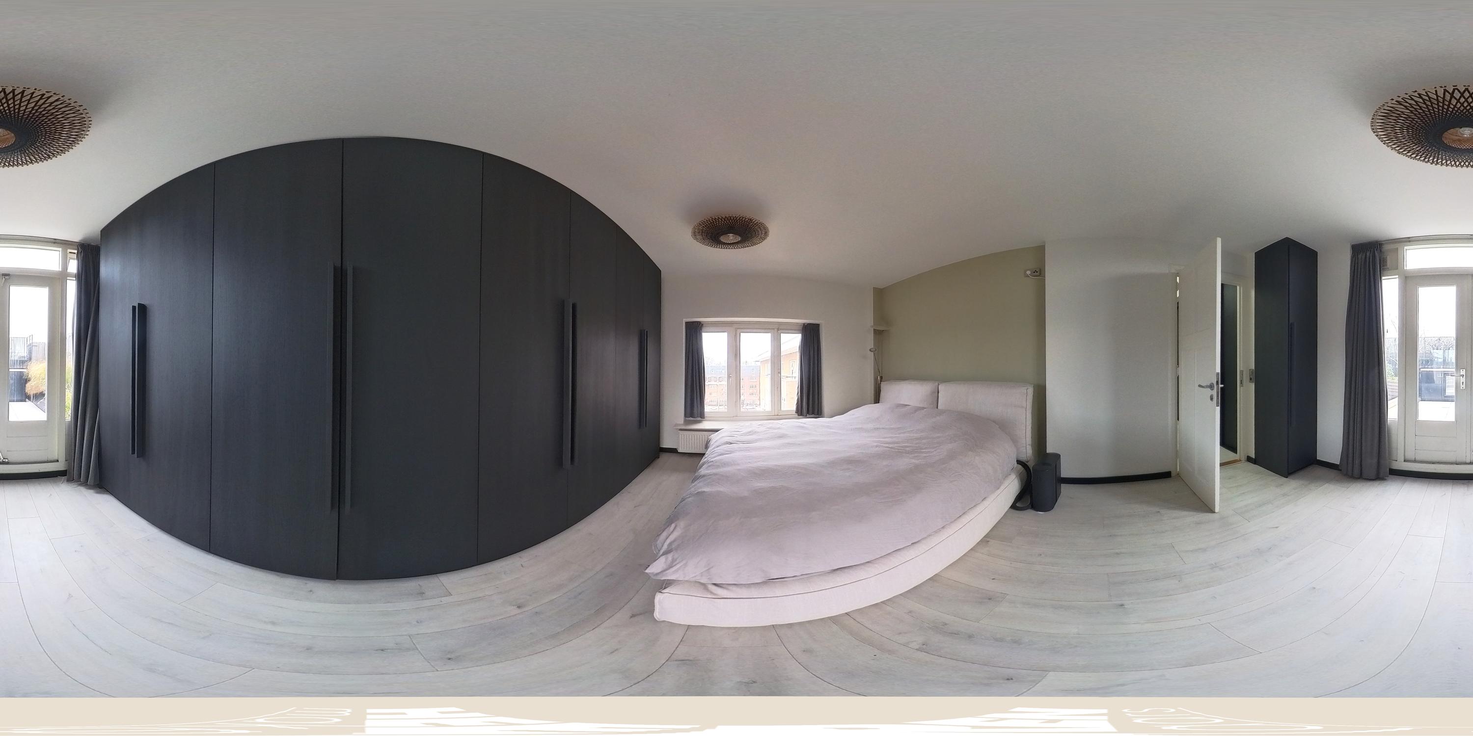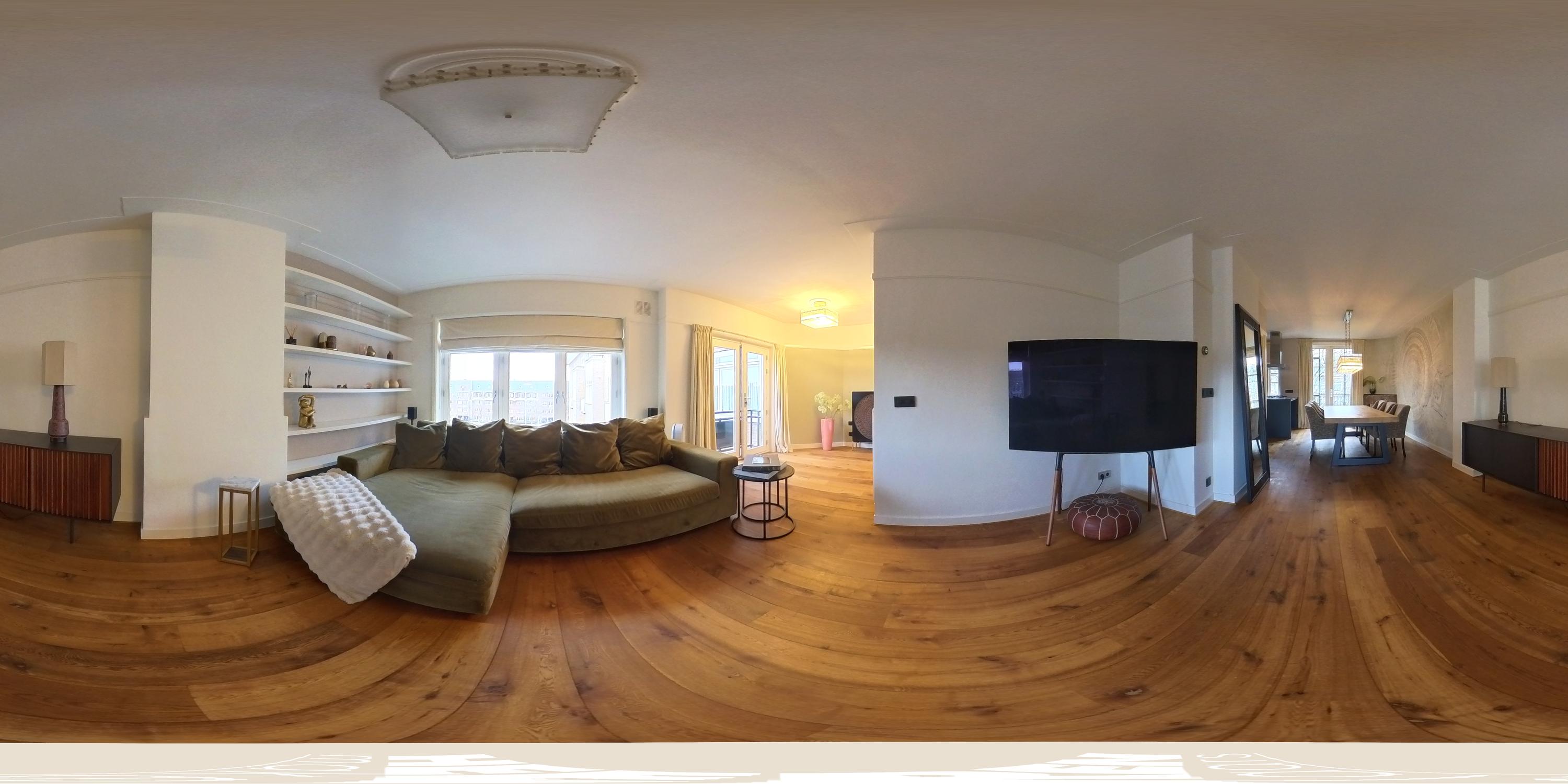 The spacious living area forms the heart of the apartment: an impressive L-shaped living room extending from the front to the rear of the property. Large windows at the front provide beautiful natural light. French doors open onto a charming balcony with open views over the lively Stadionplein. The generous layout offers various possibilities for furnishing and arrangement.