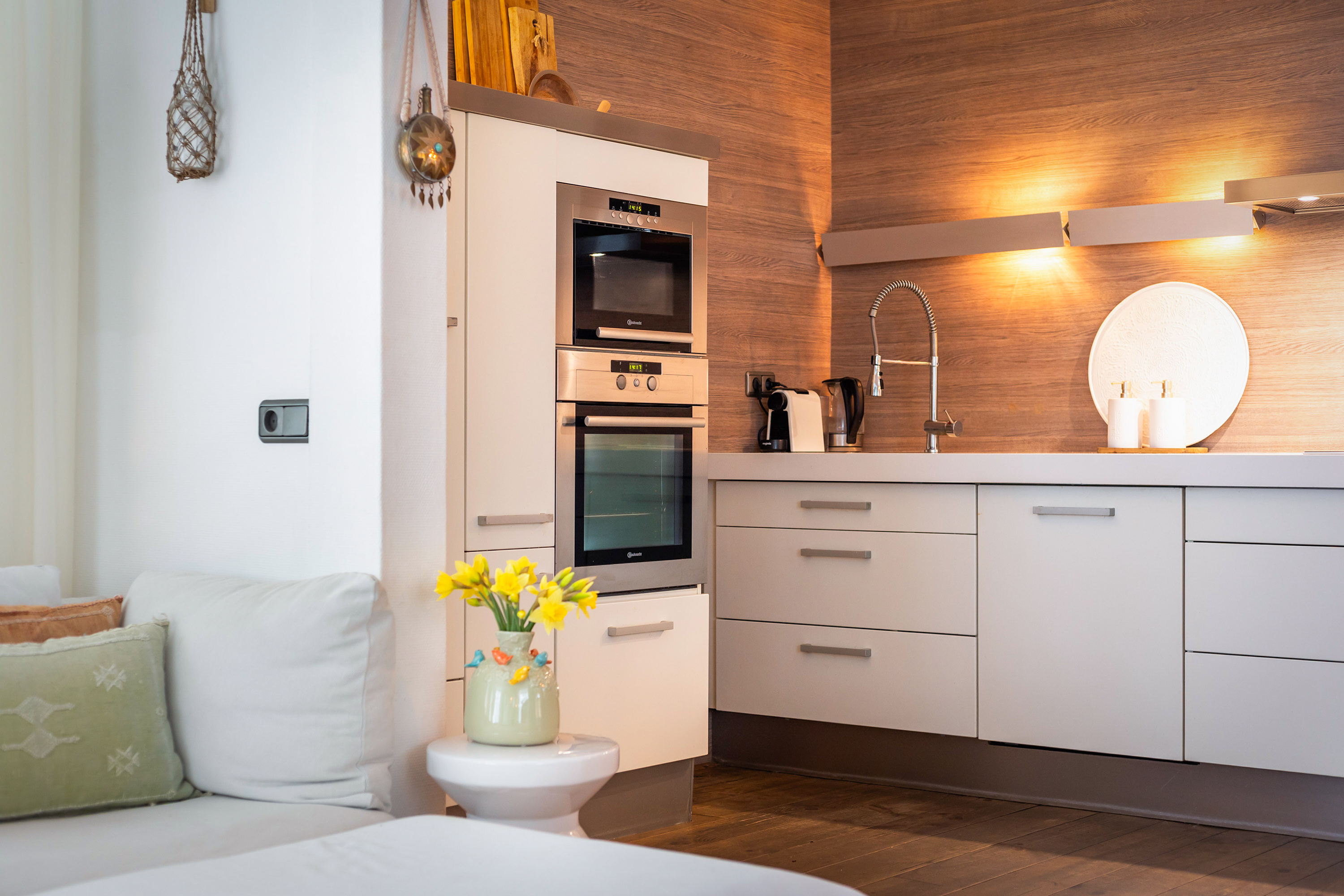 This atmosphere also continues throughout the interior. The bedrooms have been stylishly finished with a hotel-chic look and each bedroom benefits from its own air-conditioning unit, ensuring optimal comfort throughout the year.