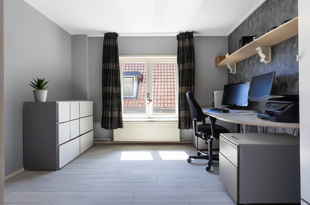In 2024 is de vloer van de woonkamer vervangen door een Faber gasbetonvloer en voorzien van vloerverwarming, aangesloten op de HR-combiketel. De woonkamer en entree zijn stijlvol afgewerkt met een PVC-vloer in visgraatmotief in de tint white-wash eiken. Wanden en plafonds zijn strak gestuct en voorzien van sierlijsten en ornamenten die de woning extra allure geven.
