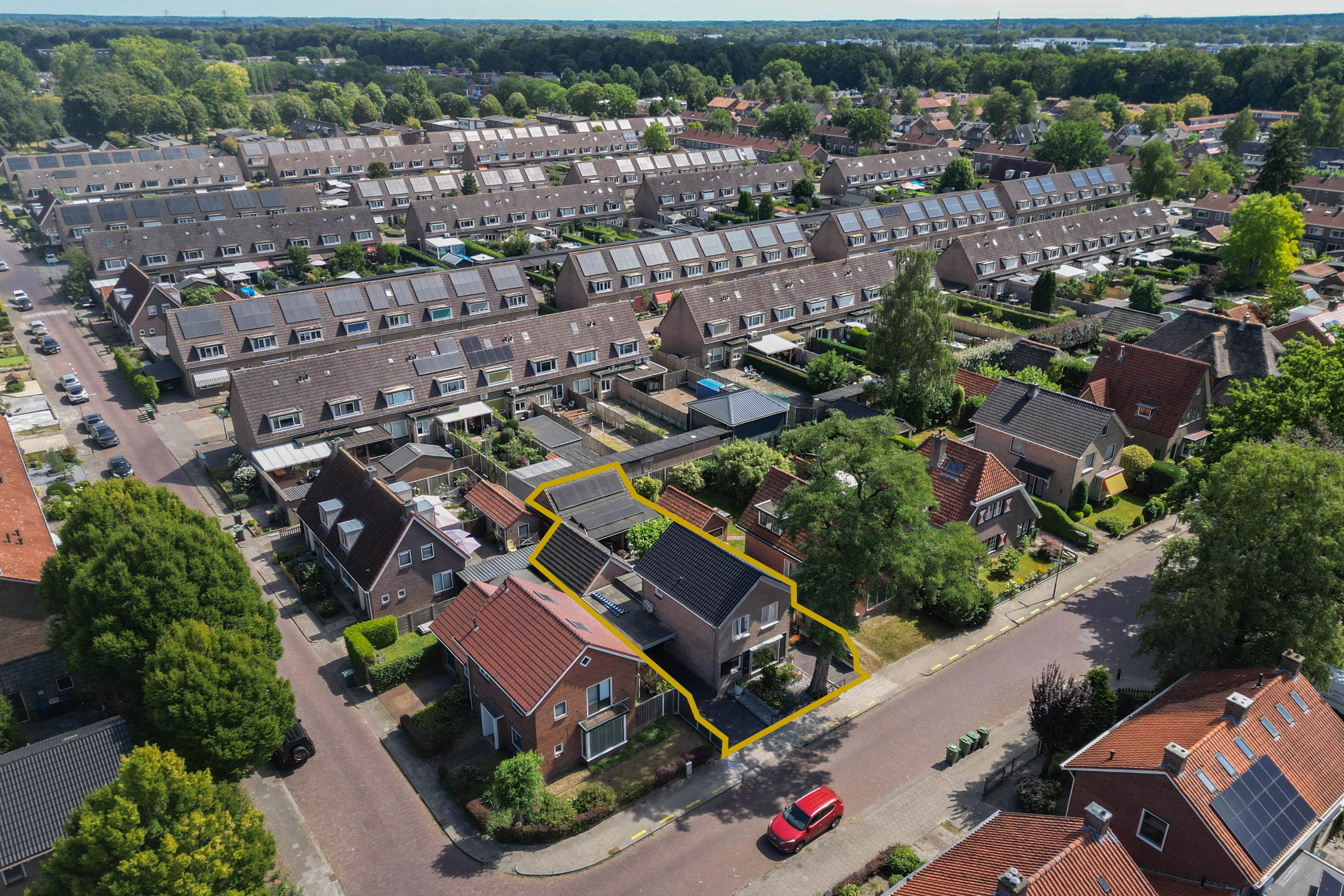 De buitenruimte is minstens zo aantrekkelijk. De fraai aangelegde tuin beschikt over terrassen van blauw hardsteen, granieten plantenbakken en diverse zitplekken. Aan de achterzijde staat een houten schuur met bergvliering met daarvoor een exclusieve veranda vervaardigd uit een robuust eikenhouten constructie en een met EPDM afgewerkt dak: een heerlijke plek om te genieten van het buitenleven en gezelligheid. De erfafscheidingen zijn recent vernieuwd in samenwerking met de buren en bestaan uit schuttingen met betonpalen en hout. Aan de voorzijde siert een acaciaboom de tuin, terwijl een smeedijzeren hekwerk met afsluitbare poort zorgt voor een stijlvolle entree. De royale oprit met klinkerbestrating en carport biedt plaats aan meerdere auto’s.