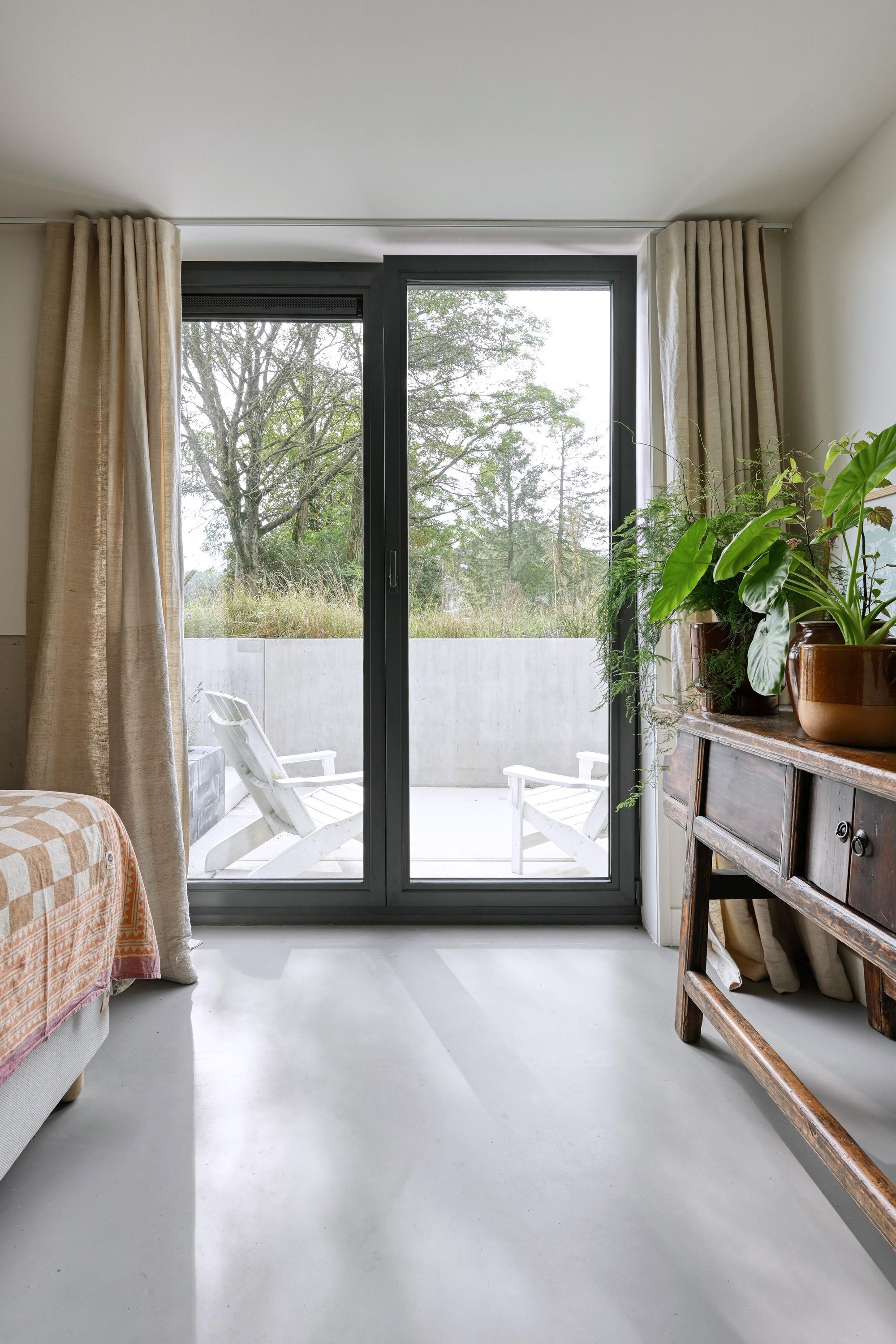 De vloeren zijn grotendeels uitgevoerd in gevlinderd beton die een knipoog zijn naar het industriële karakter van de voormalige hangar. De vloeren zijn voorzien van vloerverwarming.