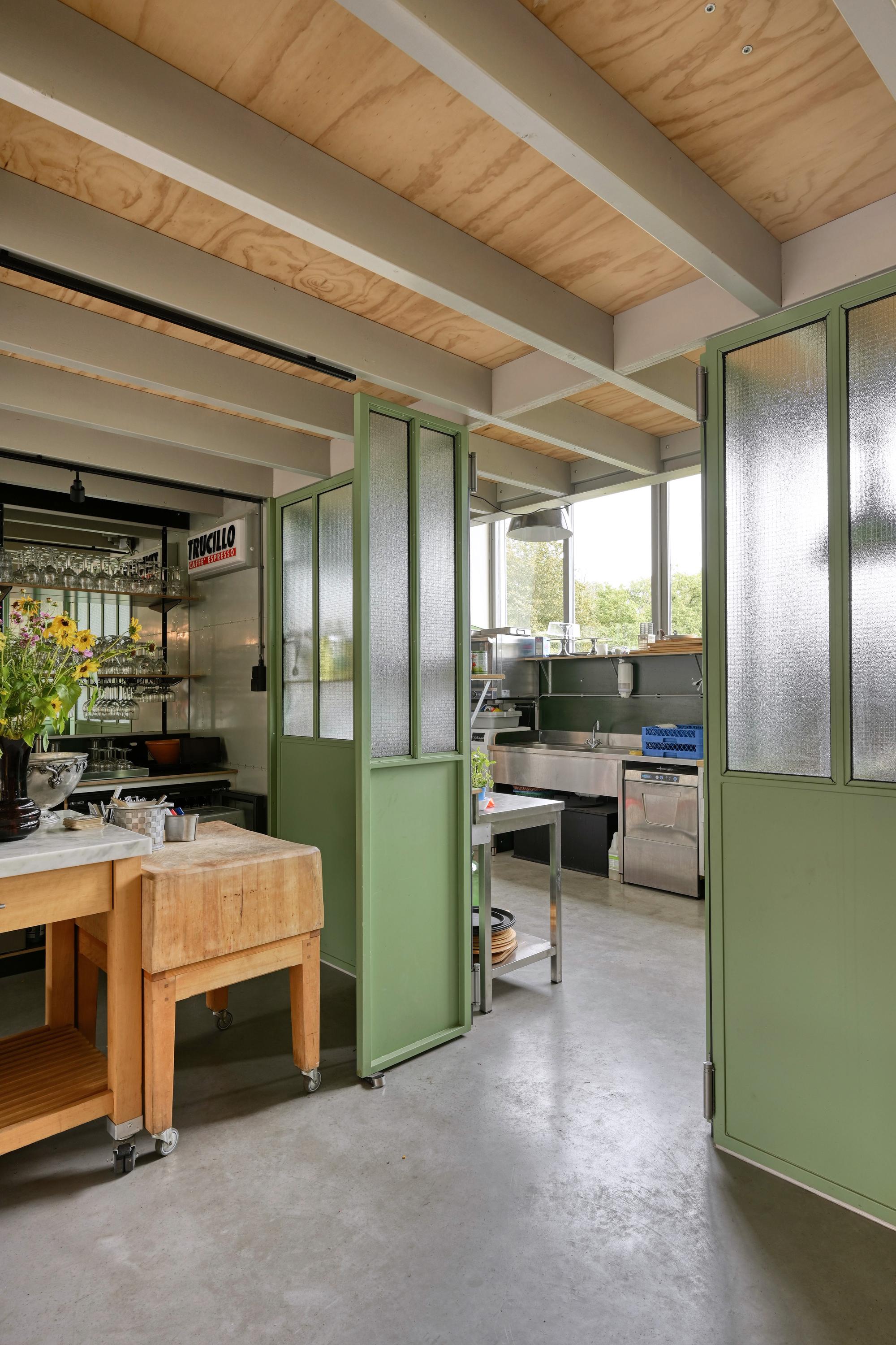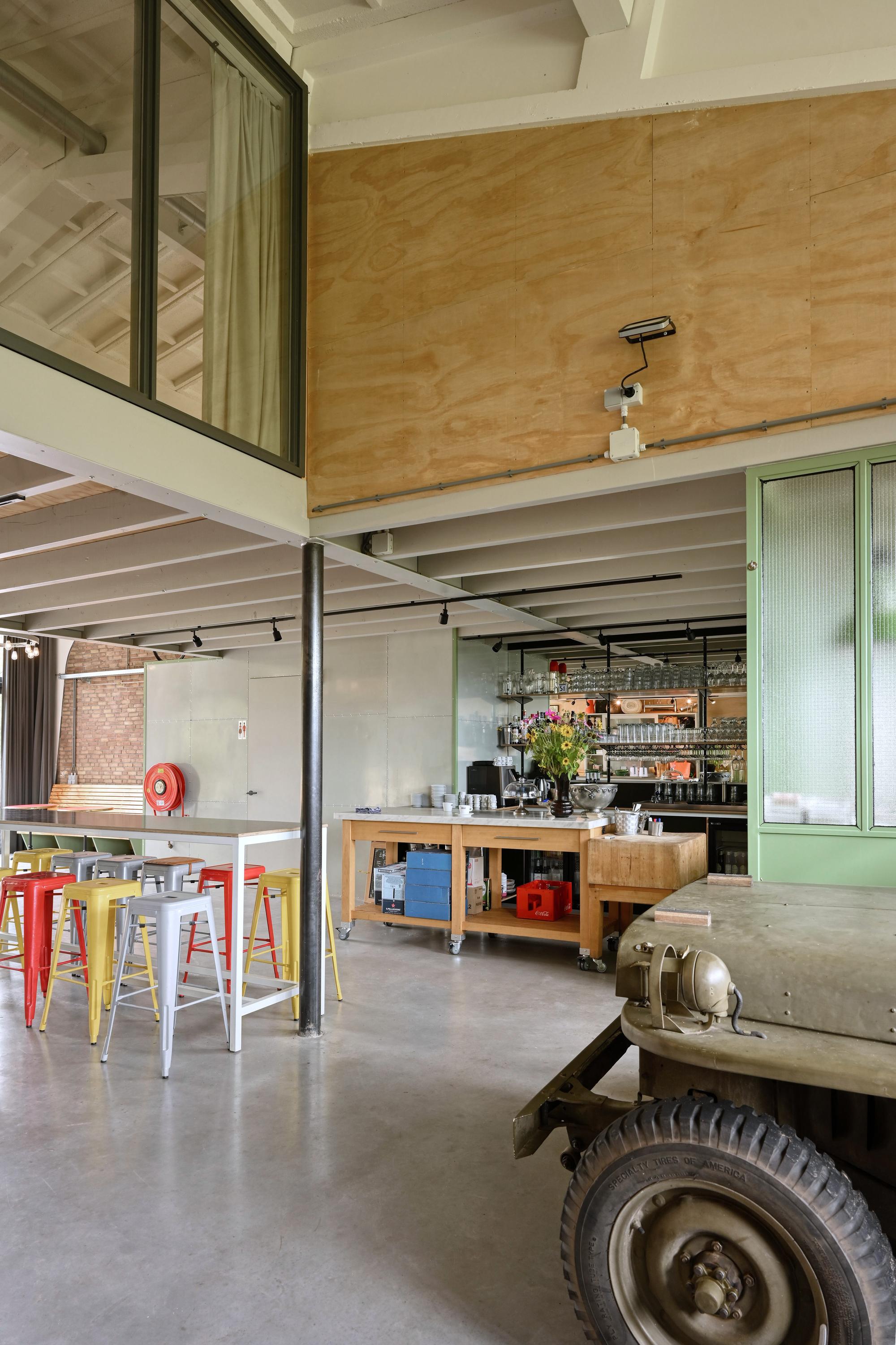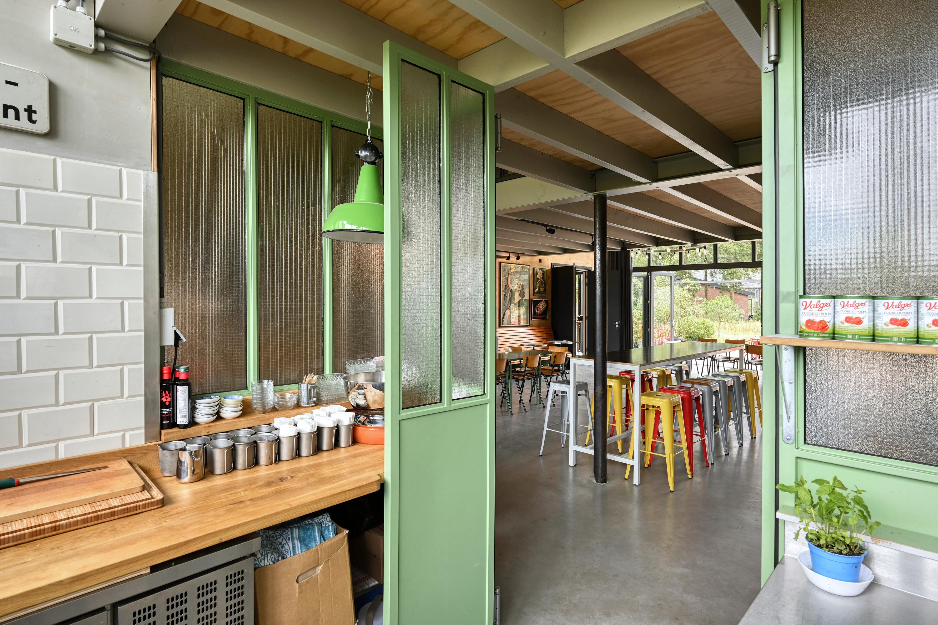 Het pand heeft een horecabestemming en deed ooit dienst als militaire hangar. In 2021 is het volledig gerenoveerd en luxe uitgebreid met een moderne bedrijfswoning. Vanuit de woning kijk je uit over het groen en ervaar je elke dag het gevoel van vrijheid.