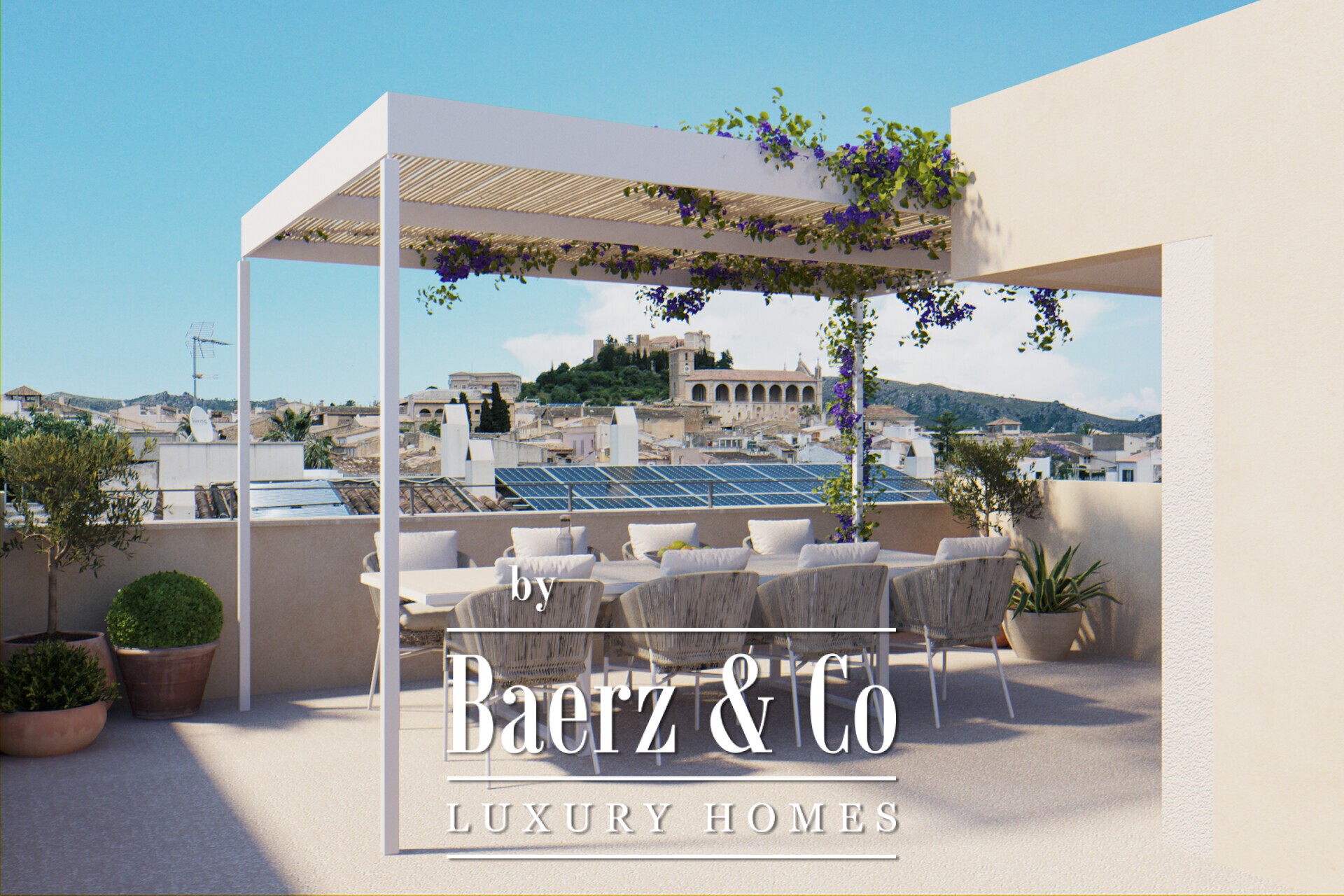 Crowning the property, a 71 m² rooftop terrace reveals sweeping views over the village rooftops, thoughtfully designed for both relaxation and entertaining. An integrated lift connects all floors from street level to the rooftop, ensuring accessibility throughout. Built-in air conditioning and floor heating enhance comfort across all seasons. This property combines the energy of Artà’s village centre with the discretion and potential of a luxury mixed-use residence for sale in Artà.
