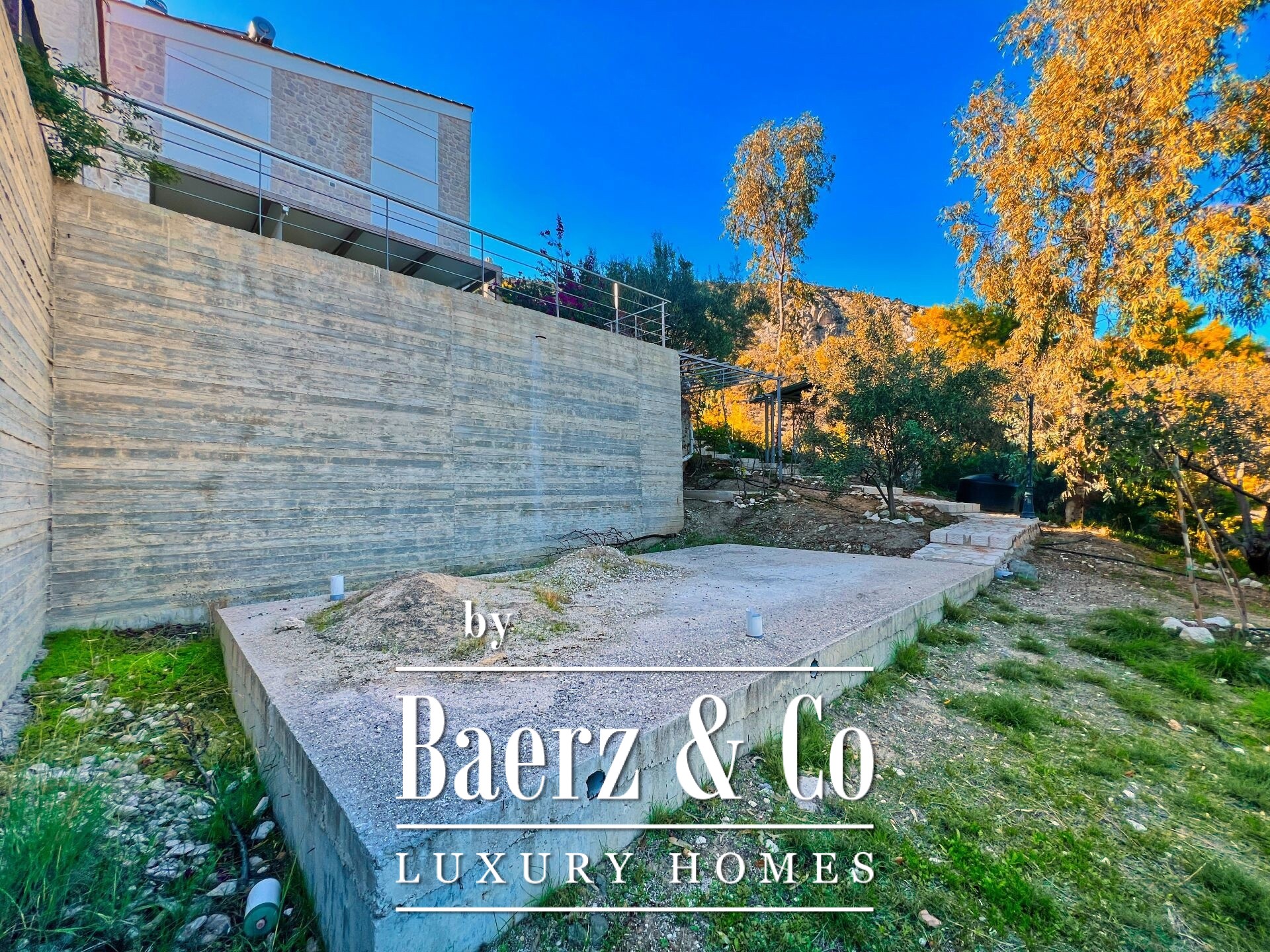Stone residences Asini are introduced as an exclusive opportunity, set on a tranquil hillside above Tolo and offering far-reaching 180° panoramic views over the Argolic Gulf and surrounding mountains. The property forms a discreet complex of three autonomous homes, totaling 158 m² of living space on a 2,410 m² plot, harmoniously grounded in the landscape through the use of local stone and wood.