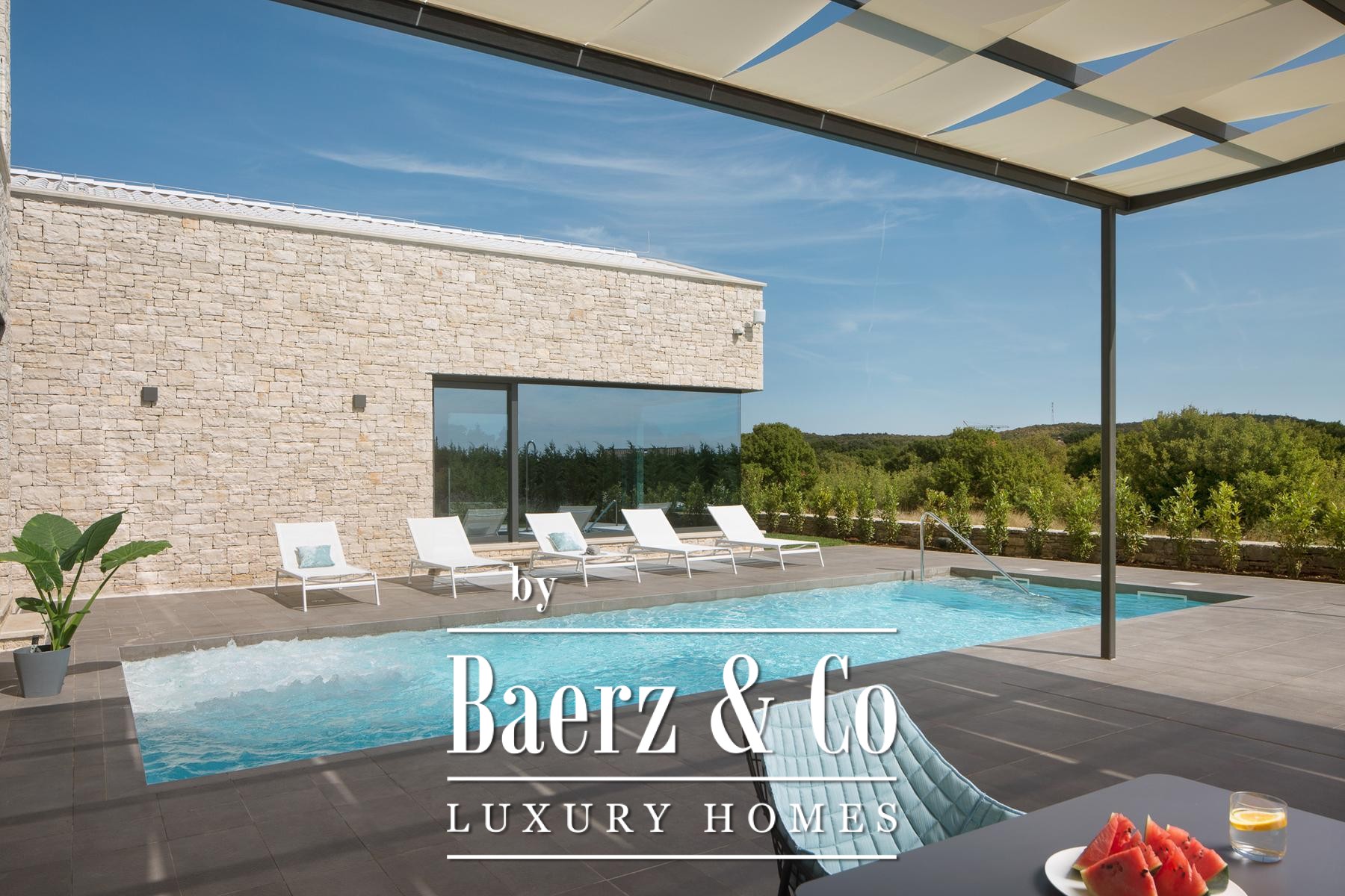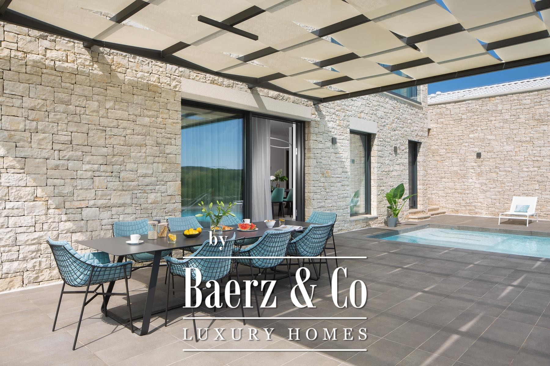 Luxury villa Bale Croatia is offered as a complete package, balancing polished living with meaningful investment scope in Istria’s serene landscape. The property comprises a 363 m², five-star villa constructed in 2021, set on a 1,424 m² plot, accompanied by a contiguous 1,791 m² parcel with approval for an additional villa. Together, these well-positioned lands total 3,215 m², providing both seclusion and expansion possibilities.