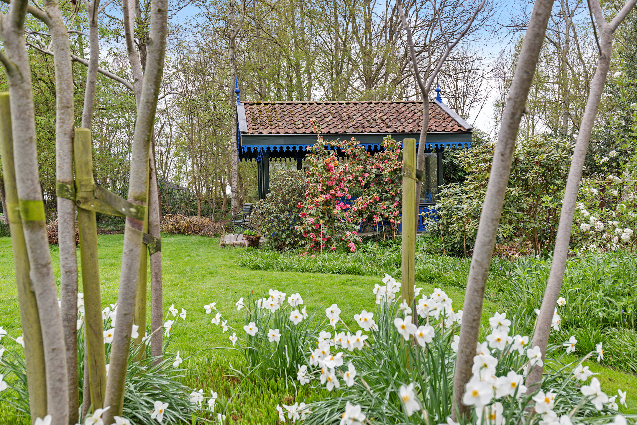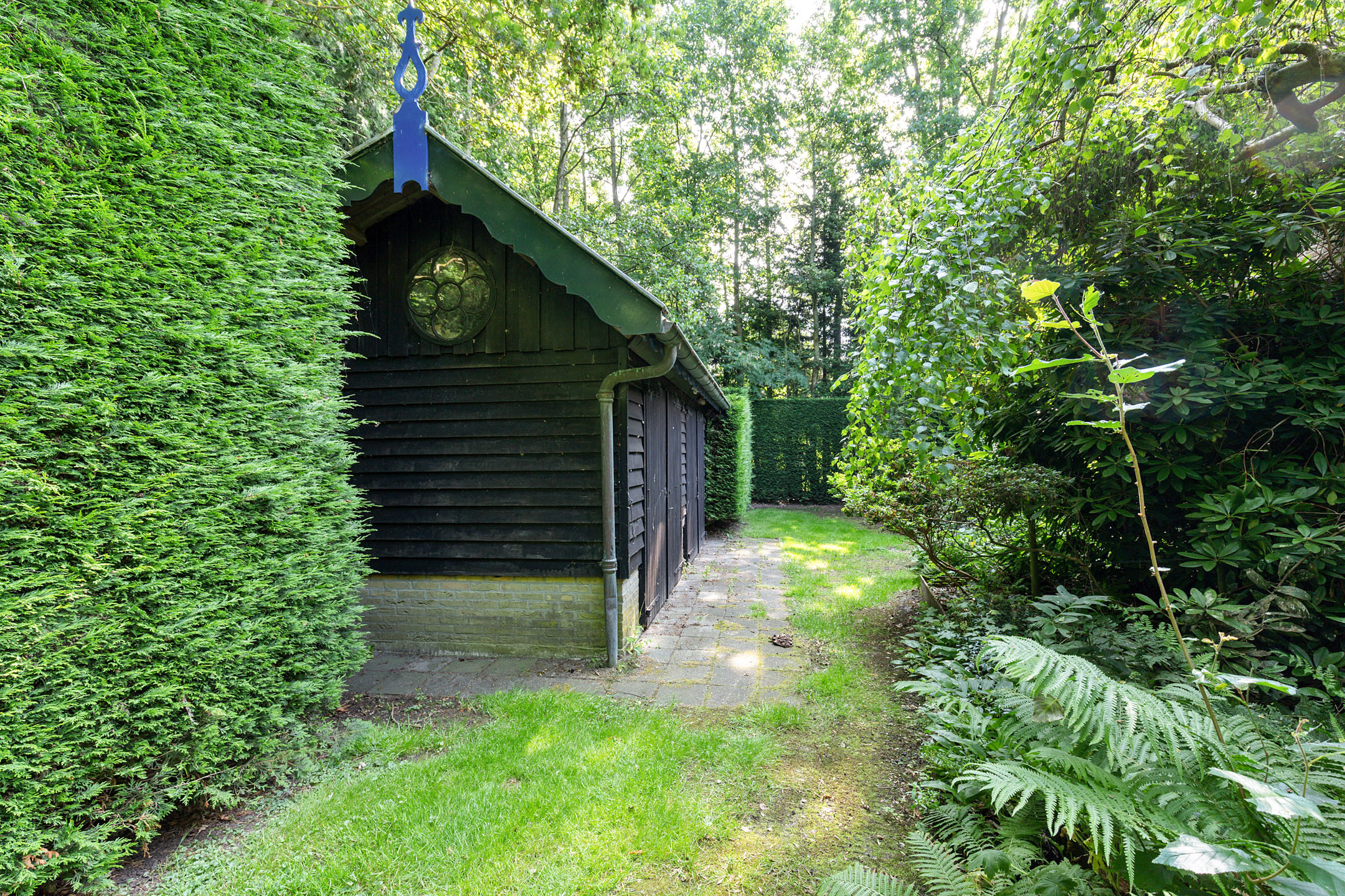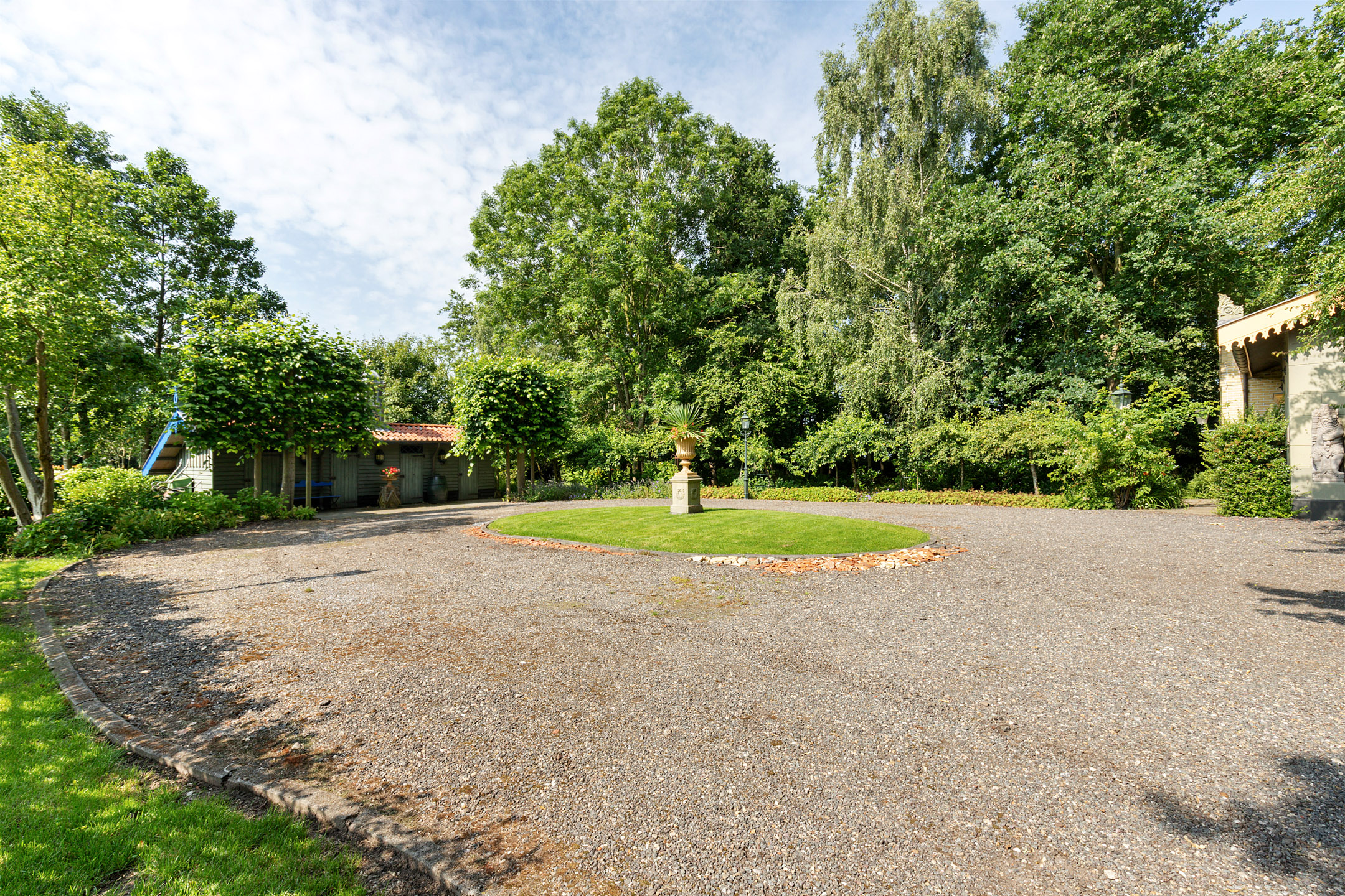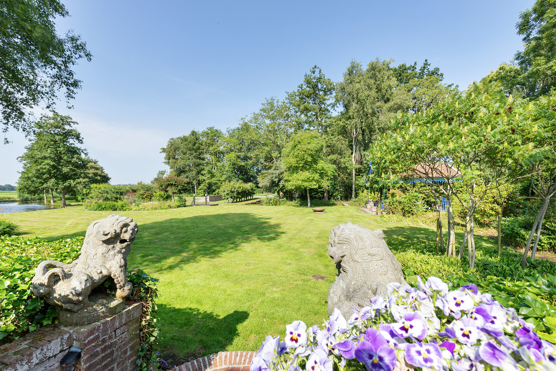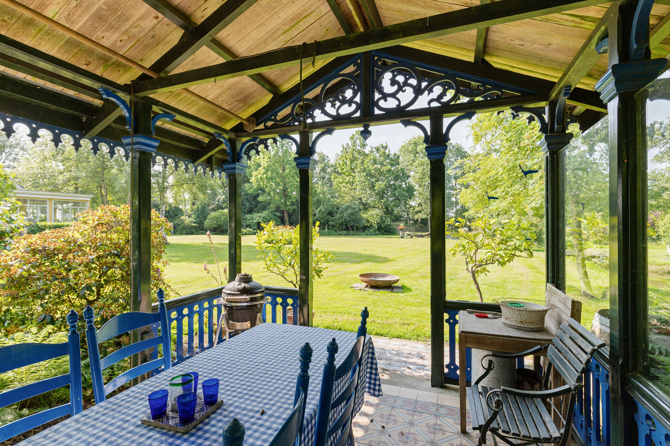 What began as a plot of approximately 1,600 m² has grown into a remarkable estate of approximately 3.18 hectares. The gardens were carefully designed to combine formal and natural elements, including two (swimming) ponds, multiple terraces, garden houses, a conservatory with vegetable garden, wooded areas, and expansive lawns.