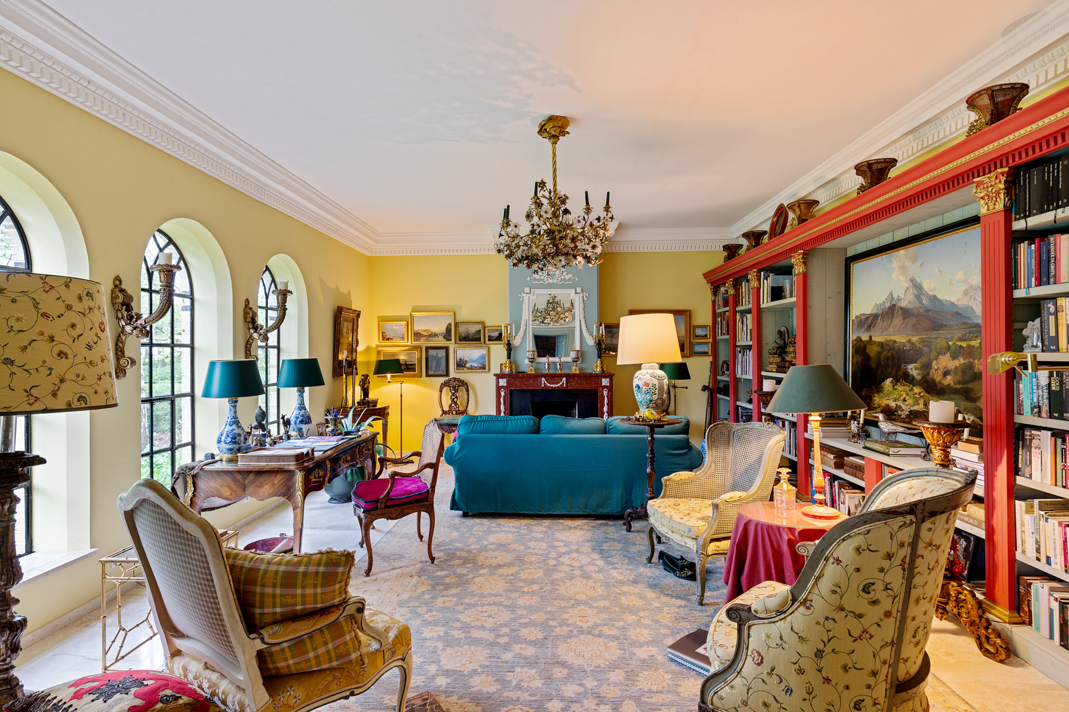 Full of character, it boasts a Stevenson or Norwich cornice, a French dessus-de-porte from the 18th century, a faux marble fireplace, and a trumeau from a Frisian town hall, all contributing to its historic charm.