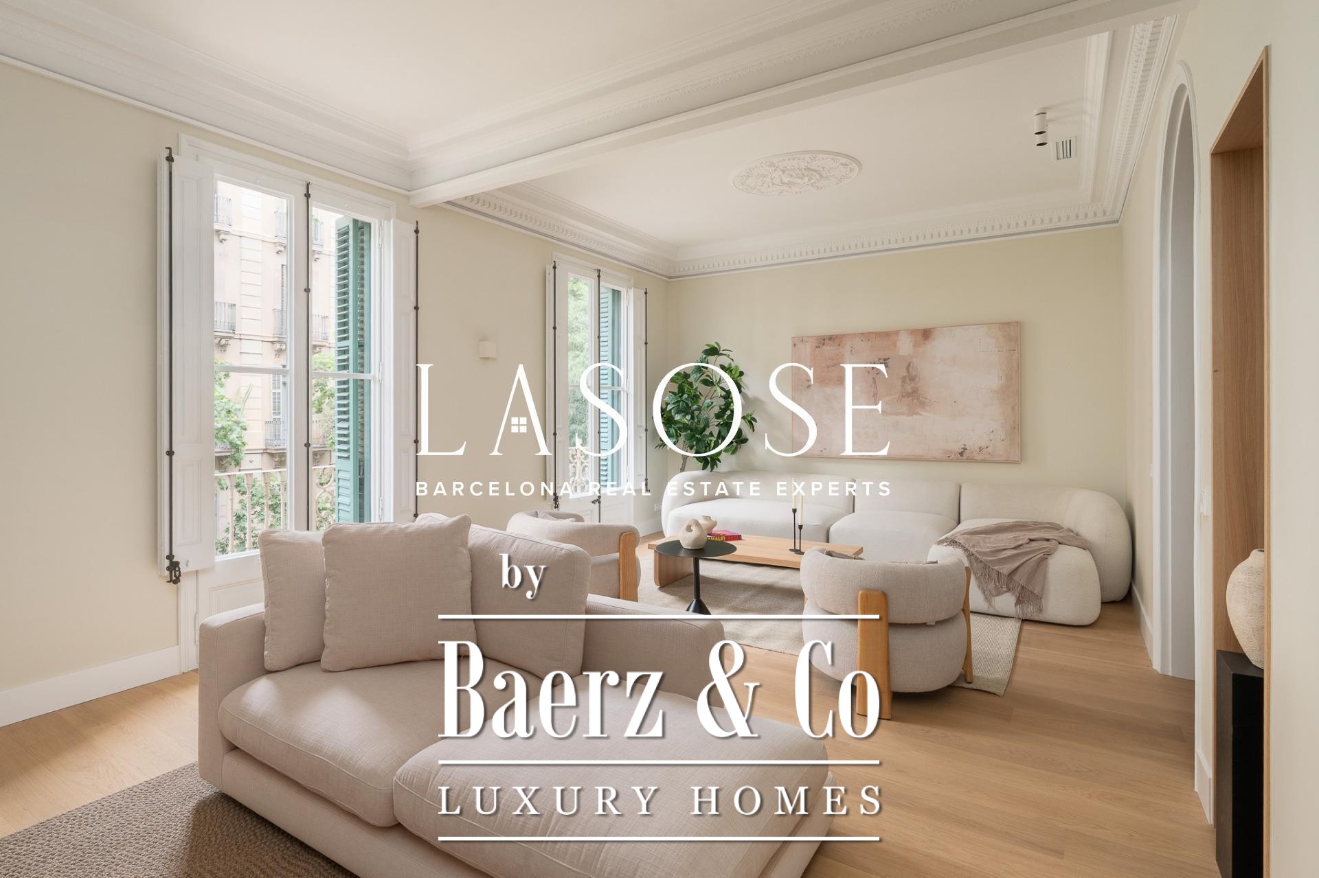 LASOSE is privileged to present this magnificent high-end residence, located in the heart of Barcelona's coveted Eixample district.. . Located in an elegant listed royal estate dating from 1900, this property stands out for its stately architecture, its historical value and its unmistakable character. It is a unique apartment, where the charm of Barcelona's modernism merges with the most demanding comfort and contemporary design.. . Located on a bright 2nd floor with double orientation, the property enjoys abundant natural light throughout the day. Its careful distribution maximizes every corner, offering spacious, functional and stylish spaces.. . The property has three elegant double suites, all with full bathroom, and one of them equipped with an exclusive glazed gallery, perfect as a chill out corner or as a sophisticated workspace.. . The spacious living-dining room is harmoniously integrated with a designer kitchen with central island, equipped with top-of-the-line materials and appliances: polished marble countertop by Levantina, porcelain flooring, and high-end appliances by De Dietrich, Bora and Liebherr (including refrigerator, dishwasher and wine cooler).. . In addition, the dining room - bathed in natural light - can easily be transformed into a fourth bedroom according to the buyer's needs.. . This exclusive home offers luxury finishes such as natural wood floors, original hydraulic tiles and high ceilings decorated with moldings and rosettes, which