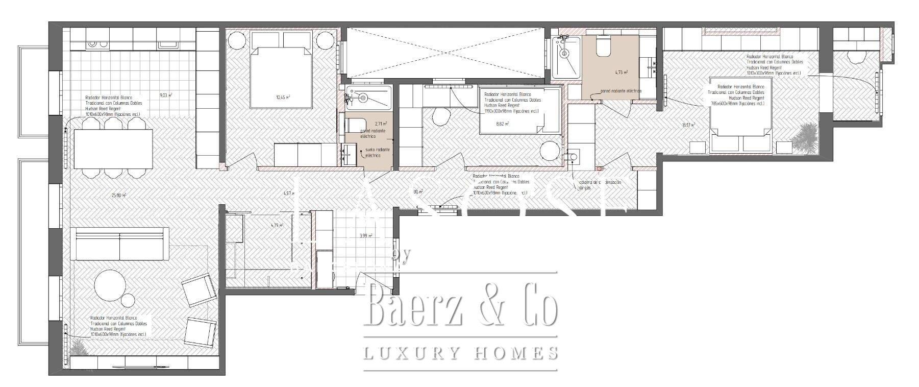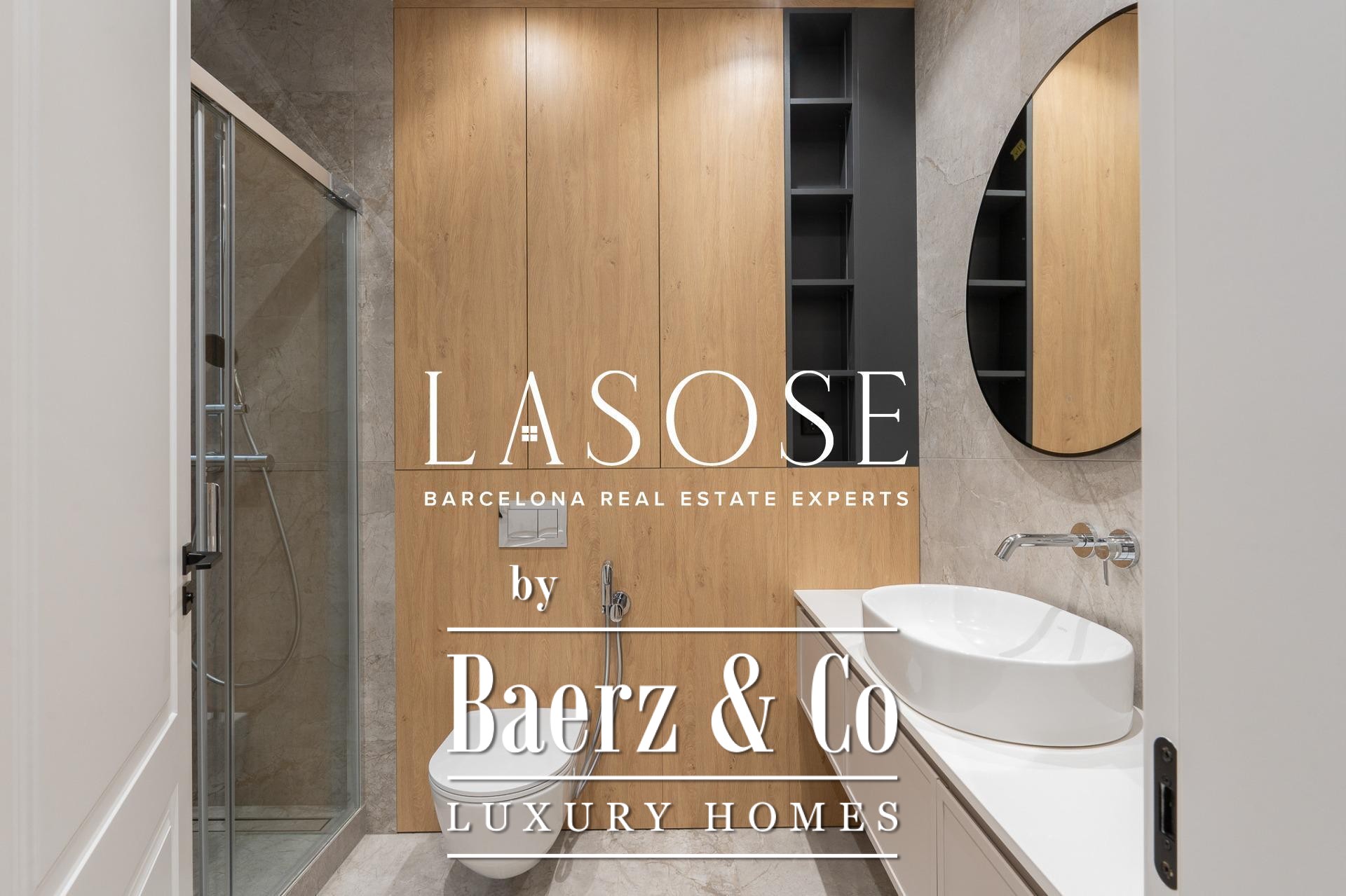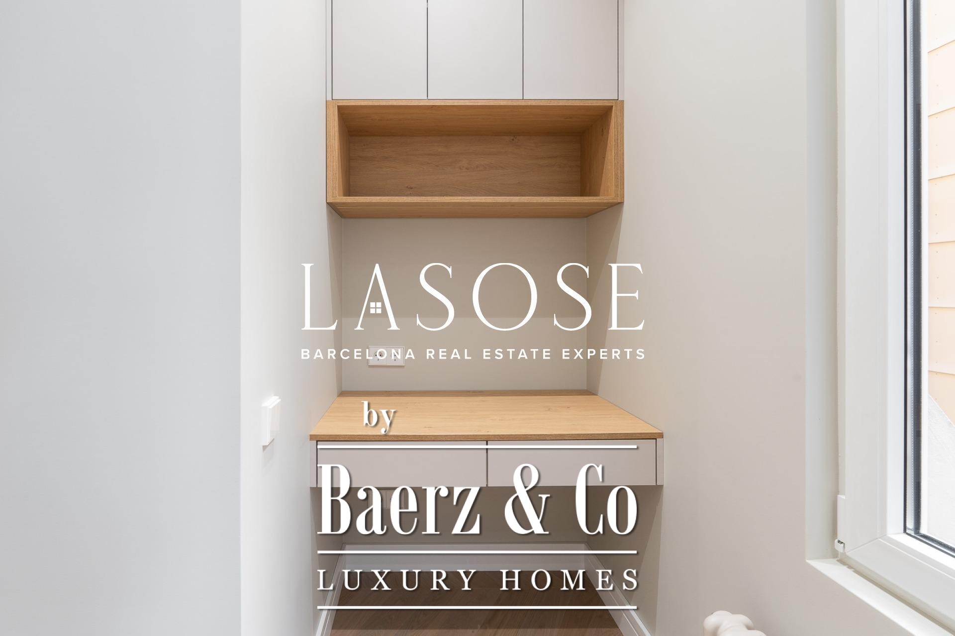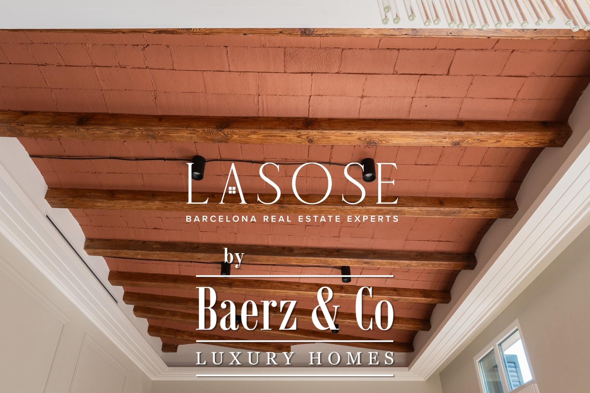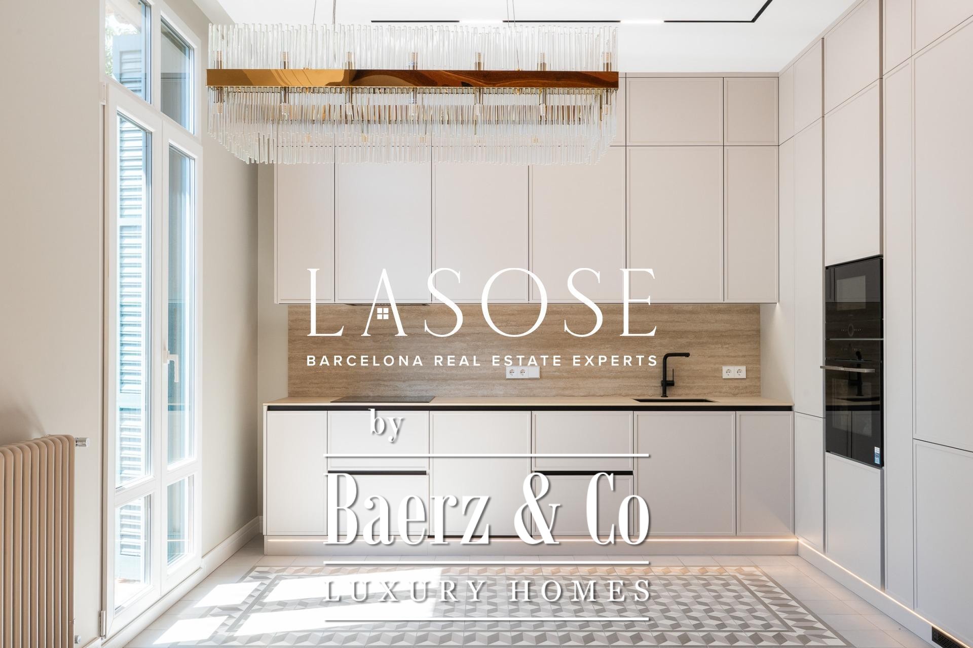 We present you a spectacular property in a regal estate dating back to 1910, located on a corner with privileged views of the Paseo de Sant Joan. This flat has been refurbished with an exquisite interior design project that combines the best of the original architecture with a modern and sophisticated design.. . With a built area of 124m2 distributed in a night area and a day area. We begin with the heart of this home; the spacious living-kitchen-dining room that opens onto three charming balconies, flooding the room with natural light. . . The kitchen is fully equipped with top of the range Bosch appliances and integrated furniture, ensuring functionality and style. The high ceilings, which reach 3.30 metres, boast an impressive vaulted ceiling with wooden beams in the living room area, giving a feeling of spaciousness and elegance like no other. Herringbone natural wood floors add warmth, while the original hydraulic flooring in the entrance and kitchen, along with porcelain finishes in the bathrooms, offer a touch of distinction and character.. . The property has 3 spacious bedrooms, including a suite that includes a dressing room, private bathroom and a comfortable desk area. It also has 2 complete bathrooms with designer showers, designed to