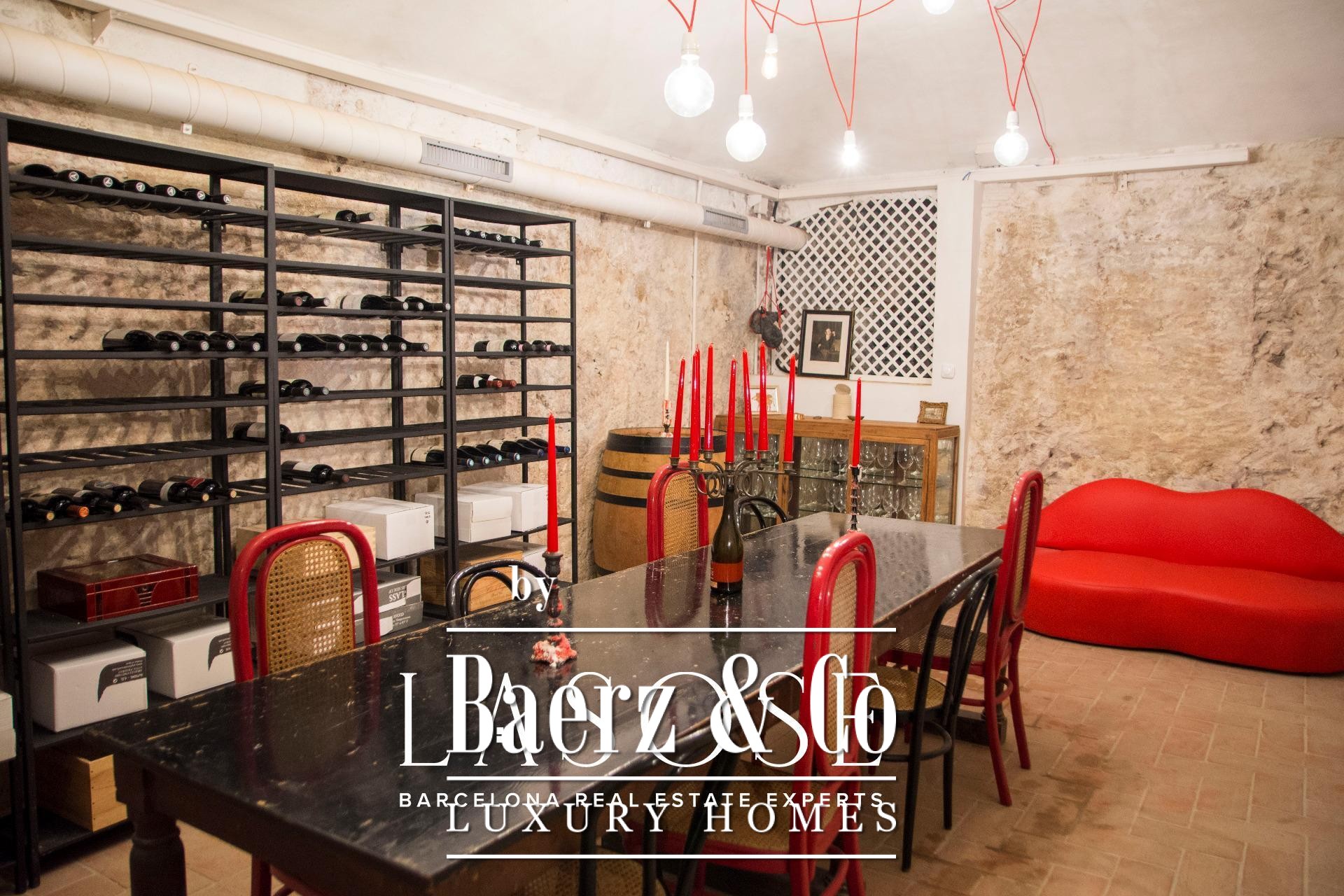 The living and dining areas are ideal for gatherings, enhanced by a Hi-Fi surround sound system and a projector screen for immersive evenings. The kitchen is fully equipped and uniquely features a center view of Roman ruins, linking daily life to the enduring spirit of Barcelona. An underground wine cellar provides a private retreat below.