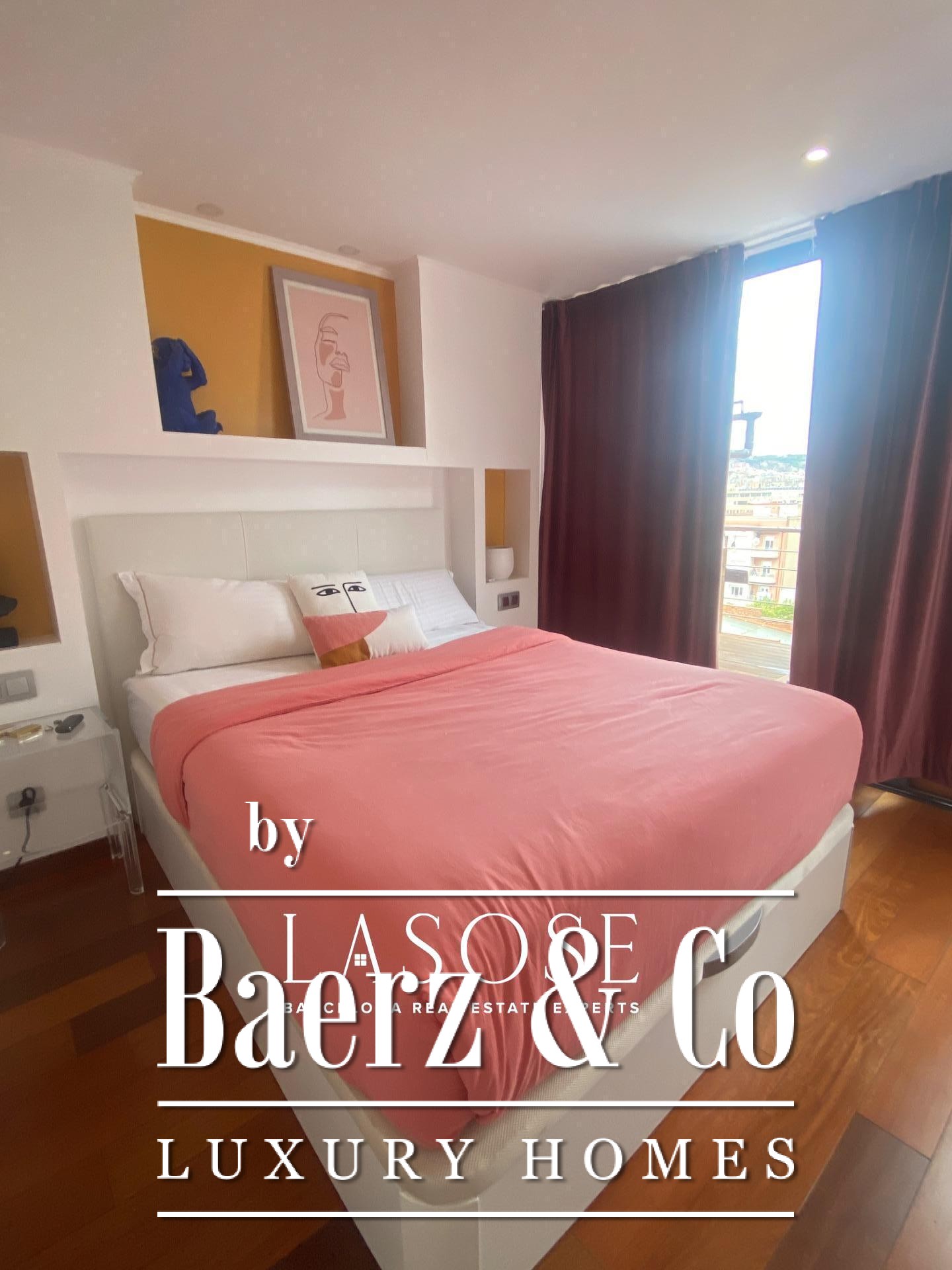 Above, the private rooftop terrace serves as an exclusive urban vantage, featuring a heated, glass-enclosed swimming pool for year-round enjoyment and a dedicated bathroom. 360º city views create a constant dialogue with Barcelona beyond.