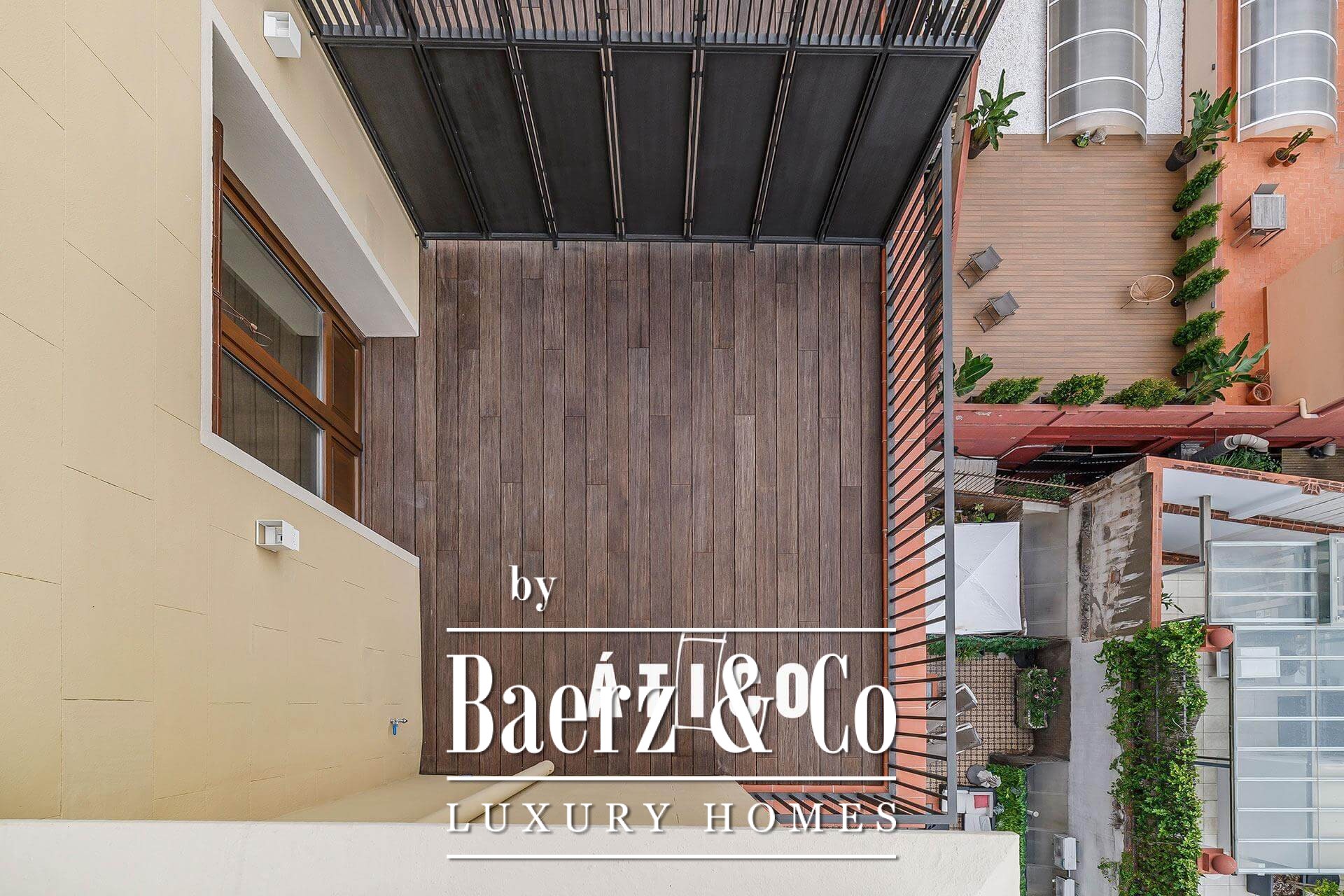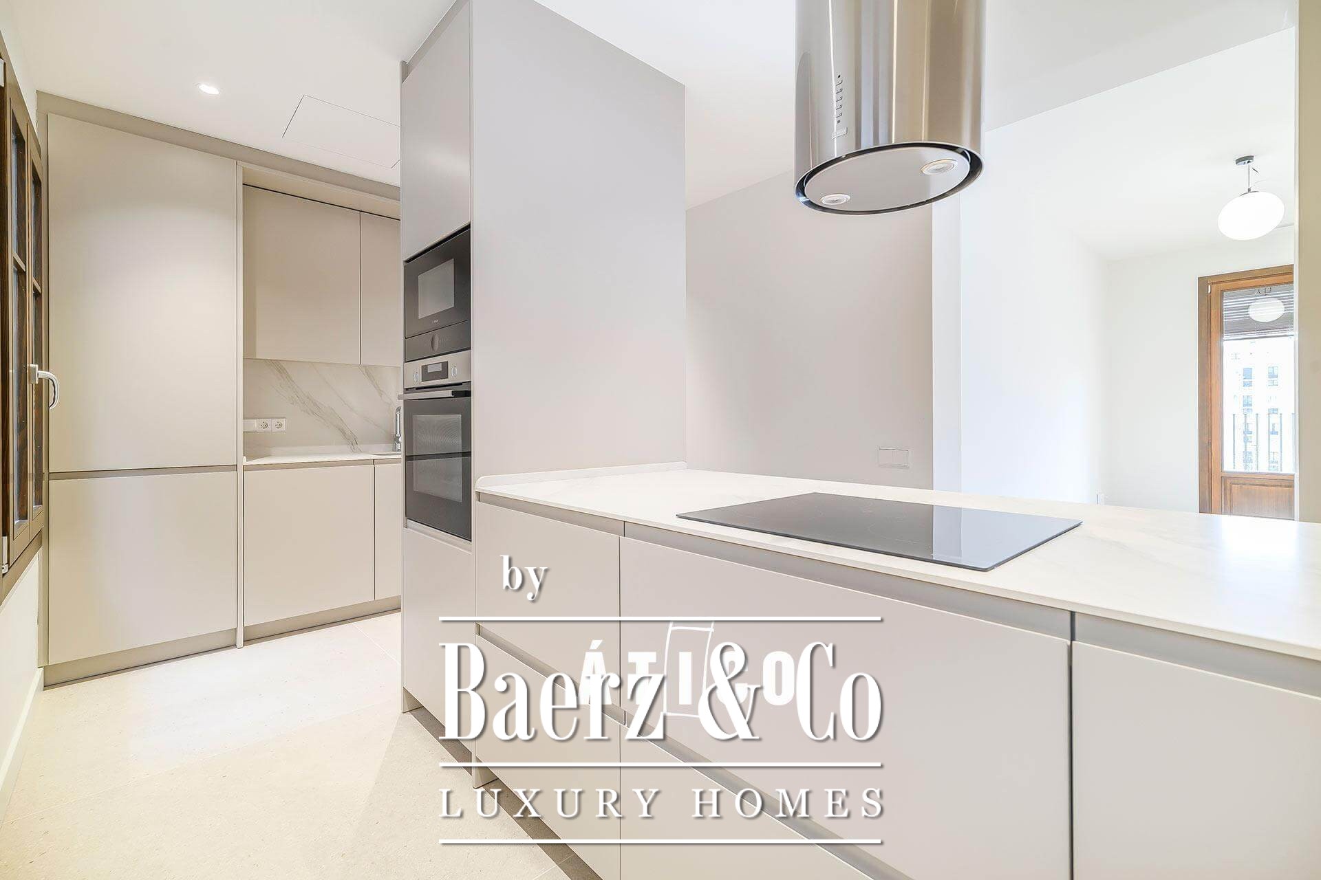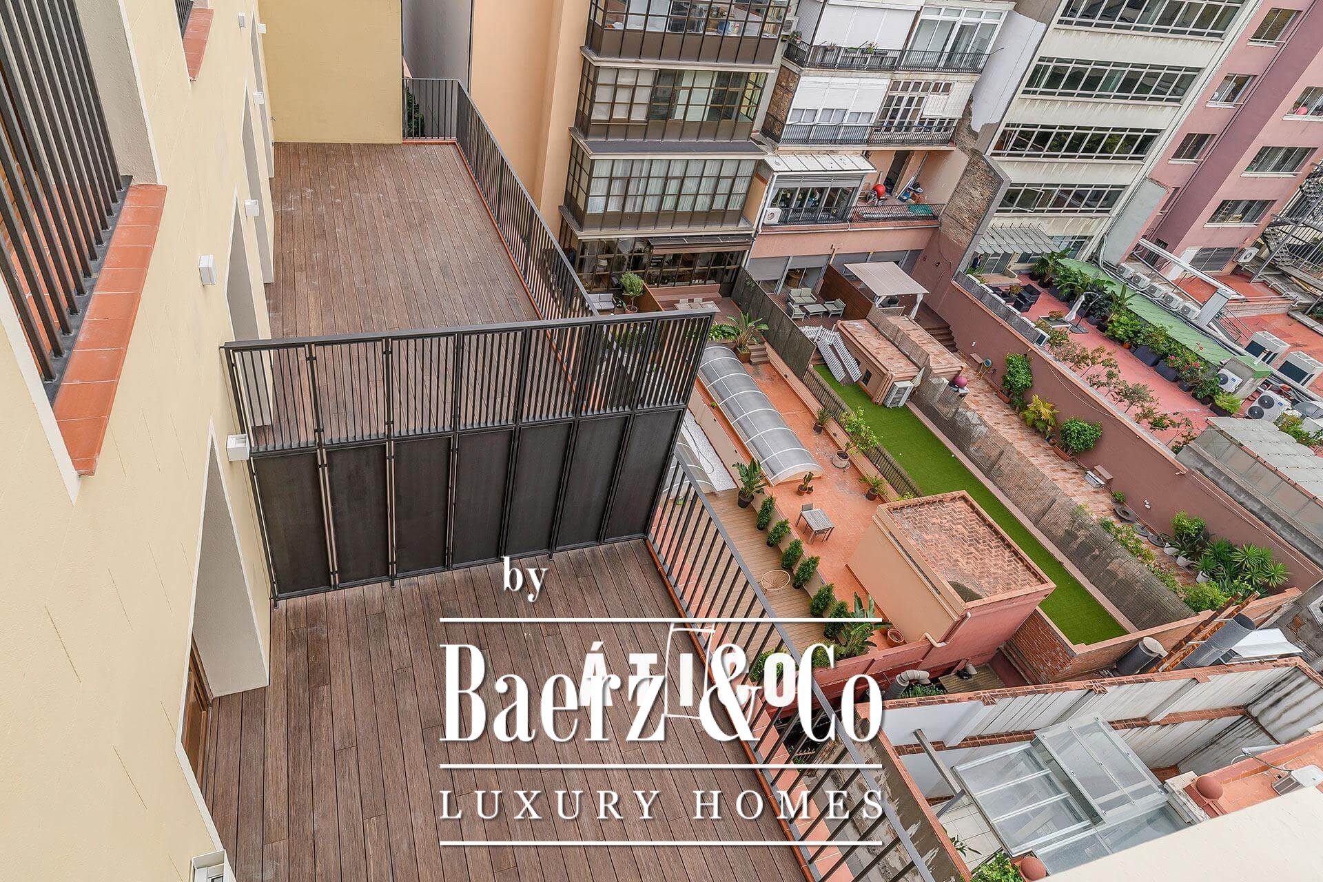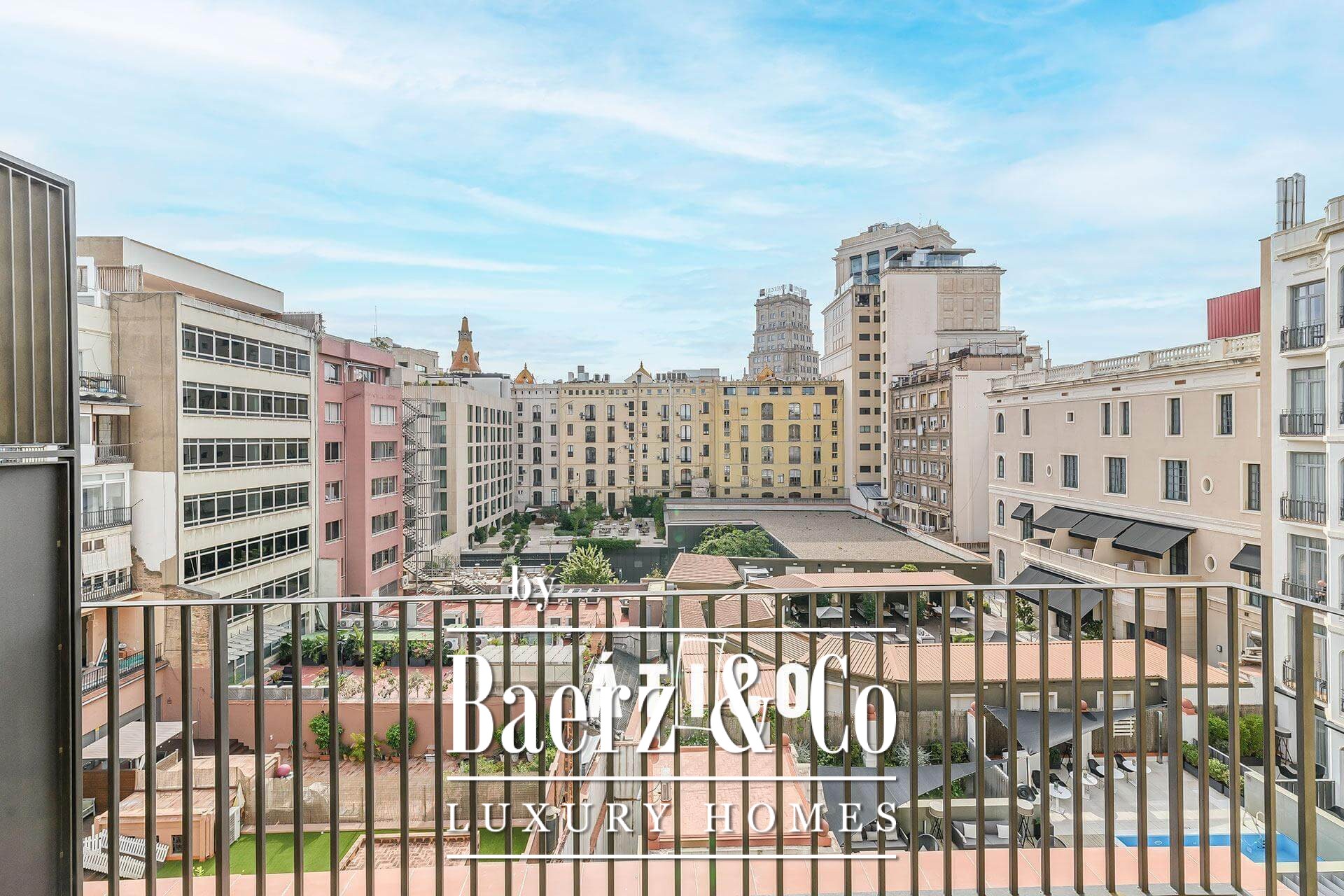 Penthouse Barcelona in the Golden Square sets the standard for refined urban living. This newly renovated residence spans 103.70 m², arranged with balance and a sense of space that welcomes immediate calm upon entering. The penthouse offers two bedrooms and two thoughtfully designed bathrooms, each space echoing an attention to detail that extends from the choice of flooring to the custom woodwork. A modern kitchen blends practicality and aesthetic intent, providing generous storage while maintaining clean architectural lines.