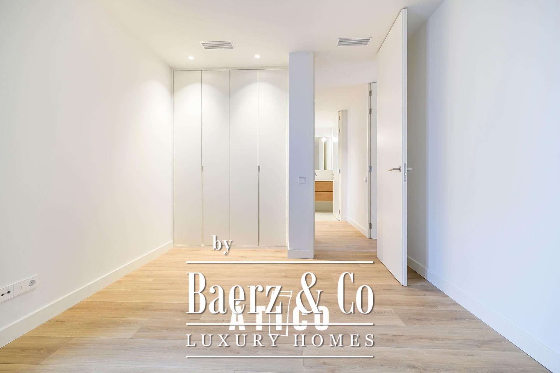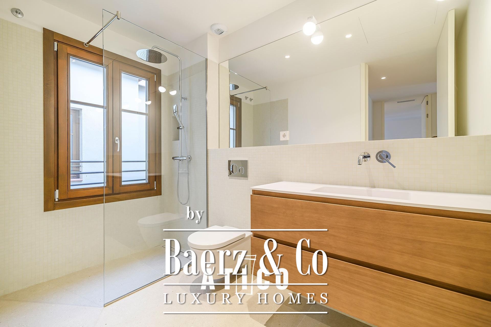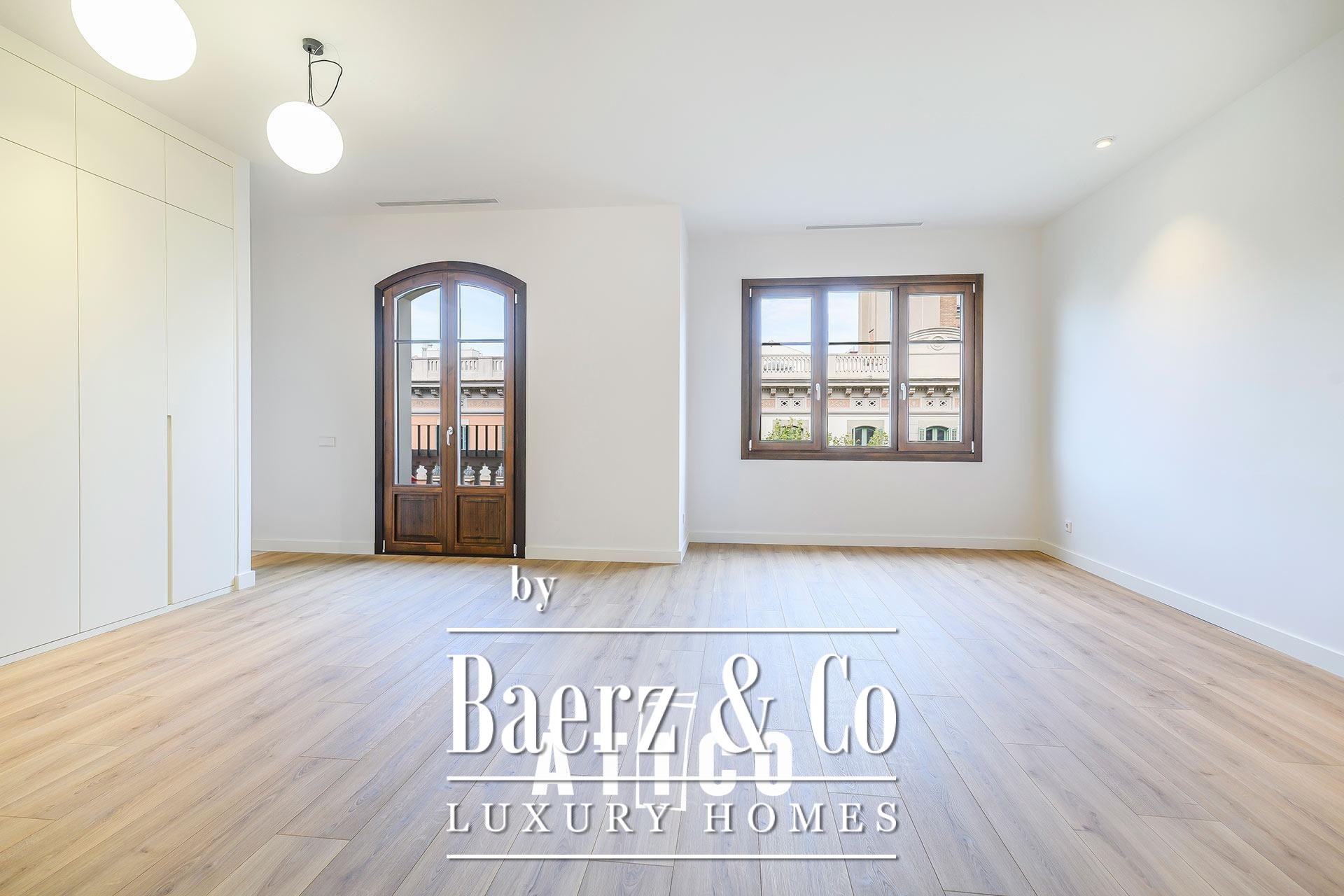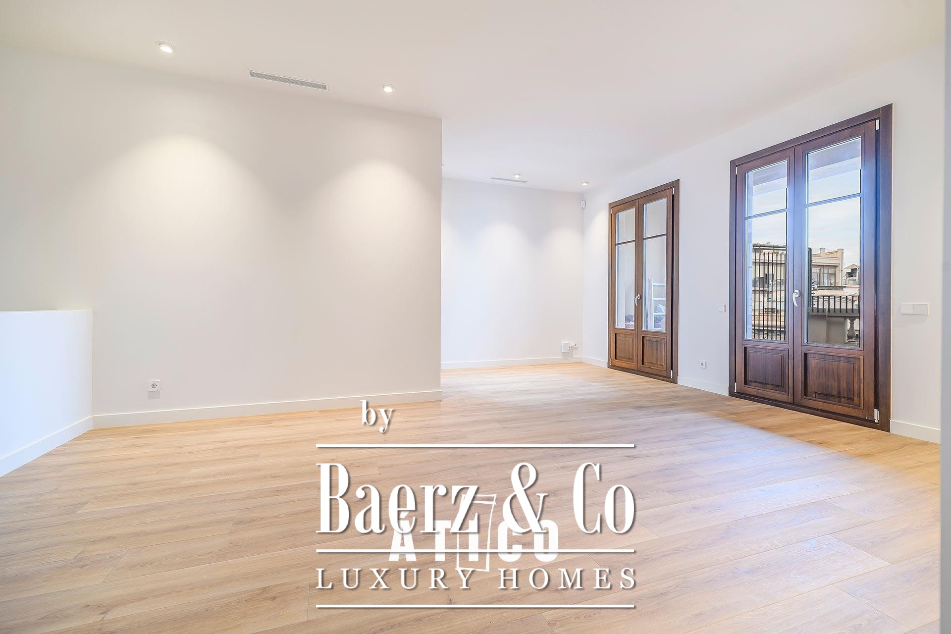 This duplex apartment Barcelona stands as a testament to refined urban living, offering 212.51 m² of newly renovated space across two distinct floors. Designed with flexibility in mind, its independent entrances provide options for privacy, work, or hospitality, allowing seamless transitions between day and night zones or dual-purpose living. Upon entry, a modern staircase defines the interior, lending the home a confident architectural rhythm and connecting both levels.