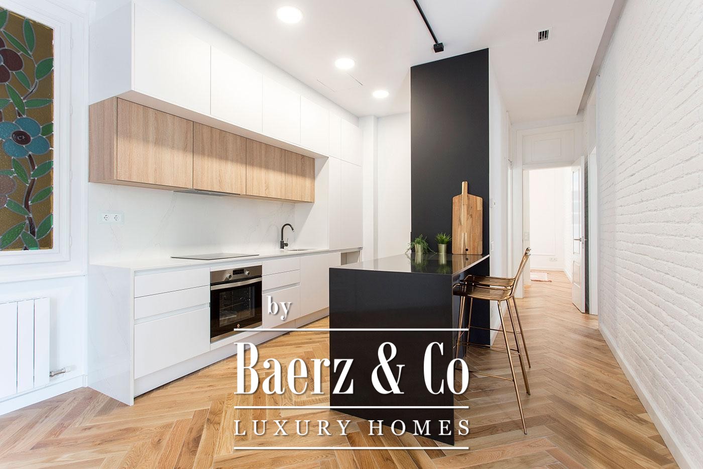 Apartment Barcelona stands at the heart of Eixample, offering a setting where every detail supports refined urban living. This high-end renovated apartment occupies the real fifth floor of a distinguished building with lift access, moments from Plaça Catalunya and Passeig de Gràcia. Natural light permeates its approximate 121 m² interior, highlighting an open-plan living area that connects the lounge, dining space and a fully equipped kitchen. Balconies provide open city views, while the property’s orientation and multiple exterior openings deepen the connection to Barcelona’s distinct rhythm.