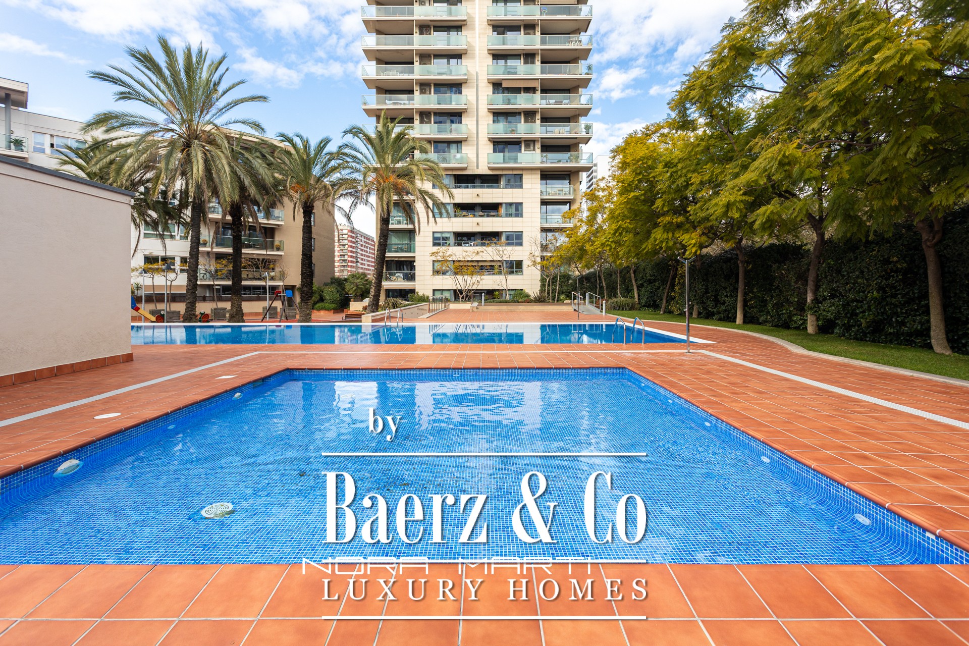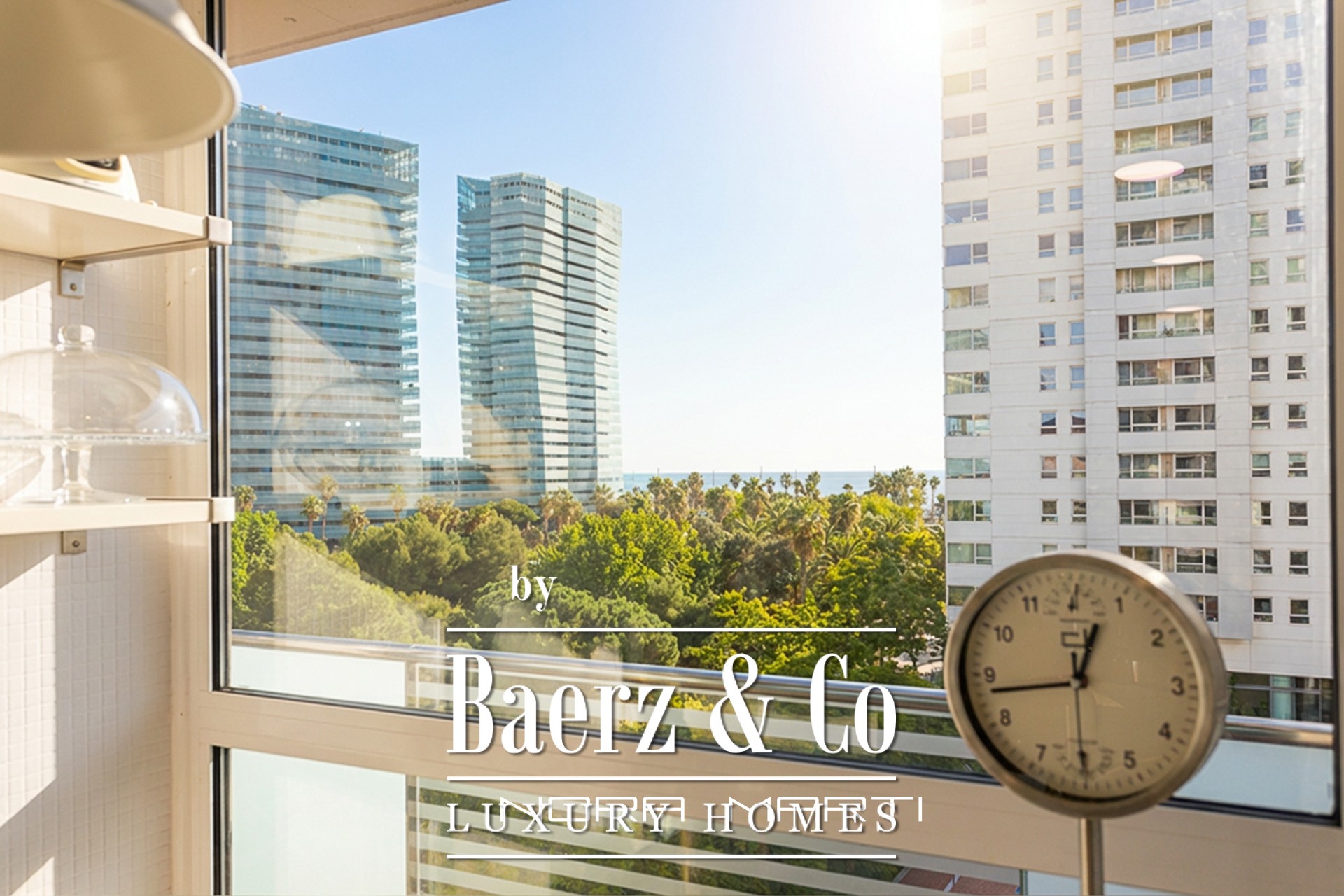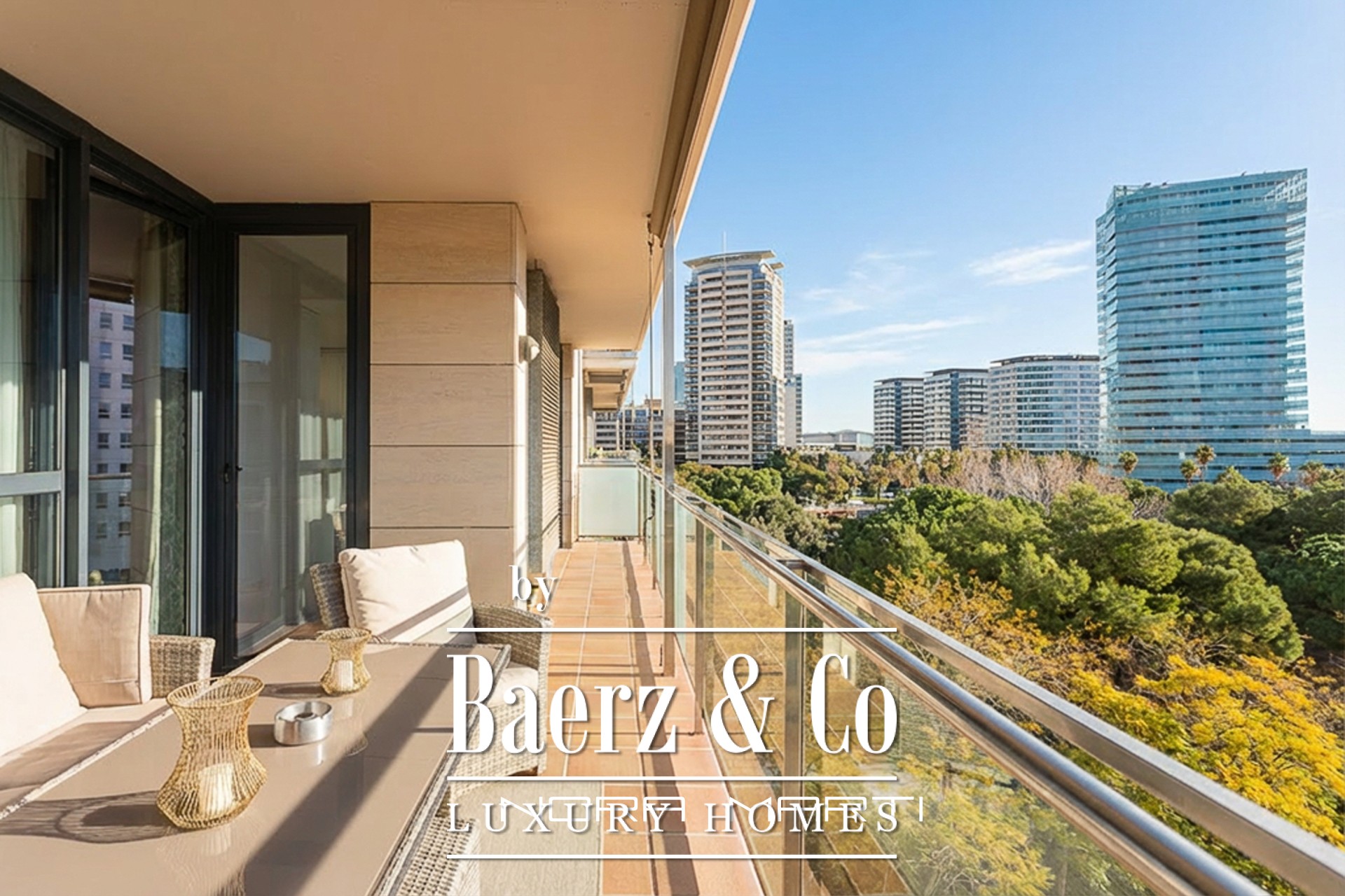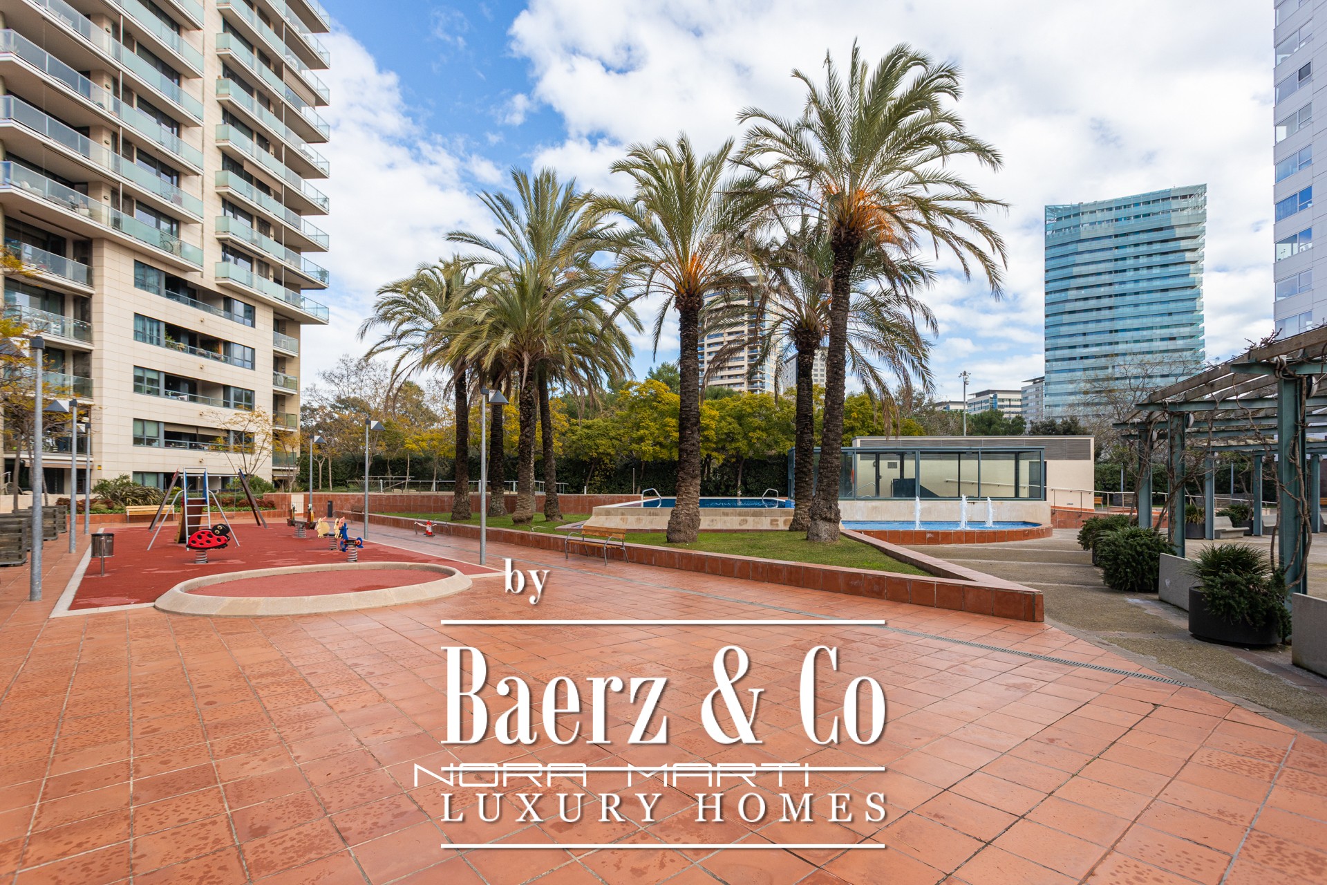 Apartment Diagonal Mar Barcelona offers a rare sense of light and serenity mere moments from the Mediterranean, situated just 500 meters from the sea and directly across from a tranquil green expanse. Rising within a semi-new high-end building, this wholly exterior residence encompasses 152 m², defined by abundant natural light and a spacious terrace facing both the sea and the manicured communal gardens.