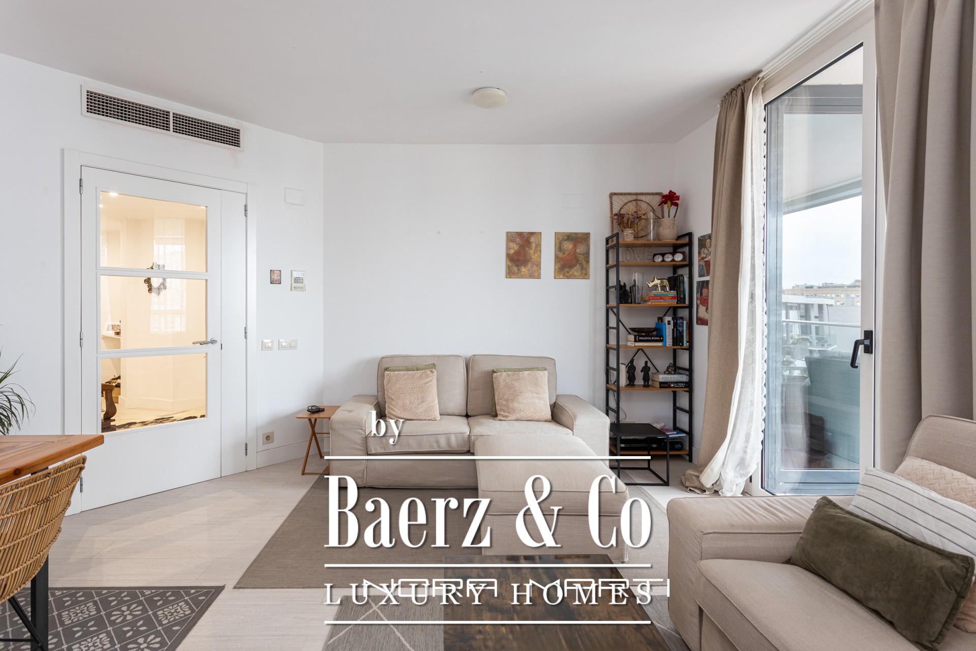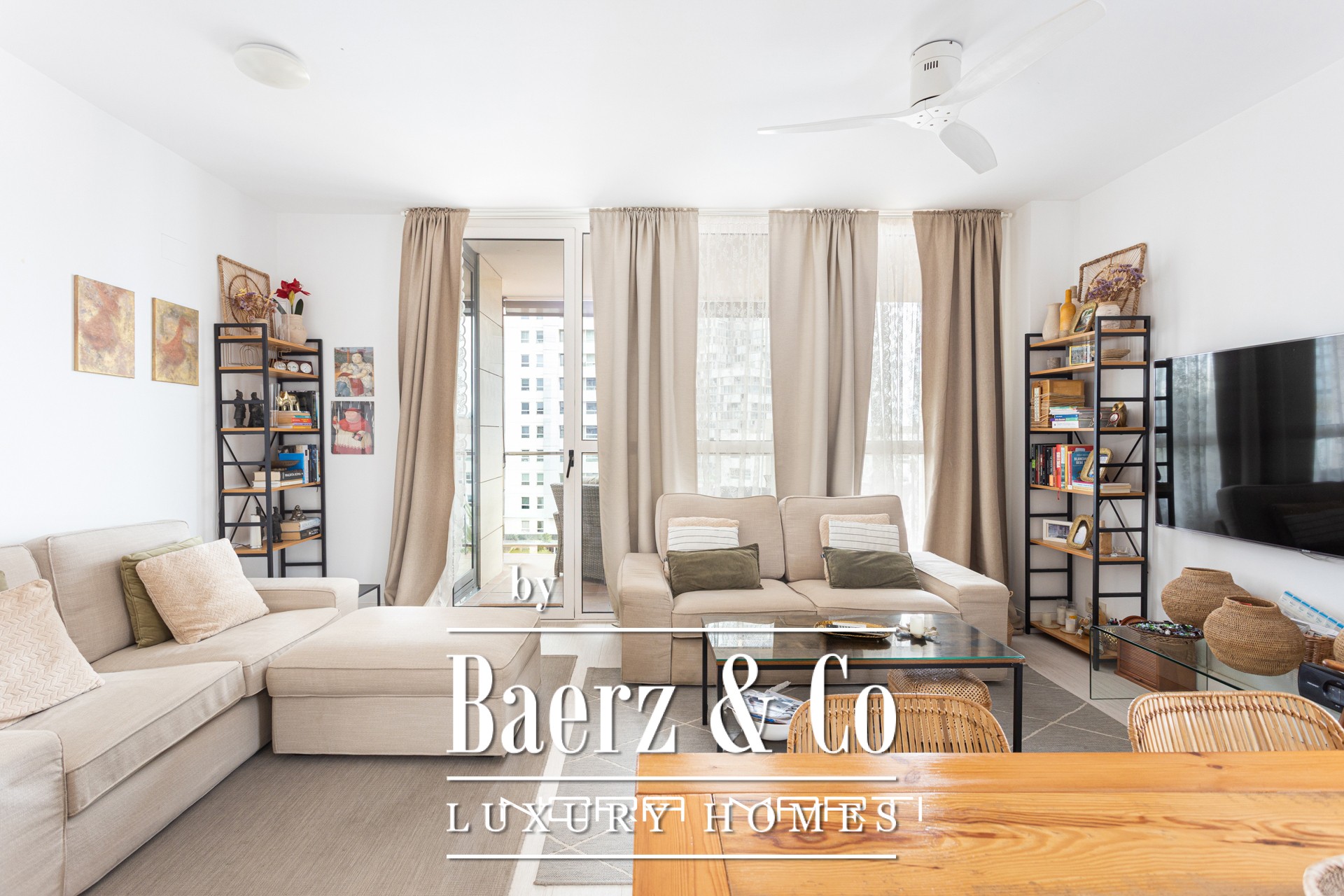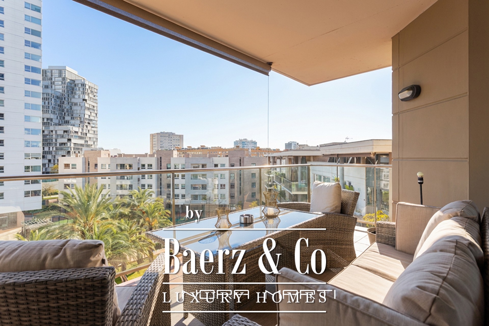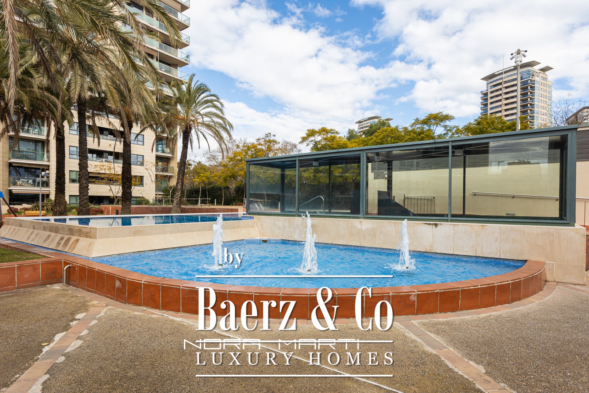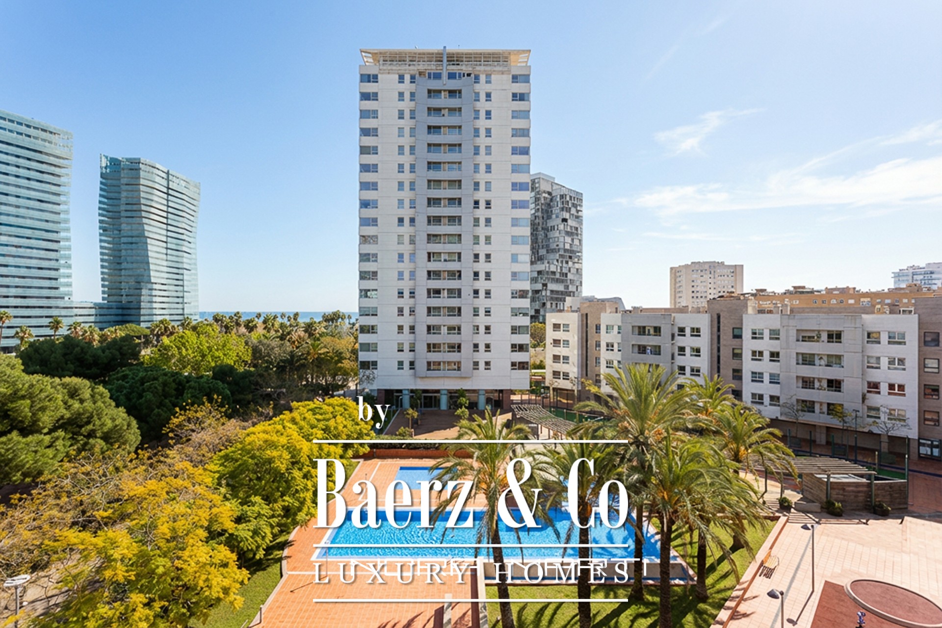 Apartment Diagonal Mar Barcelona offers a rare sense of light and serenity mere moments from the Mediterranean, situated just 500 meters from the sea and directly across from a tranquil green expanse. Rising within a semi-new high-end building, this wholly exterior residence encompasses 152 m², defined by abundant natural light and a spacious terrace facing both the sea and the manicured communal gardens.