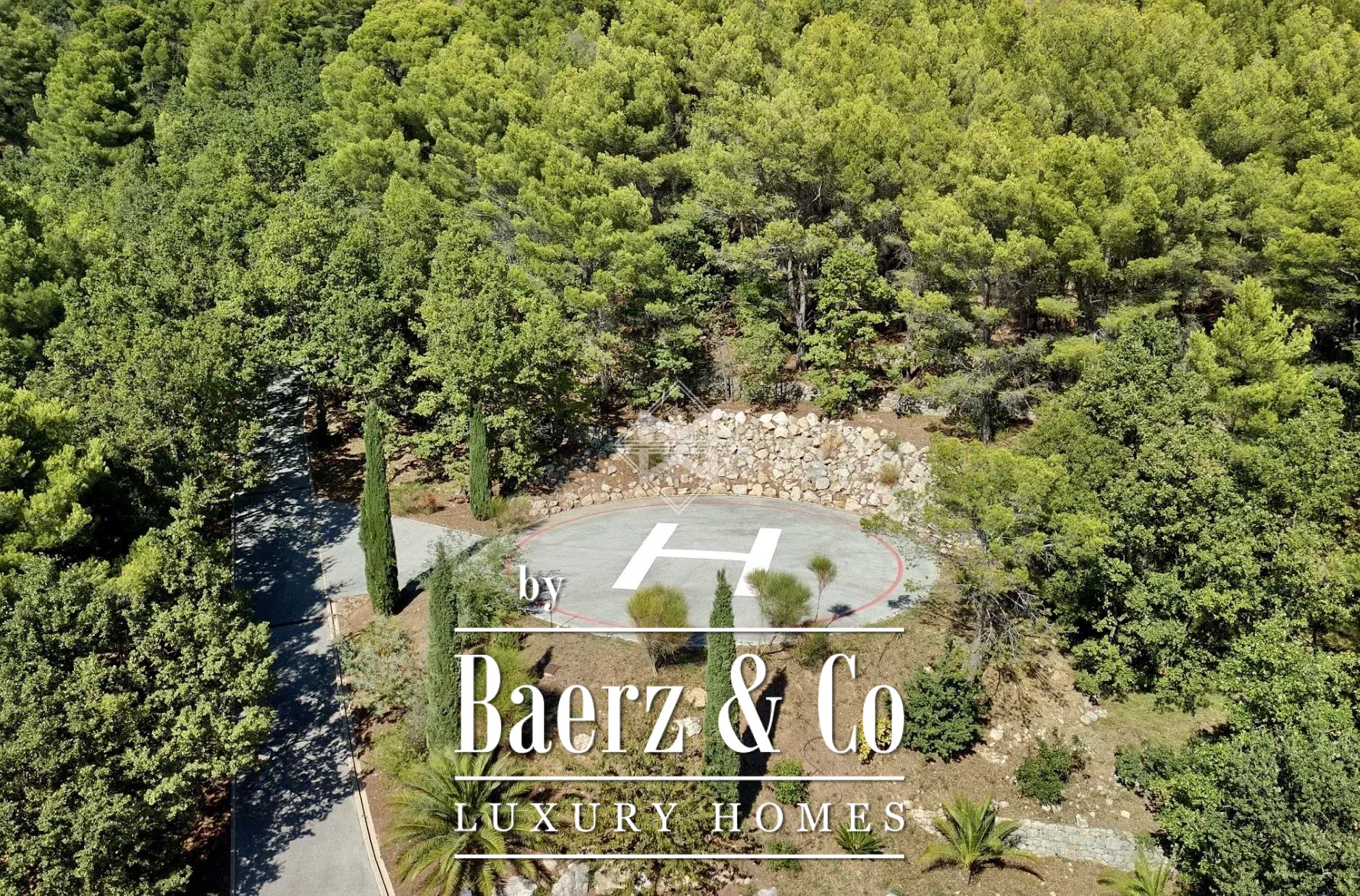 Featuring a helipad, this estate spans over 5.2 hectares, offering a peaceful and lush environment. It is just 1 hour from the coastline, 1h15 from Nice Airport, and 1h45 from Monaco.