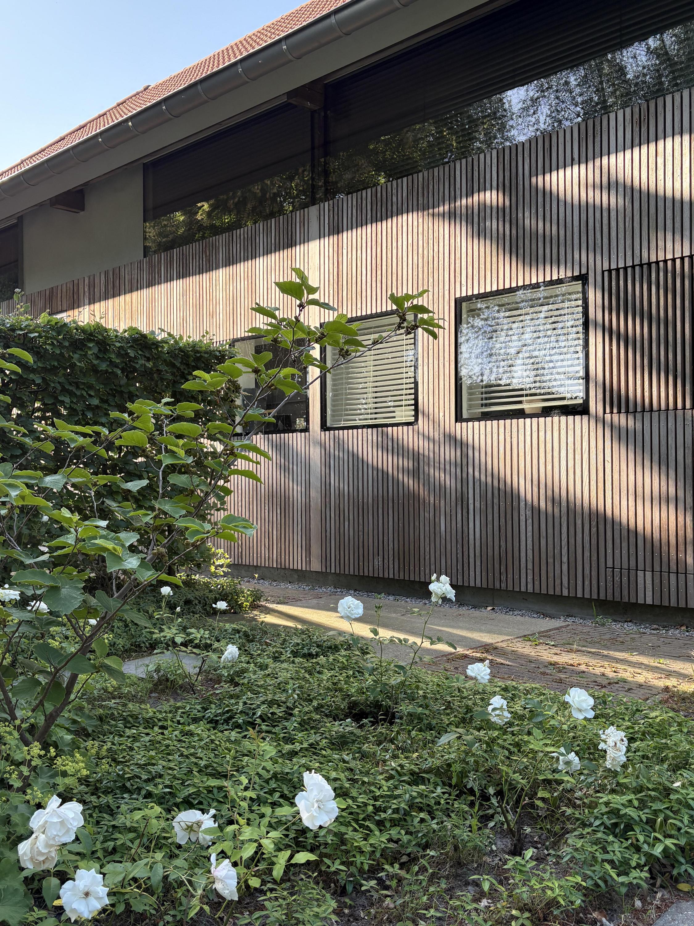 In 2025, a high-quality covered terrace was added to this outbuilding — a wonderful extension of the garden living space. The roof has an adjustable louver system that can be opened and closed for both sunlight and rain protection. It also includes retractable wind screens.