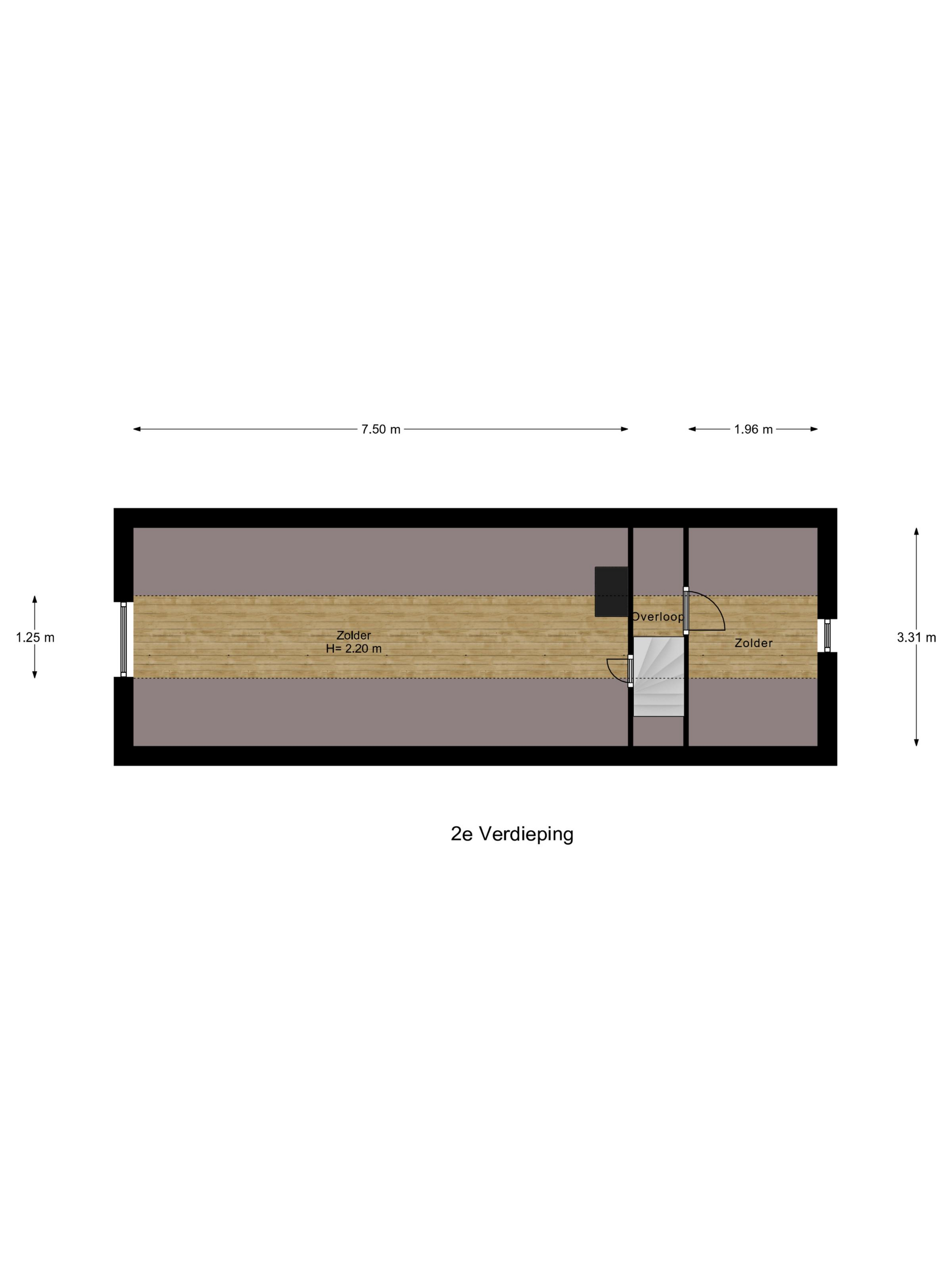 The attic, accessible via a fixed staircase, offers plenty of storage space.