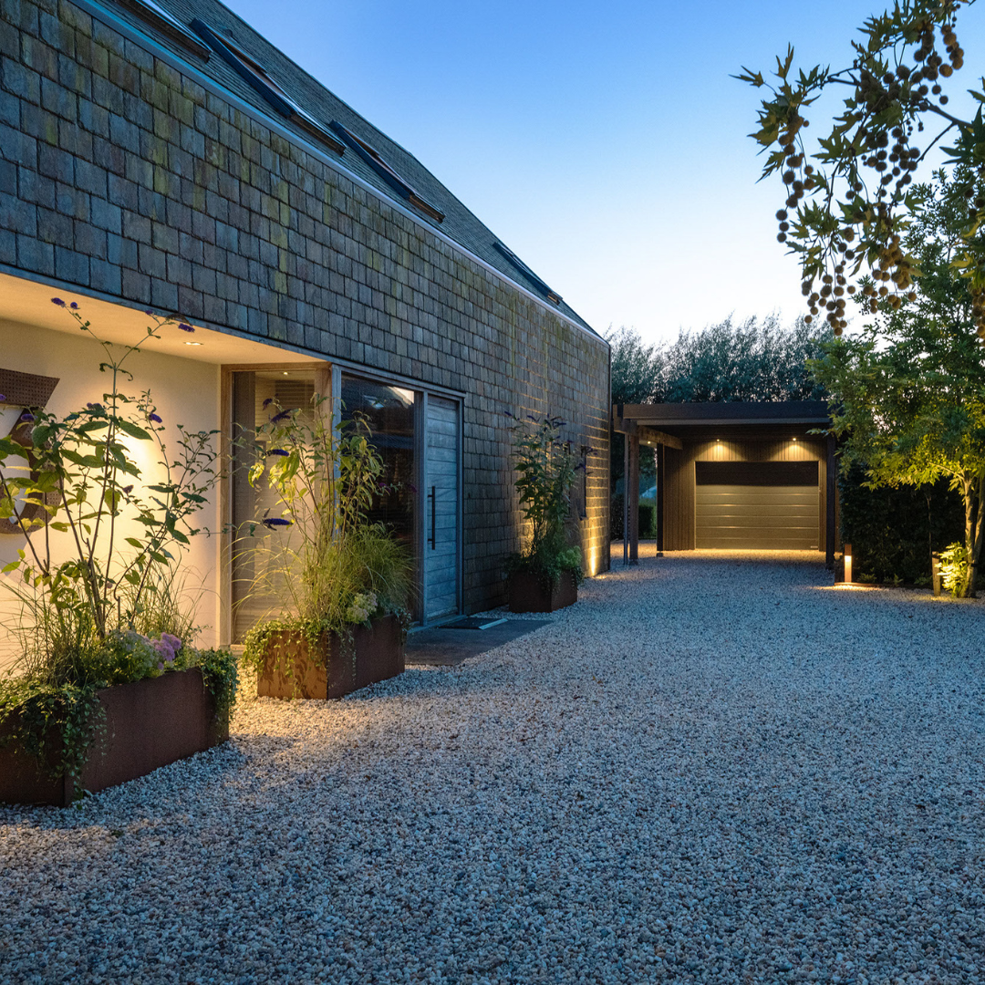 The garden is an oasis of peace and inspiration, with more than beautiful planting, several seating areas, a fantastic greenhouse, chickens, sunny and shady spots and stunning views. A greenhouse is directly linked to the beautifully landscaped kitchen garden. Chickens and a fruit garden complete the picture.