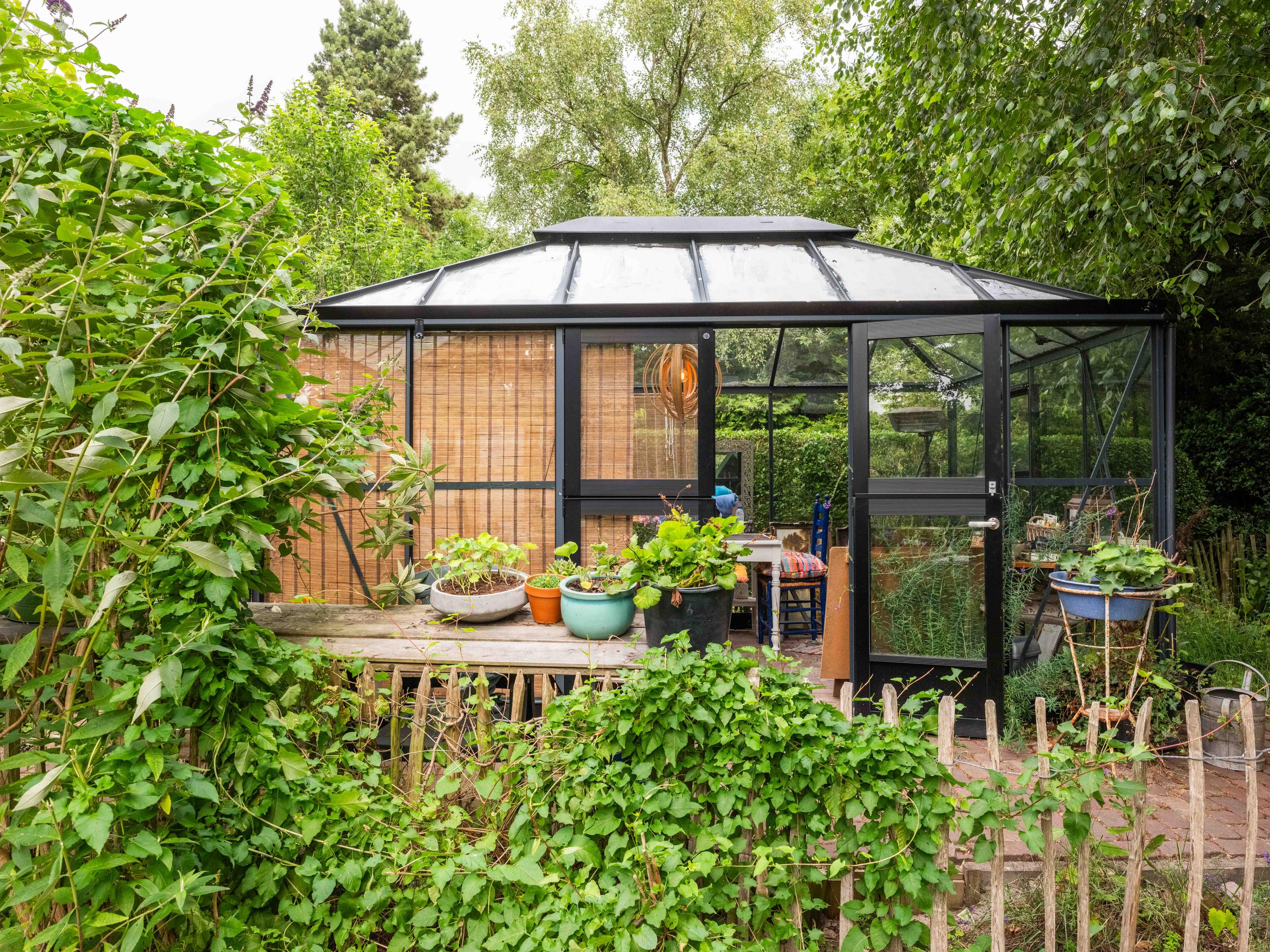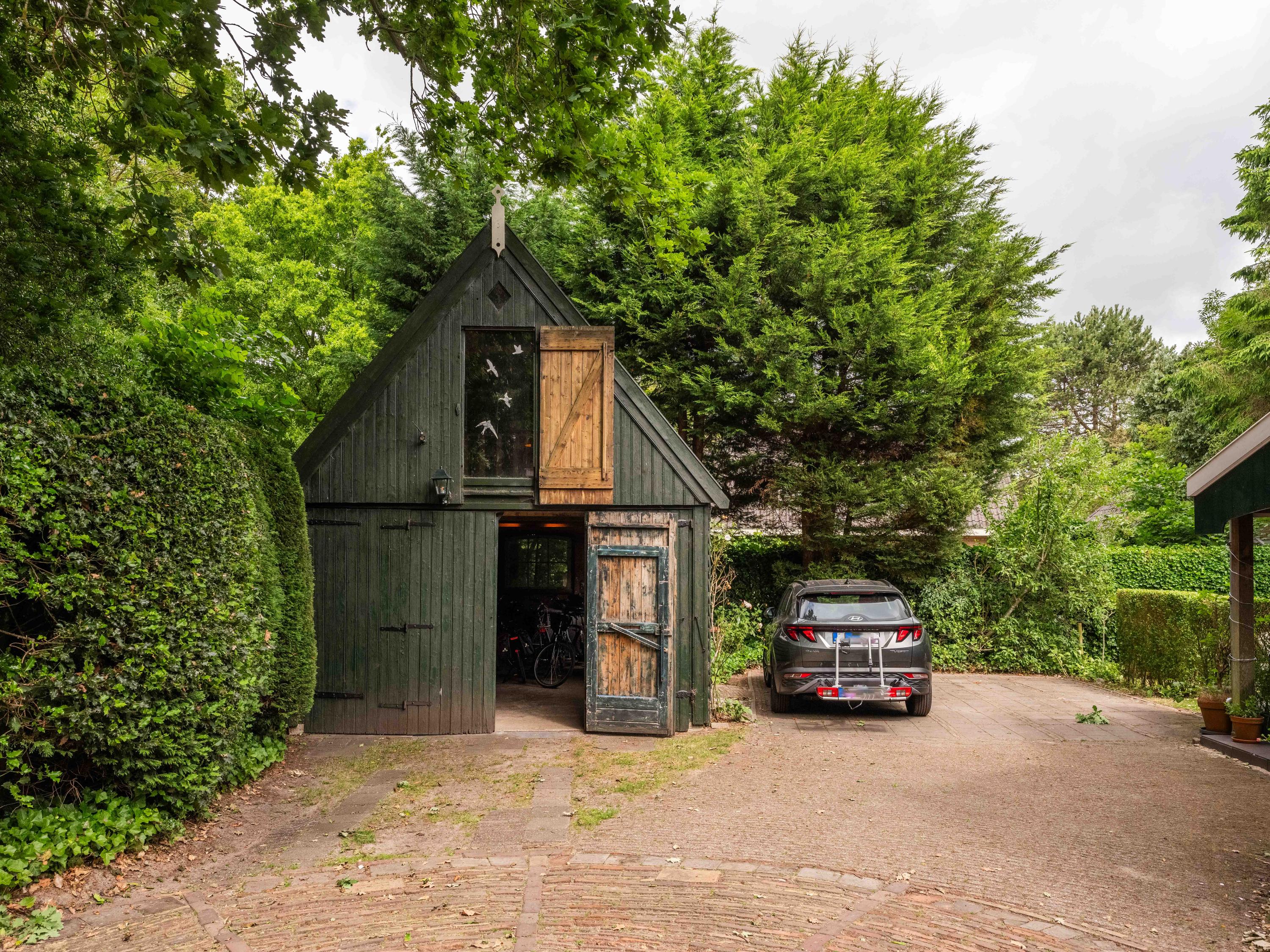 The garden: A lot of peace and privacy can be found in the mature garden surrounding the house and it feels luxurious walking through it. There are several terraces, a charming greenhouse / conservatory, a chicken coop, a spacious wooden garage (for several cars) with loft and also ample parking space for 2 cars next to the garage.