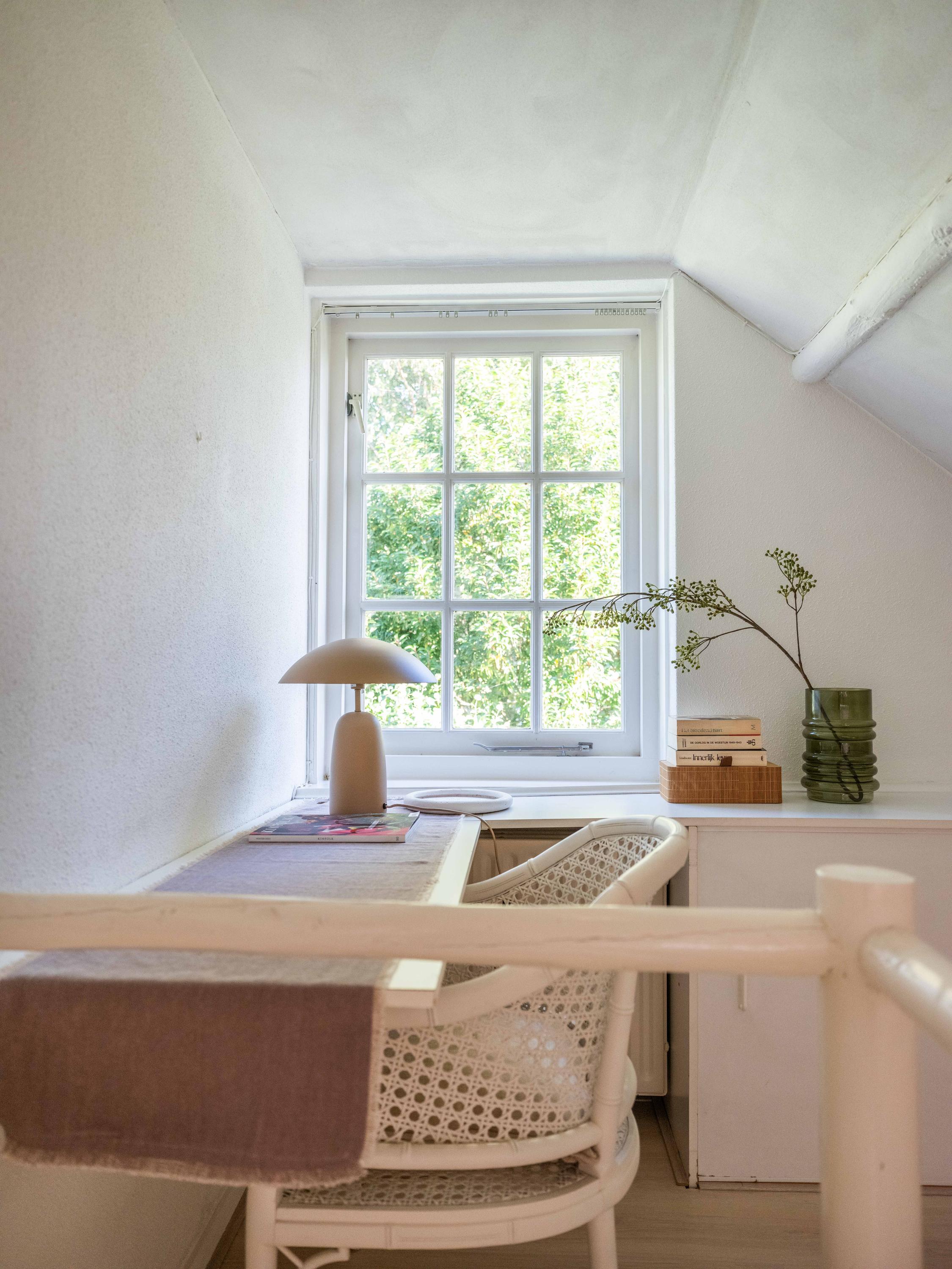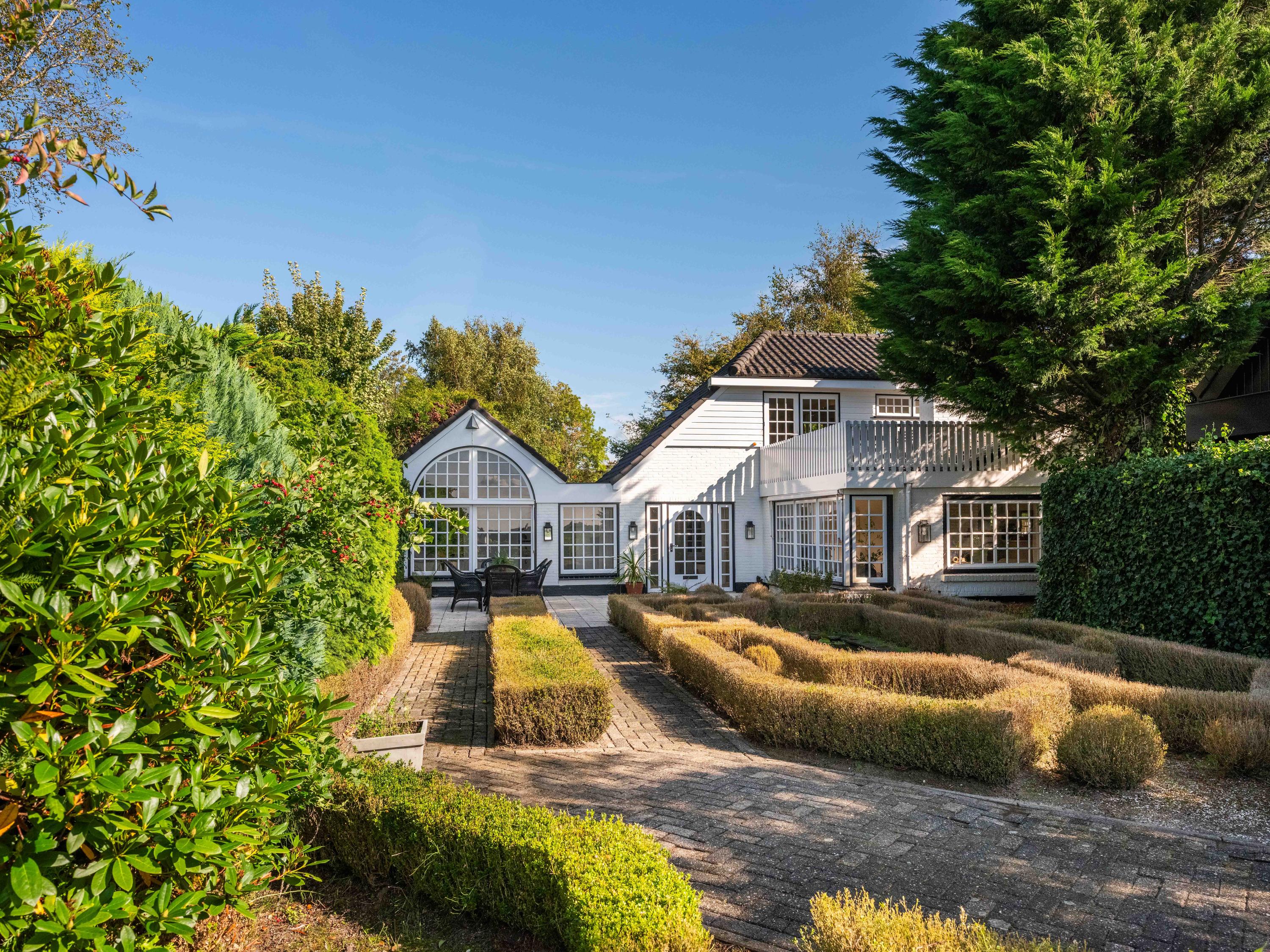 Because the house is at the very back of the plot, the front garden is very generous and offers a surprising amount of privacy. We find a lovely terrace facing south / west, so in the summer months until late in the sun and the sunset can be enjoyed. In front of the plot is parking for several cars and the whole is closed with a gate.