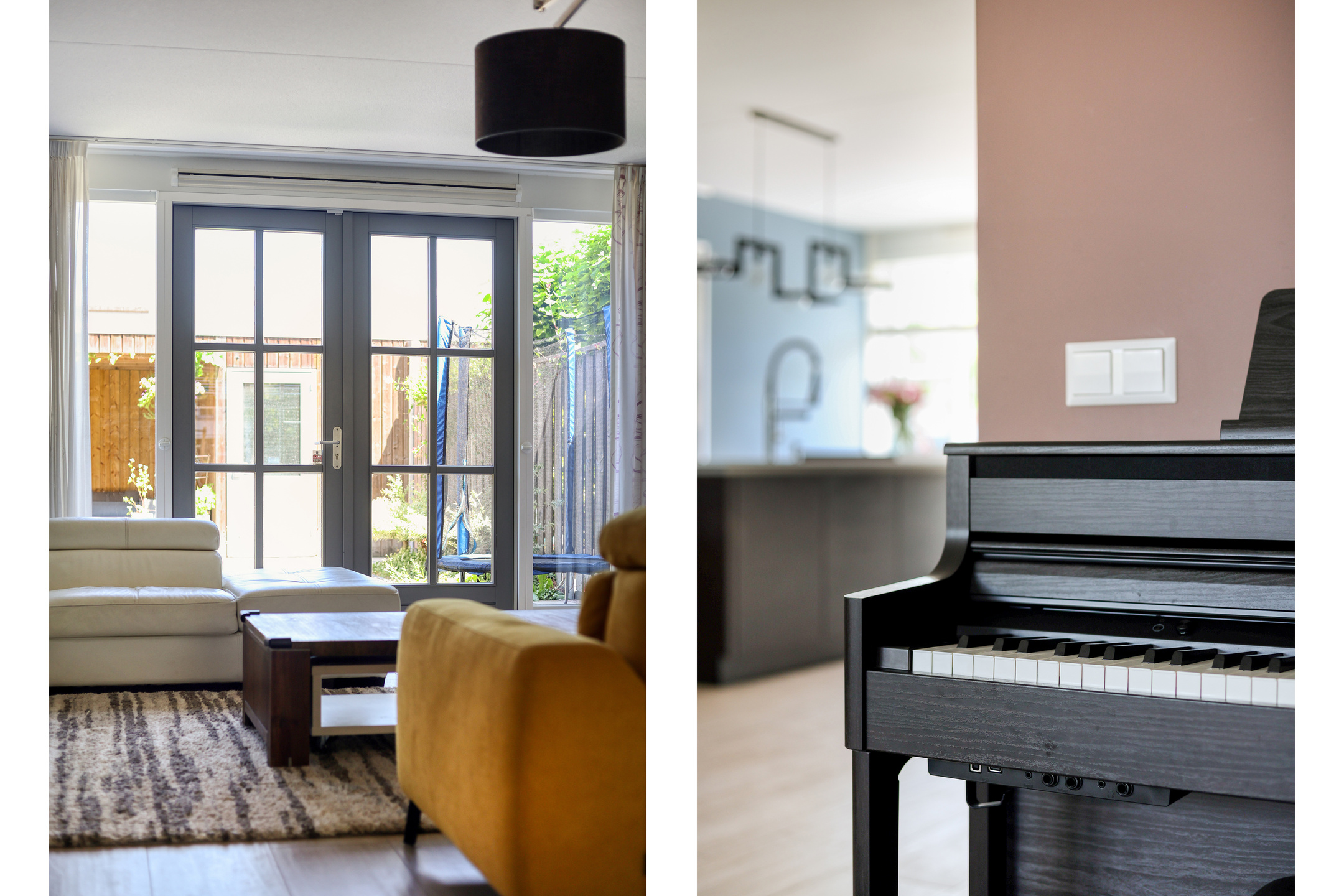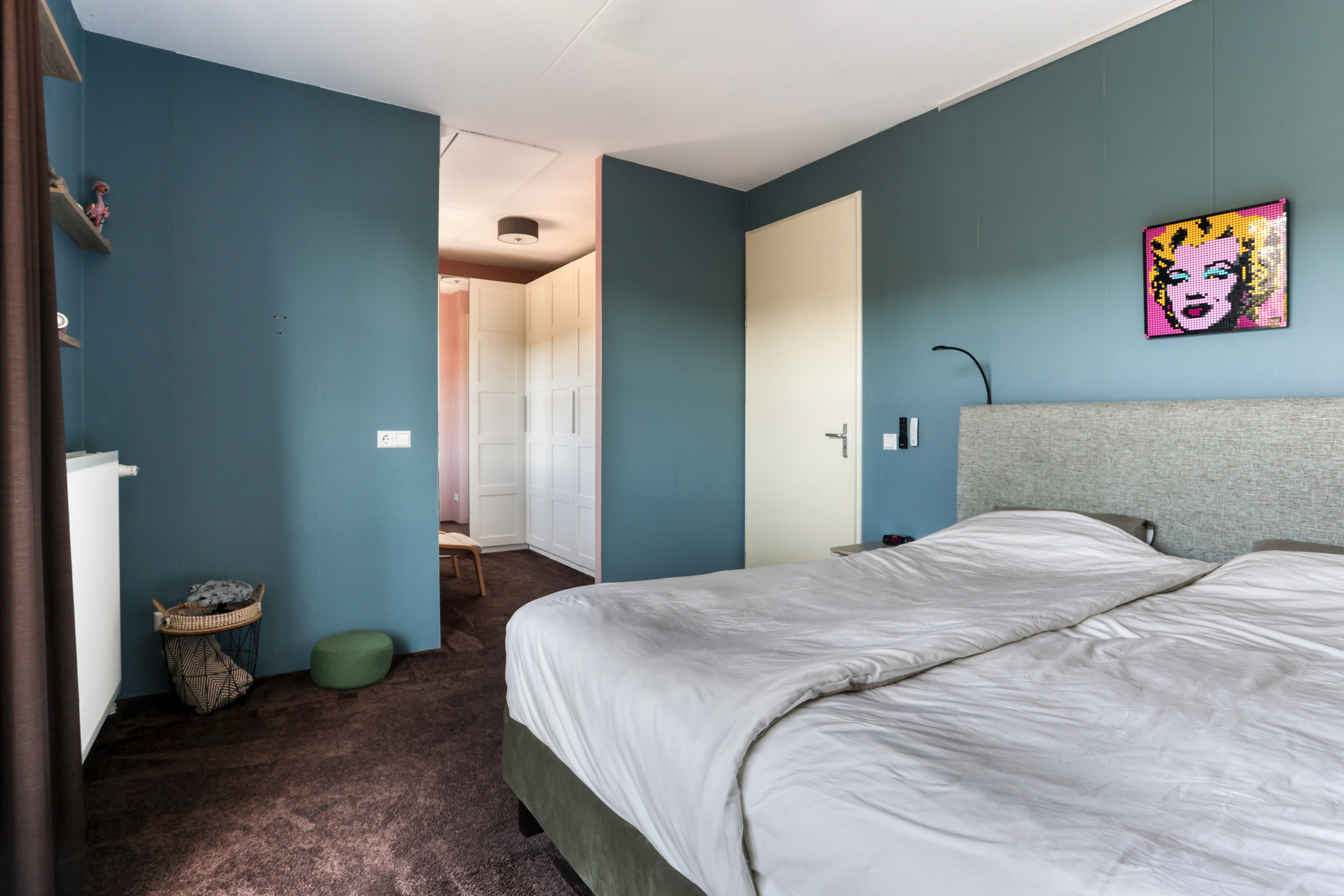 The property features a modern open kitchen and bathroom, five spacious bedrooms, and a private driveway with space for two cars. From the kitchen window, you have a direct view of the large playground in front of the house—ideal for families with young children. The street itself is car-free, contributing to a safe and peaceful living environment.